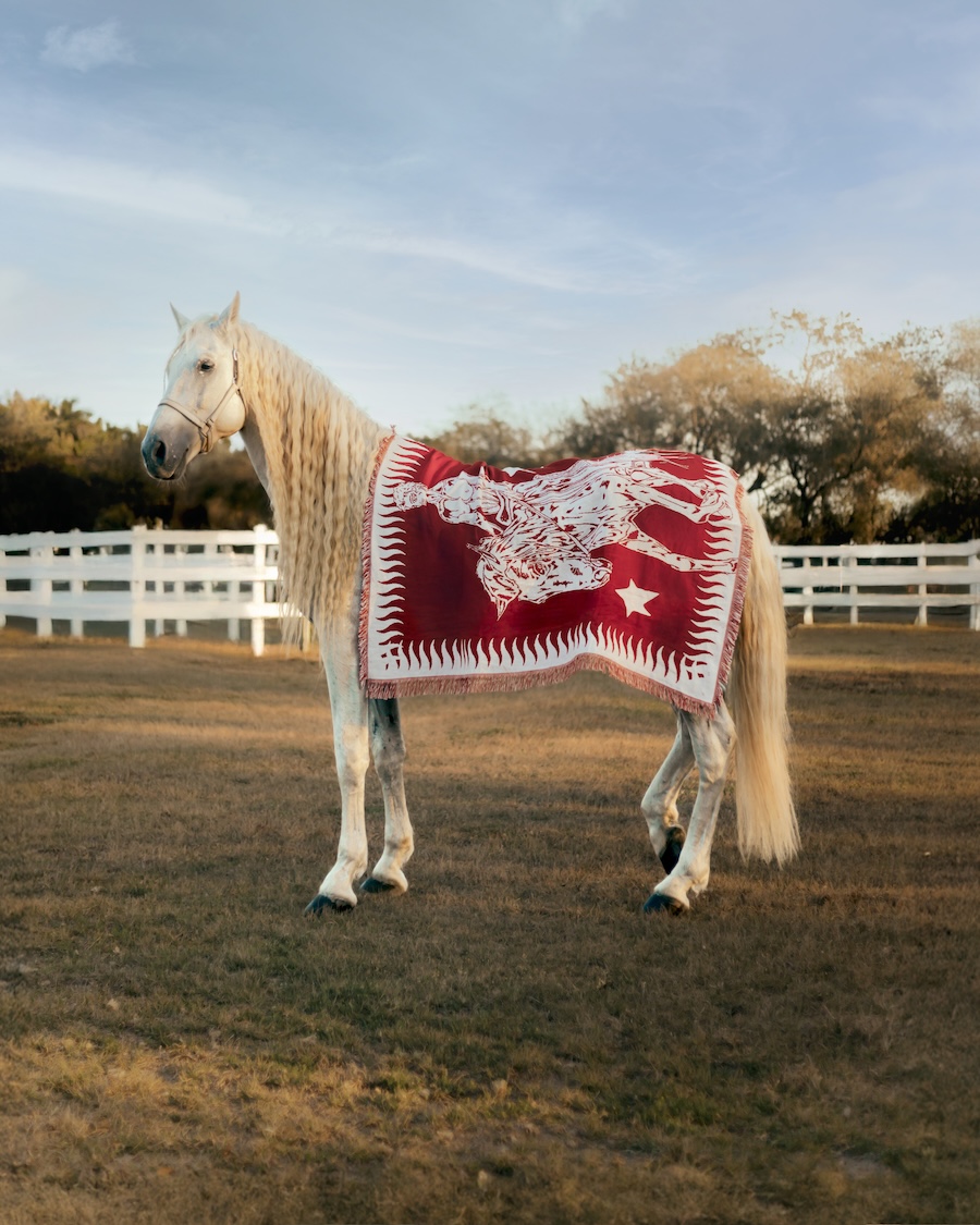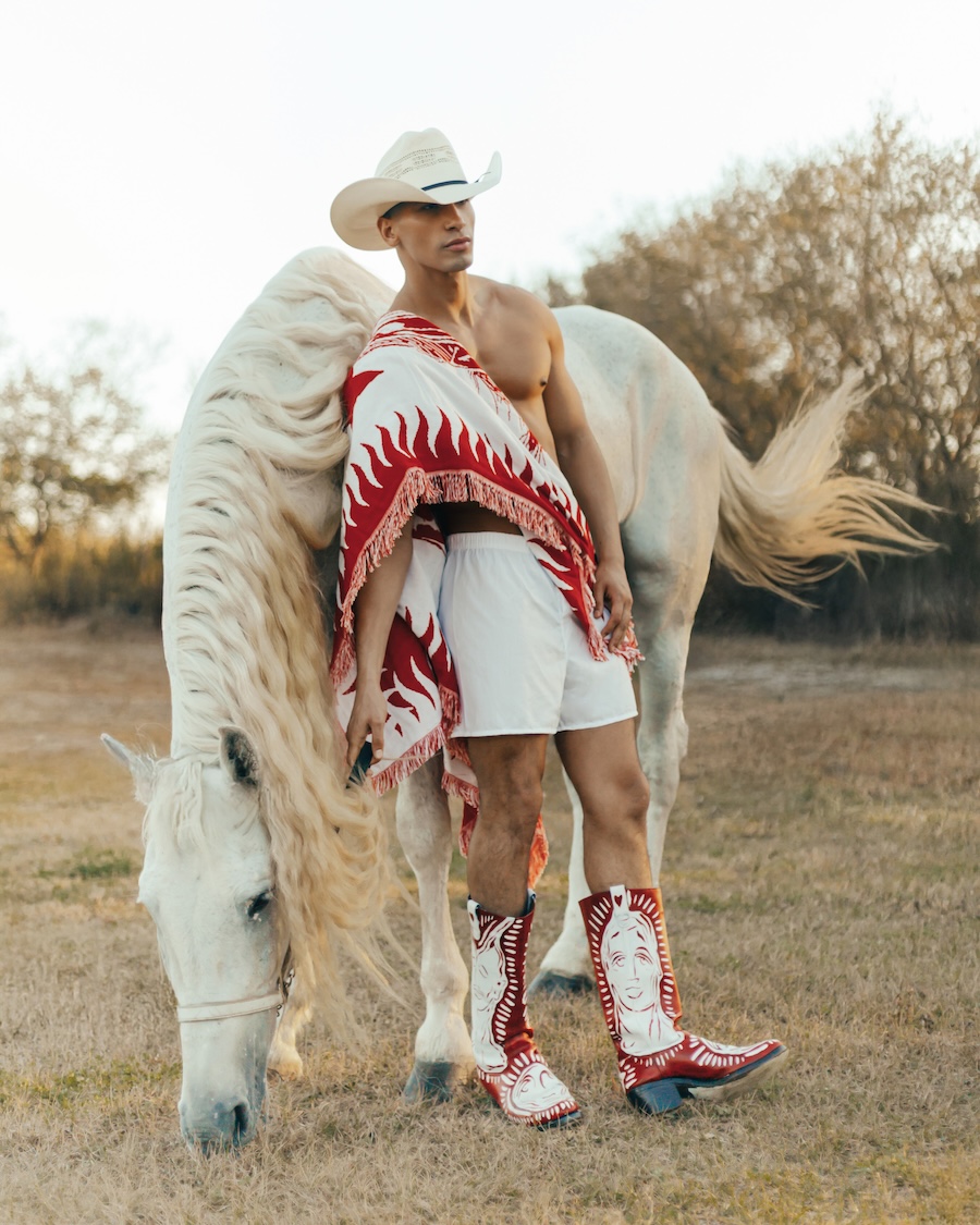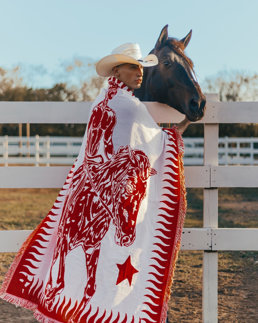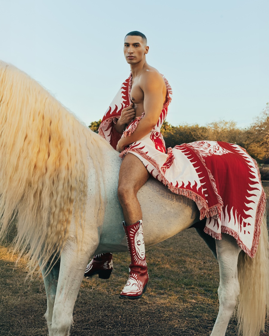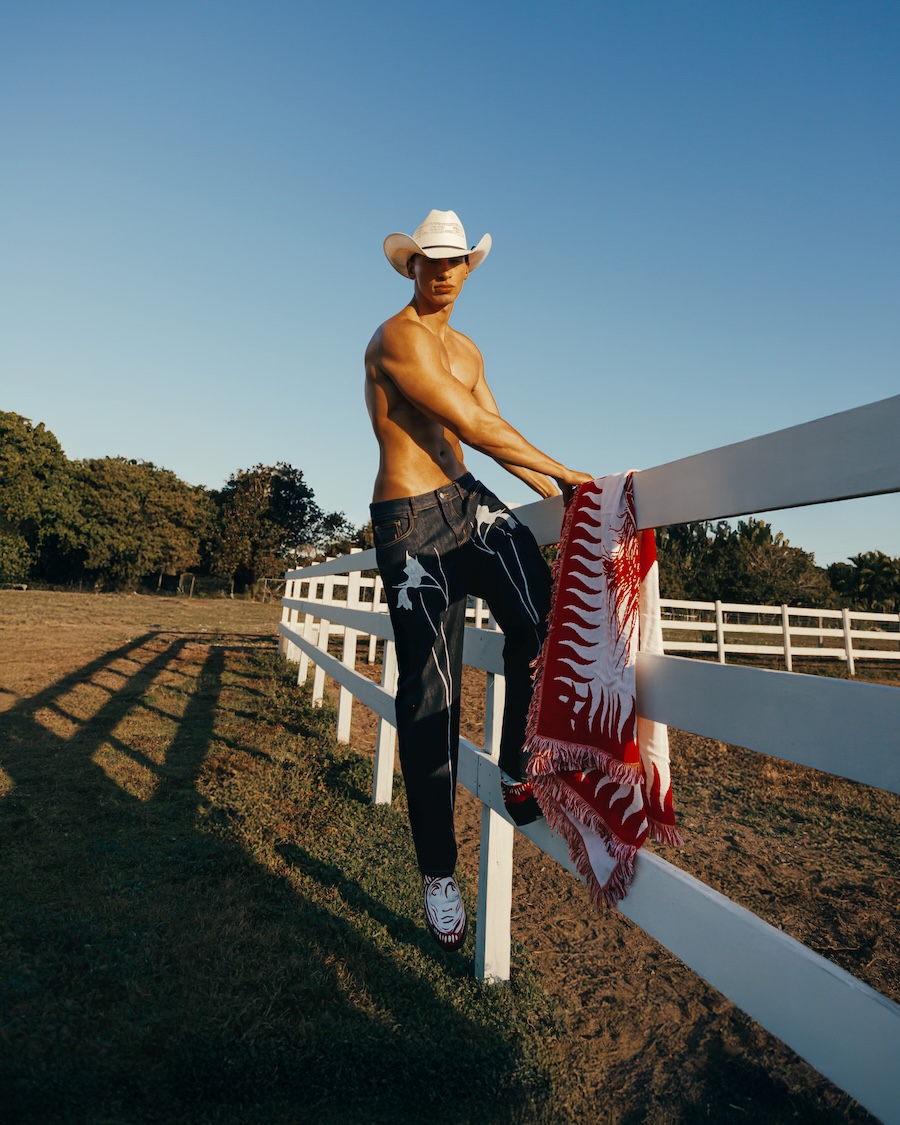 Infused with the spirit of Western mythology and rich cowboy iconography, ‘Born To Ride’ radiates raw sensuality and romance through the unmistakable lens of the Patrick Church aesthetic. The curated selection features elevated denim, cosy woven blankets, and striking fringe jumpsuits. Each piece showcases Patrick’s unique artwork and meticulous hand-finished details, culminating in a collection that balances ruggedness with intimacy. This is Americana reimagined, layered with a subversive and romantic flair.