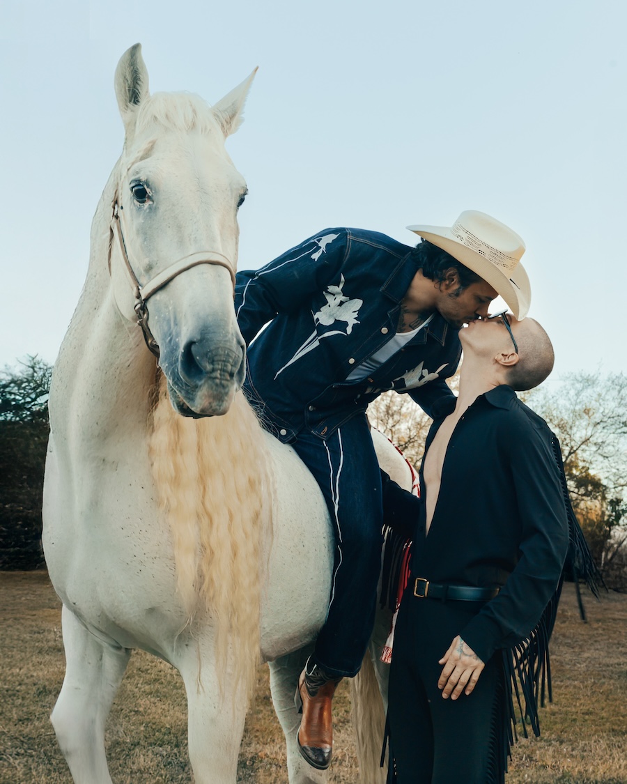 Adriel adds, “I always joke that it took a cowboy from Odessa, Texas, to tame a heart like Patrick’s, but I feel like I’m the one who dreamed him. He’s this impossible creature of feeling, art, and fire. Before him, I didn’t truly know love or joy, and now, getting to play muse is just another on a long list of reasons why.”