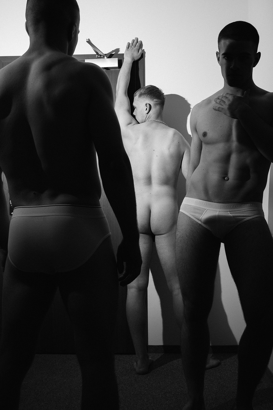 A KALTBLUT exclusive editorial and film. The photographers are Karolina Golis and Adam Siwek. Production by Wojciech Tubaja. The models are Szymon Przybylski, Michal Wojcik and Bartek Cybe, all from PINOKIO MODELS. Fashion by Diesel, Calvin Klein, Intimissimi.