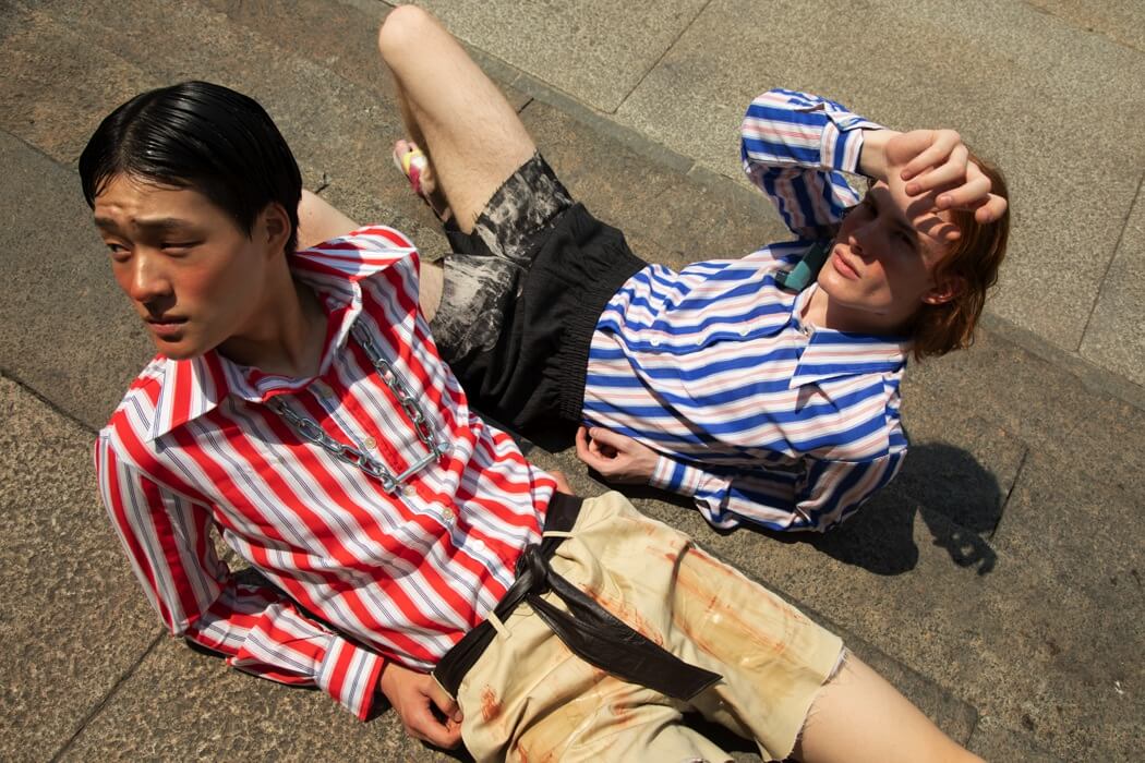 A KALTBLUT exclusive featuring the new Simon Cracker Milano MEN S/S2020 collection. The new collection was presented during Milan Fashion Week. Photography by Marilù Venditti. Art Director: Simone Botte. Styling by Carmelo Corvaia. Models are Min Woo and Egor Smyrnov. Makeup and hair by Gaetano Tricarico.