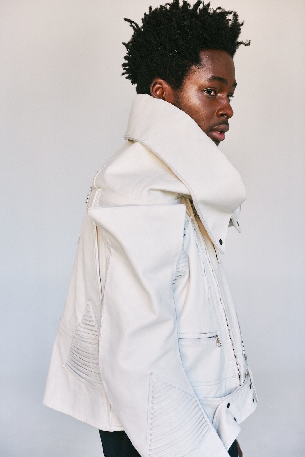 A KALTBLUT exclusive. Photo by Natalie Kogan. Model is Sam. Fashion styling and idea by Sasha Hramova. Makeup by Olga Kaplina. Hair by Nastya Ivanina. Brands are Levi’s, Off-White, Palm Angels, Adidas, Viva Vox, Red September, Anton Lisin, Odor, Roma Uvarov Design, Boohoo, Converse, Santoni, Treasure Store.