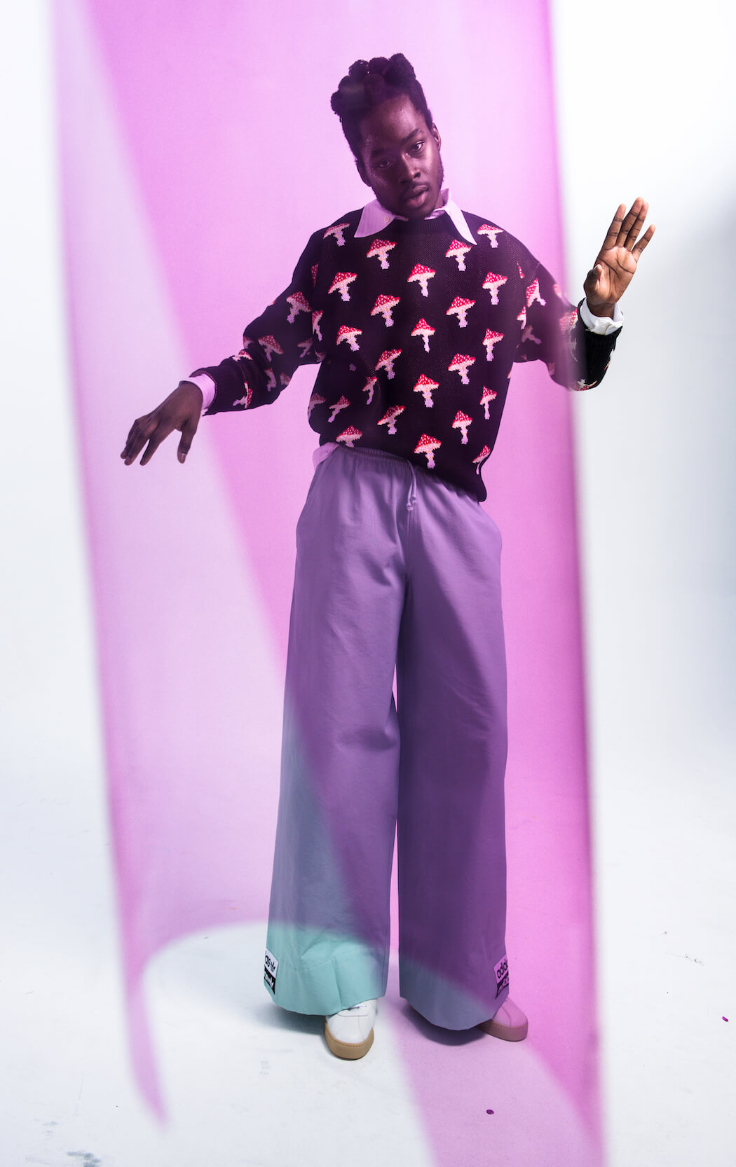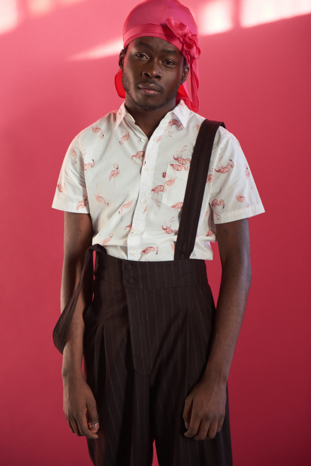 A KALTBLUT exclusive. Photo by Natalie Kogan. Model is Sam. Fashion styling and idea by Sasha Hramova. Makeup by Olga Kaplina. Hair by Nastya Ivanina. Brands are Levi’s, Off-White, Palm Angels, Adidas, Viva Vox, Red September, Anton Lisin, Odor, Roma Uvarov Design, Boohoo, Converse, Santoni, Treasure Store.