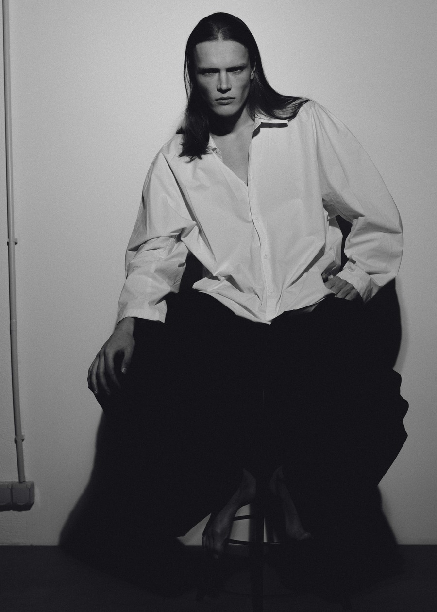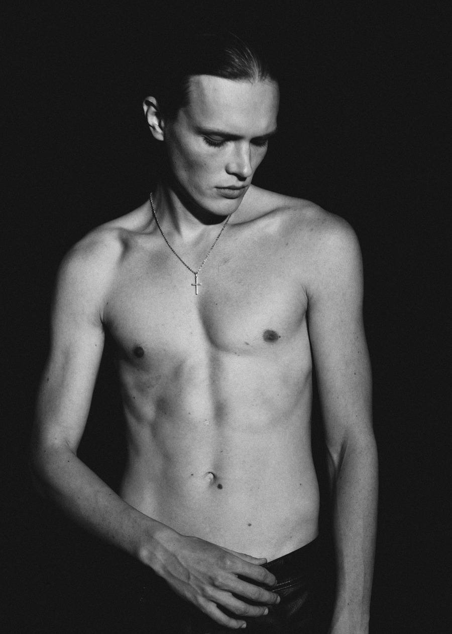 A KALTBLUT exclusive. Photography by Vaidas Jokubauskas. The model is Samuel Saadoj, signed by System Agency. The fashion brands used are Saint Laurent, Flow, Celine, and Zara.