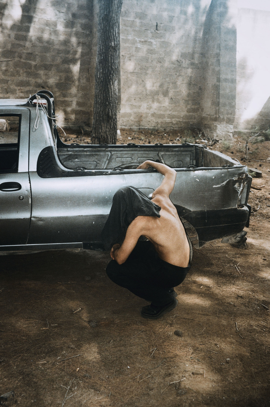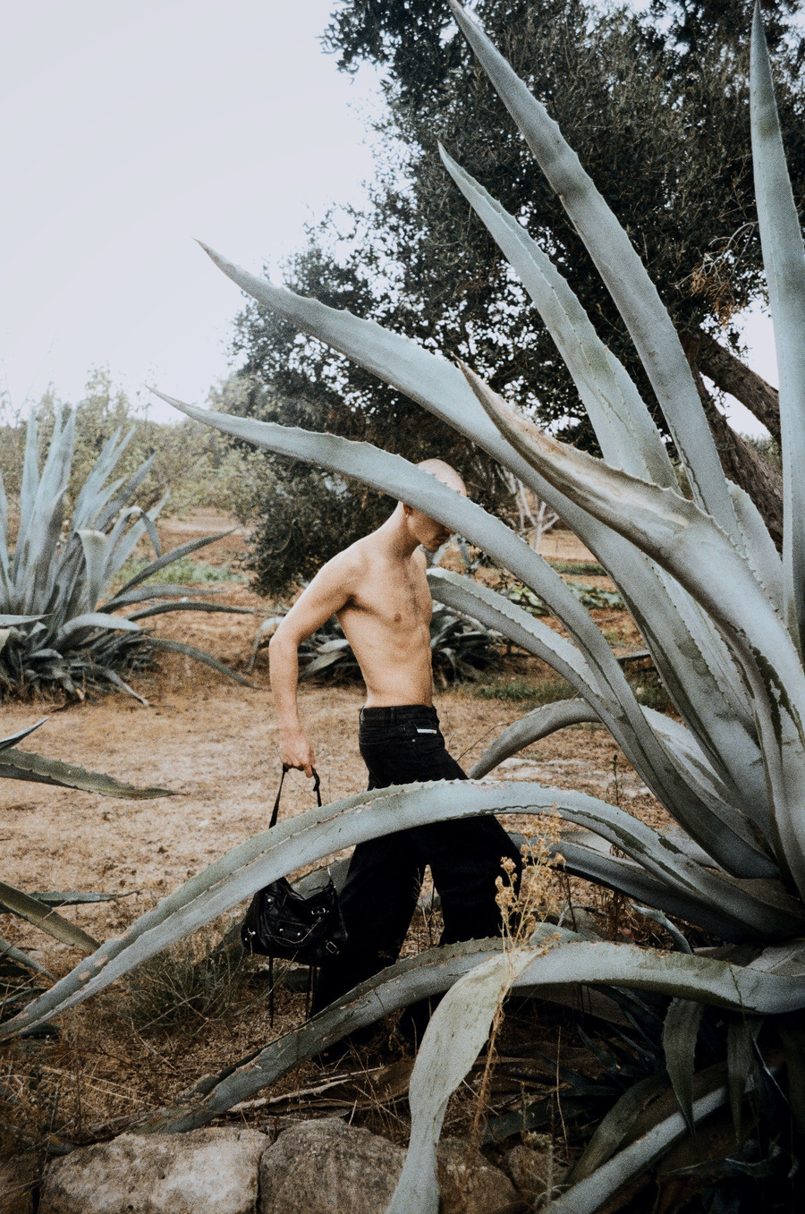 A KALTBLUT exclusive. Photography by Matthias Spiewok. The model is Maikel Luka. Fashion brands used are Emporio Armani, Balenciaga, Bottega Veneta, Prada, Diesel, and Adidas. “I’m Matthias Spiewok and I study photography. My focus is on portrait and fashion photography. I met Maikel a year ago at a shoot. Since then, we often work together and so this work was created during our first vacation.”