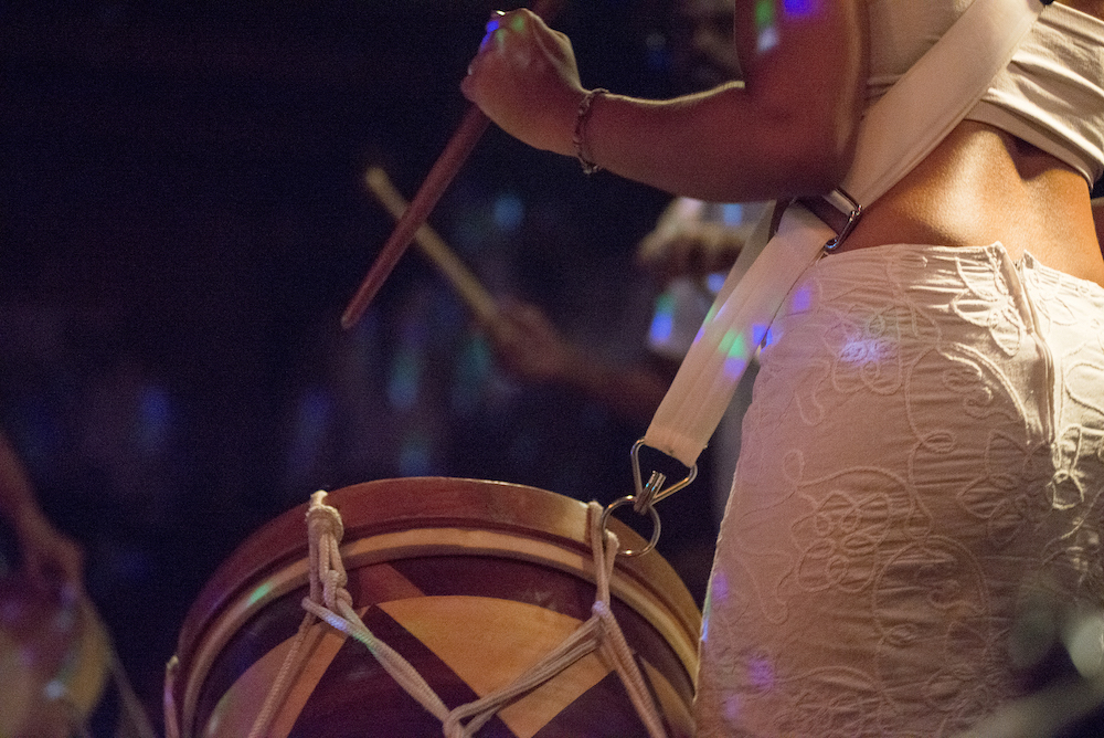 Sanni Est is blowing up in Berlin. One lasting memory of her recent concert at Klunkerkranich was of the artist gathering people after the show to help move all the gear from the stage to her apartment, located around the corner from Neukölln Arcarden. I picked up one of the beautifully crafted Alfaia drums and followed Sanni’s housemate into the carpark below the popular rooftop bar. As we were about to step into the elevator and join a couple readying to leave, we spotted the rest of Sanni’s entourage— about twenty people, and not all Brasileirxs—each carrying a single piece of equipment. More drums, an obscure instrument in a carrier bag, a microphone stand, a drumstool… Sanni’s housemate wedged a wheelie suitcase in the elevator and the couple inside waited patiently for the parade; talking, singing and gesticulating as they unhurriedly descended the ramp and filed into our elevator and another that had just arrived. Regrouping on the street we turned the corner and formed into single file, shuffling along the sidewalk towards Sanni’s building. Up two flights of stairs we formed a human chain, passing all the pieces of equipment one by one from the street door, through the apartment and into Sanni’s bedroom. It was ‘like rebuilding a forest occupation’ I later wrote in my notebook. Our task complete, we promptly walked back around the corner into the shopping centre and up to the entrance of Klunkerkranich, where we were asked to wait outside until we finished the drinks we were still clutching. That’s a support base.
