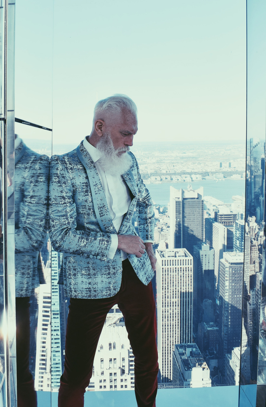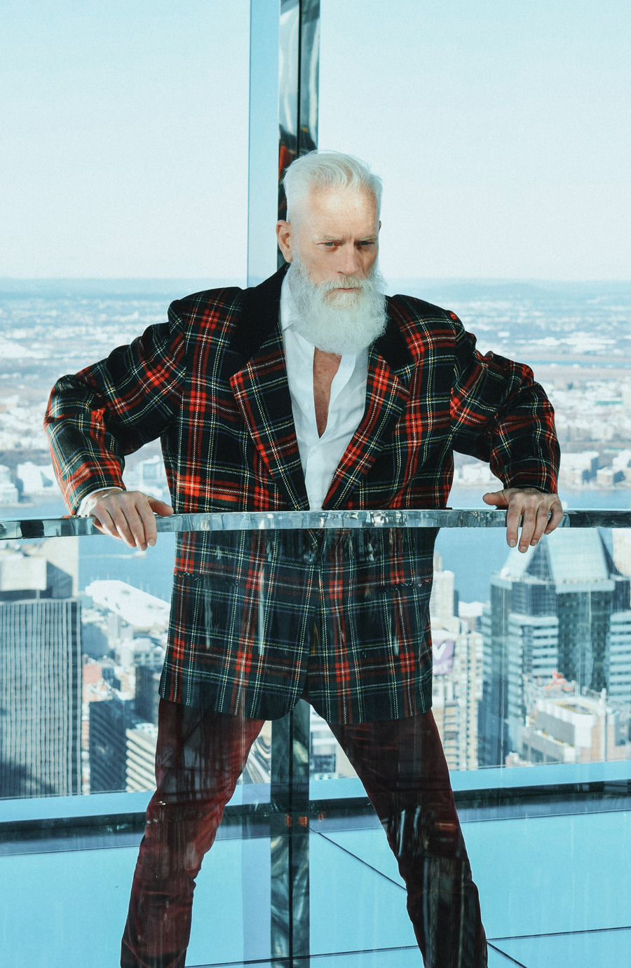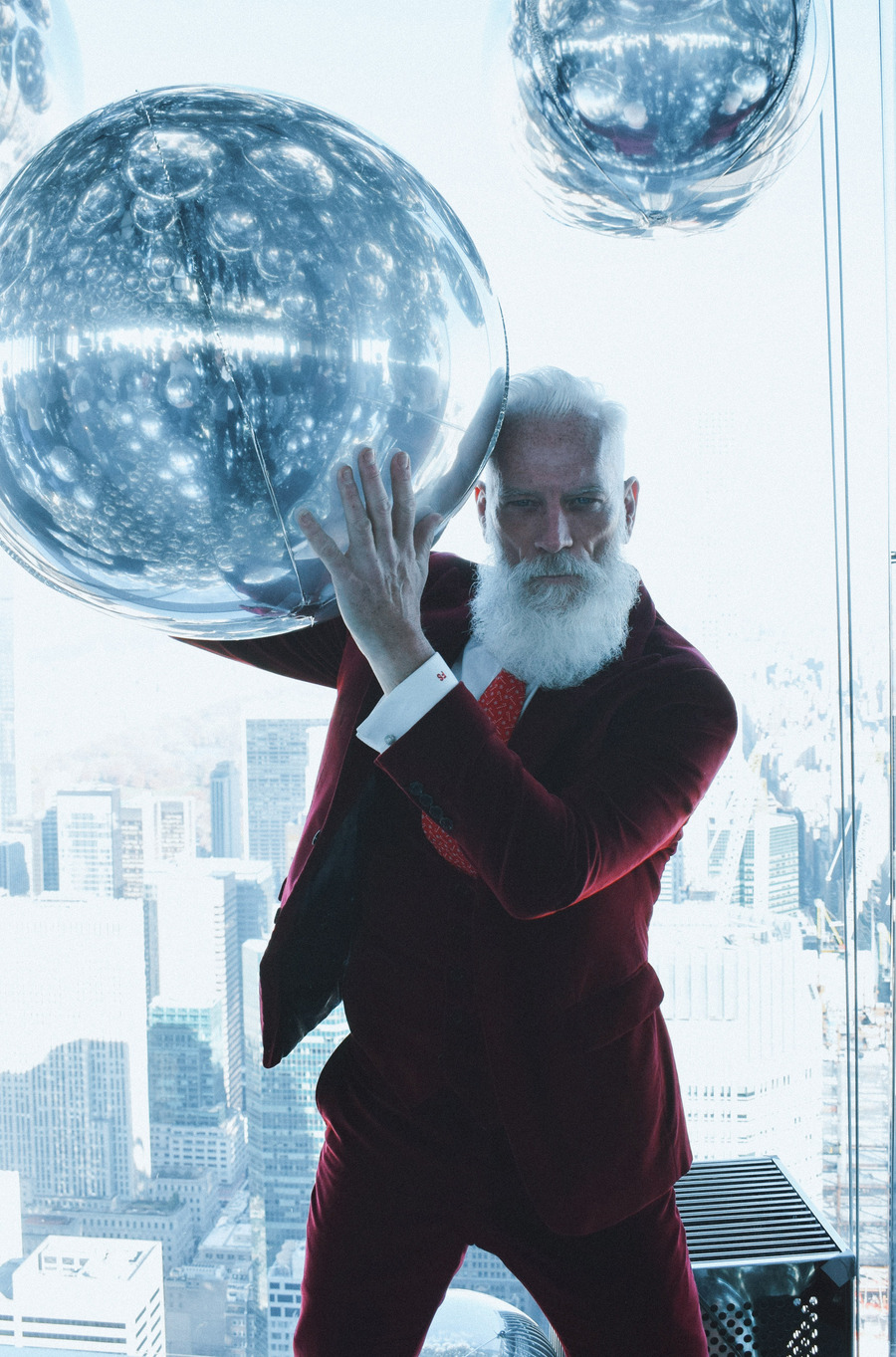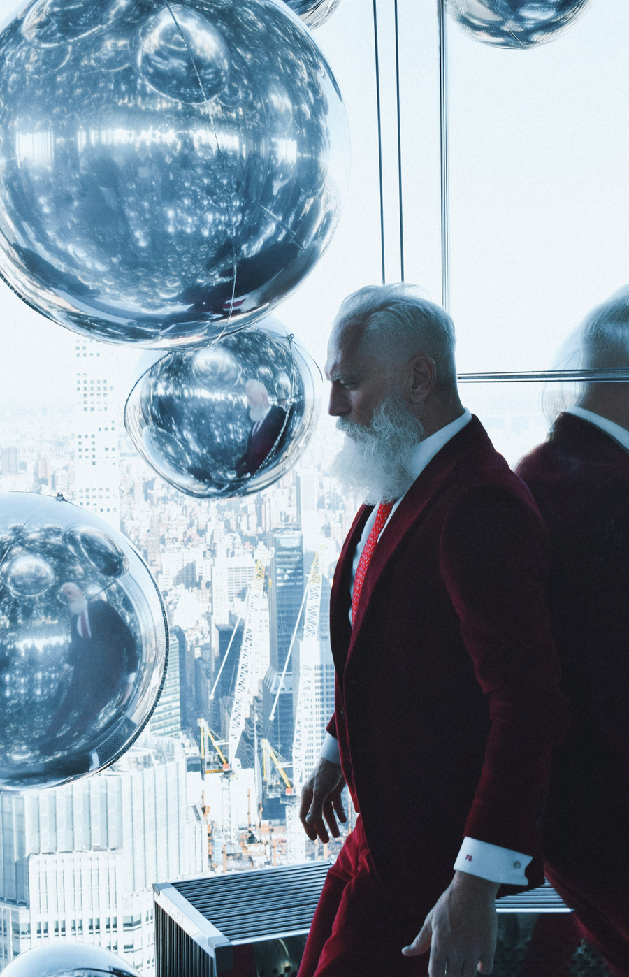A KALTBLUT exclusive by Elys Berroteran. At 1,401 meters high in the city of New York, this story begins with Paul Manson, the model internationally known as Fashion Santa wearing pieces from Indochino, Carlos Benguigui, Diavi, Dior and more in exclusive on the heights of the city.