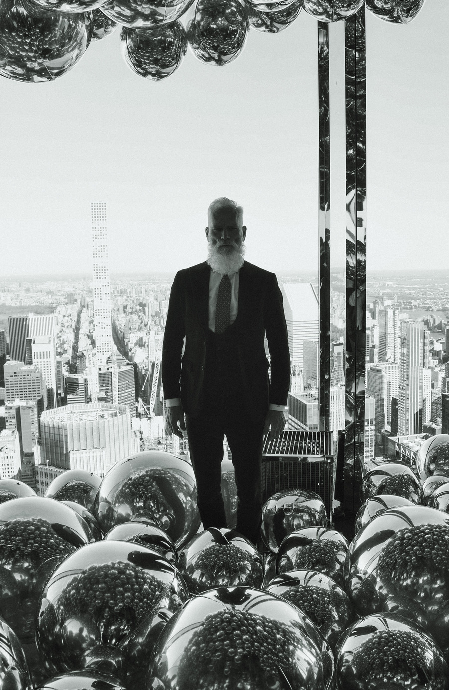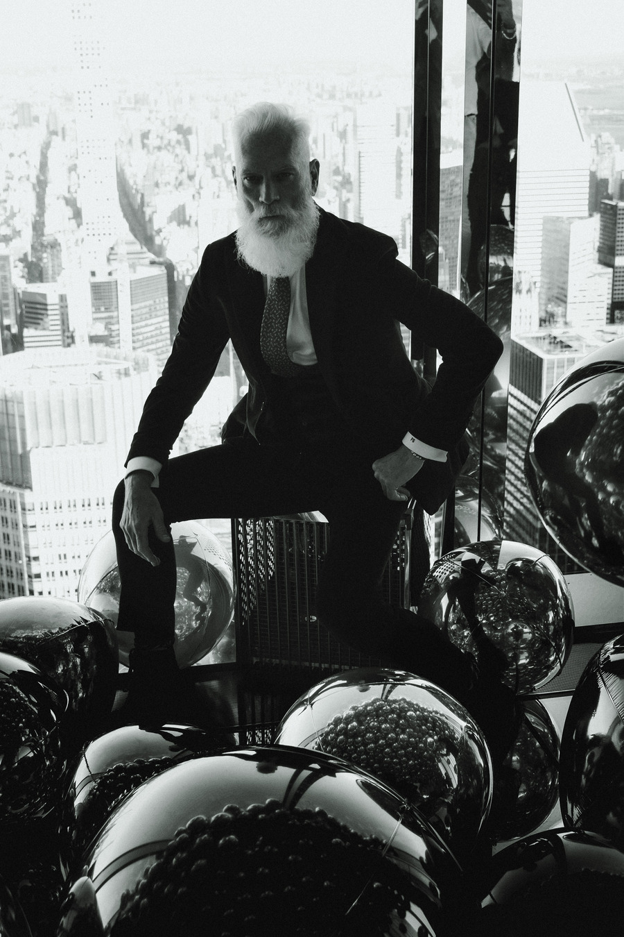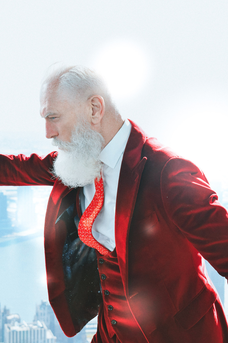 A KALTBLUT exclusive by Elys Berroteran. At 1,401 meters high in the city of New York, this story begins with Paul Manson, the model internationally known as Fashion Santa wearing pieces from Indochino, Carlos Benguigui, Diavi, Dior and more in exclusive on the heights of the city.