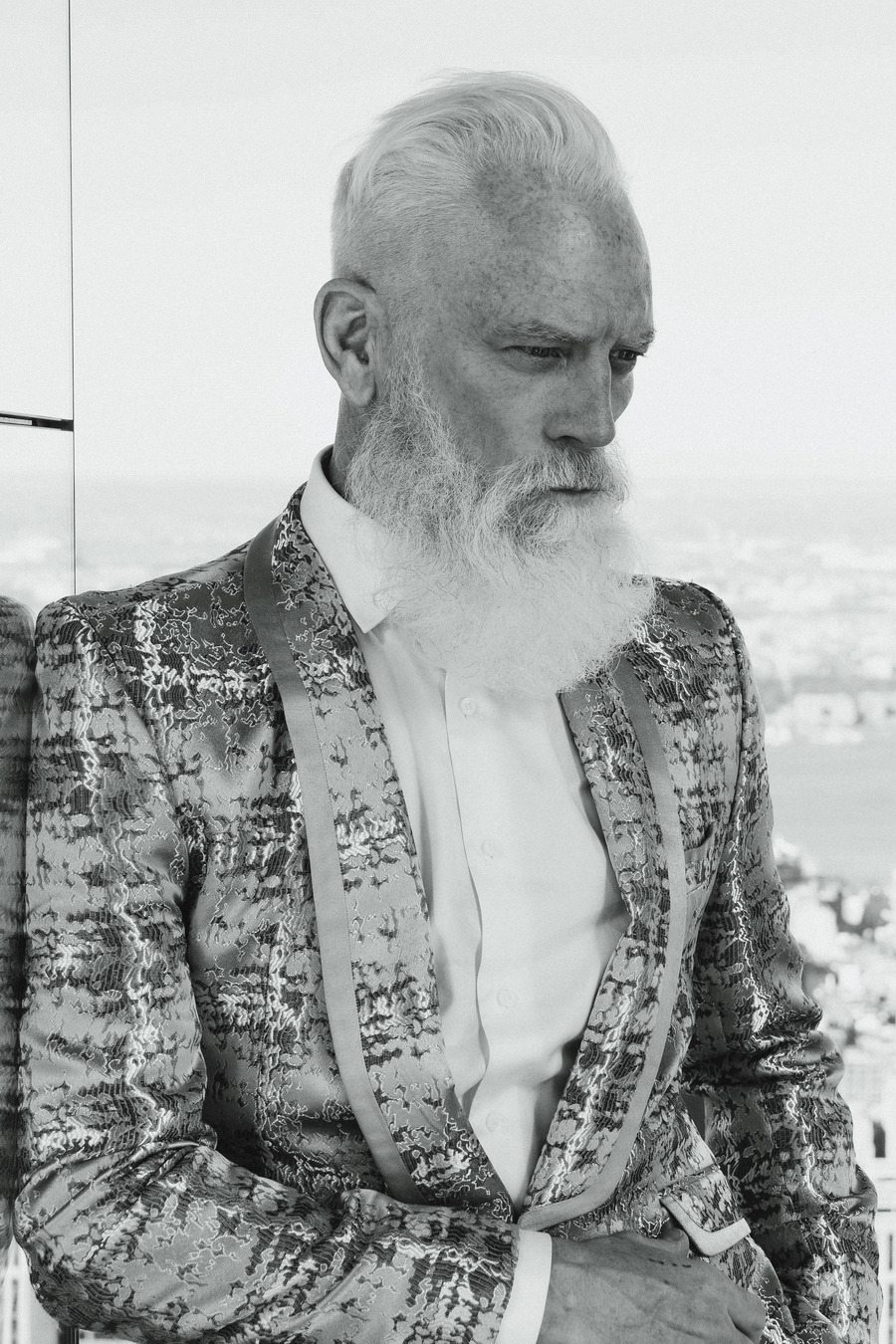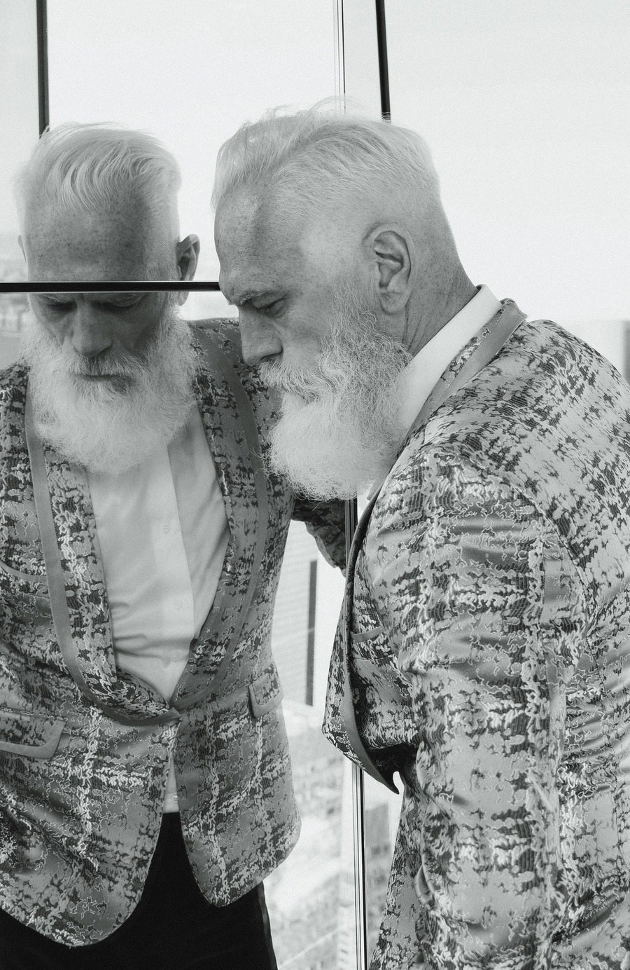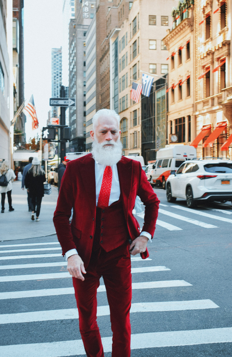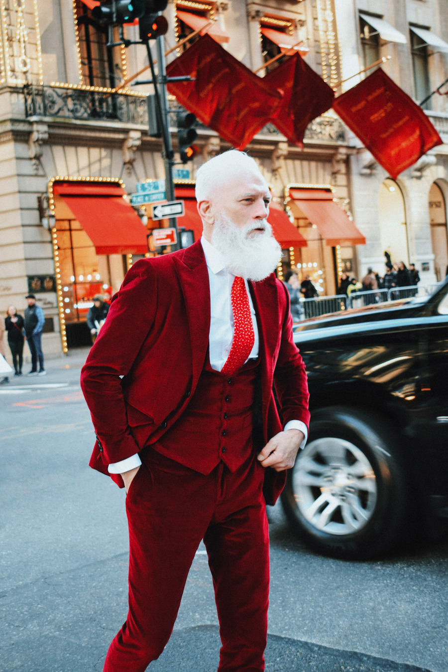 A KALTBLUT exclusive by Elys Berroteran. At 1,401 meters high in the city of New York, this story begins with Paul Manson, the model internationally known as Fashion Santa wearing pieces from Indochino, Carlos Benguigui, Diavi, Dior and more in exclusive on the heights of the city.