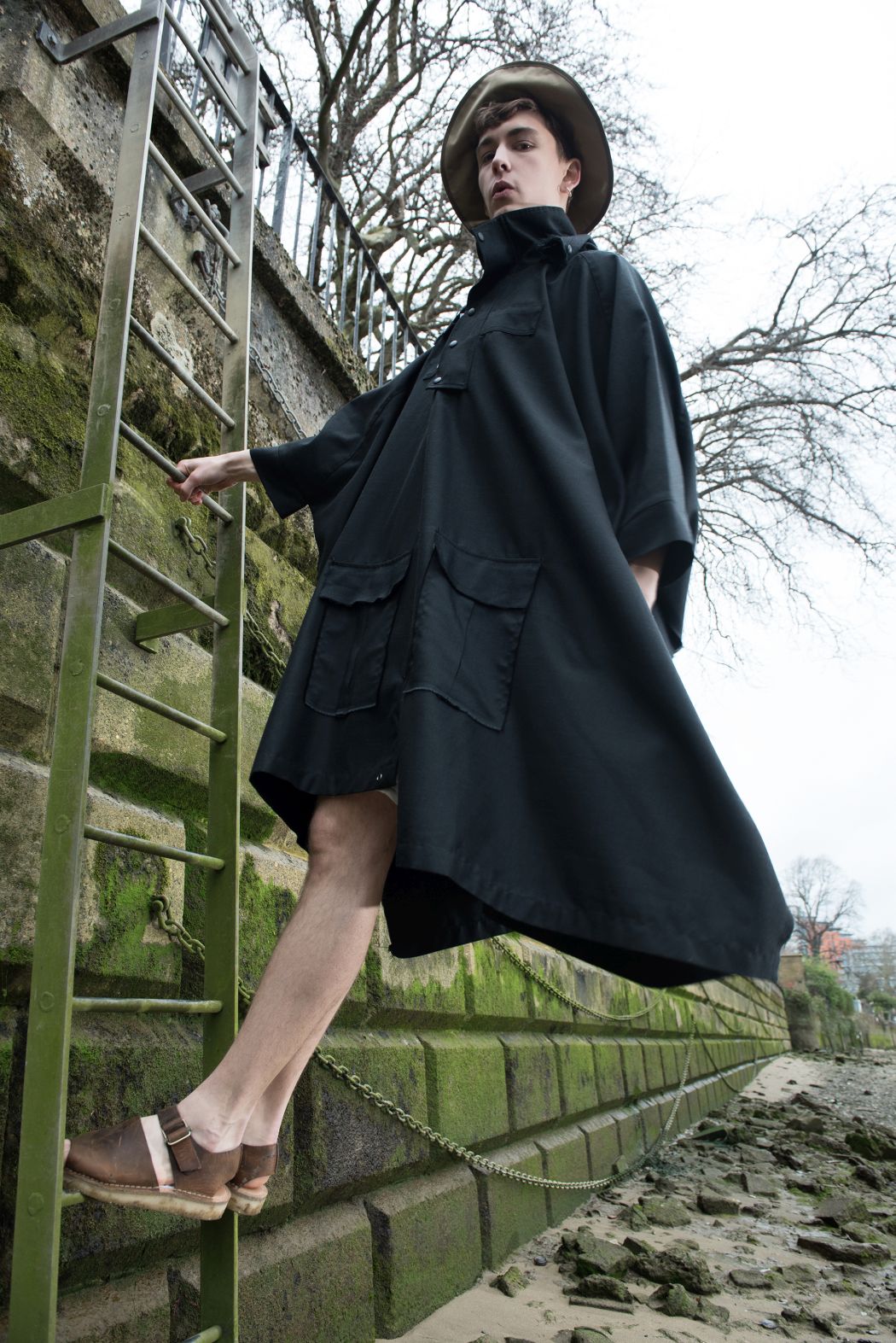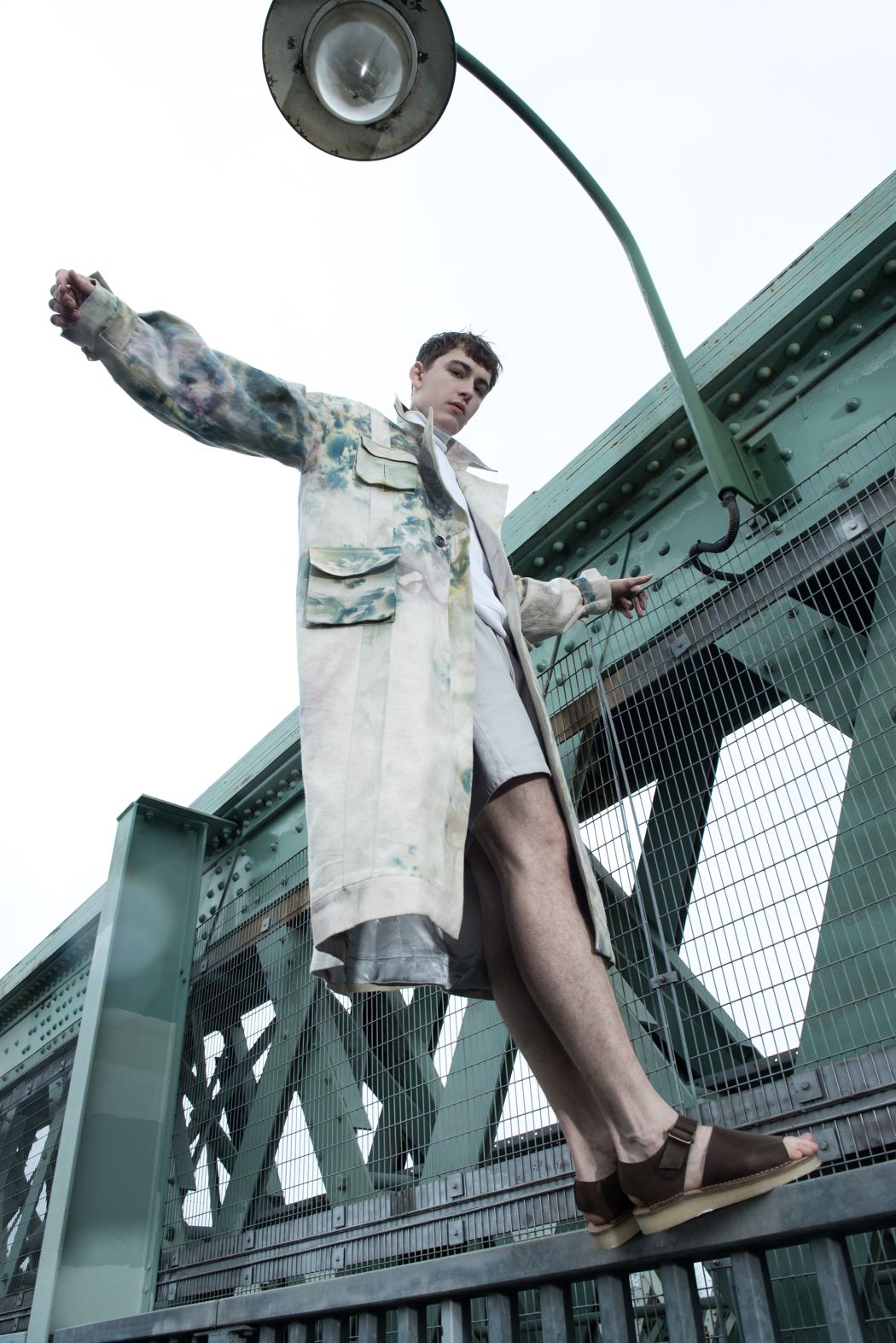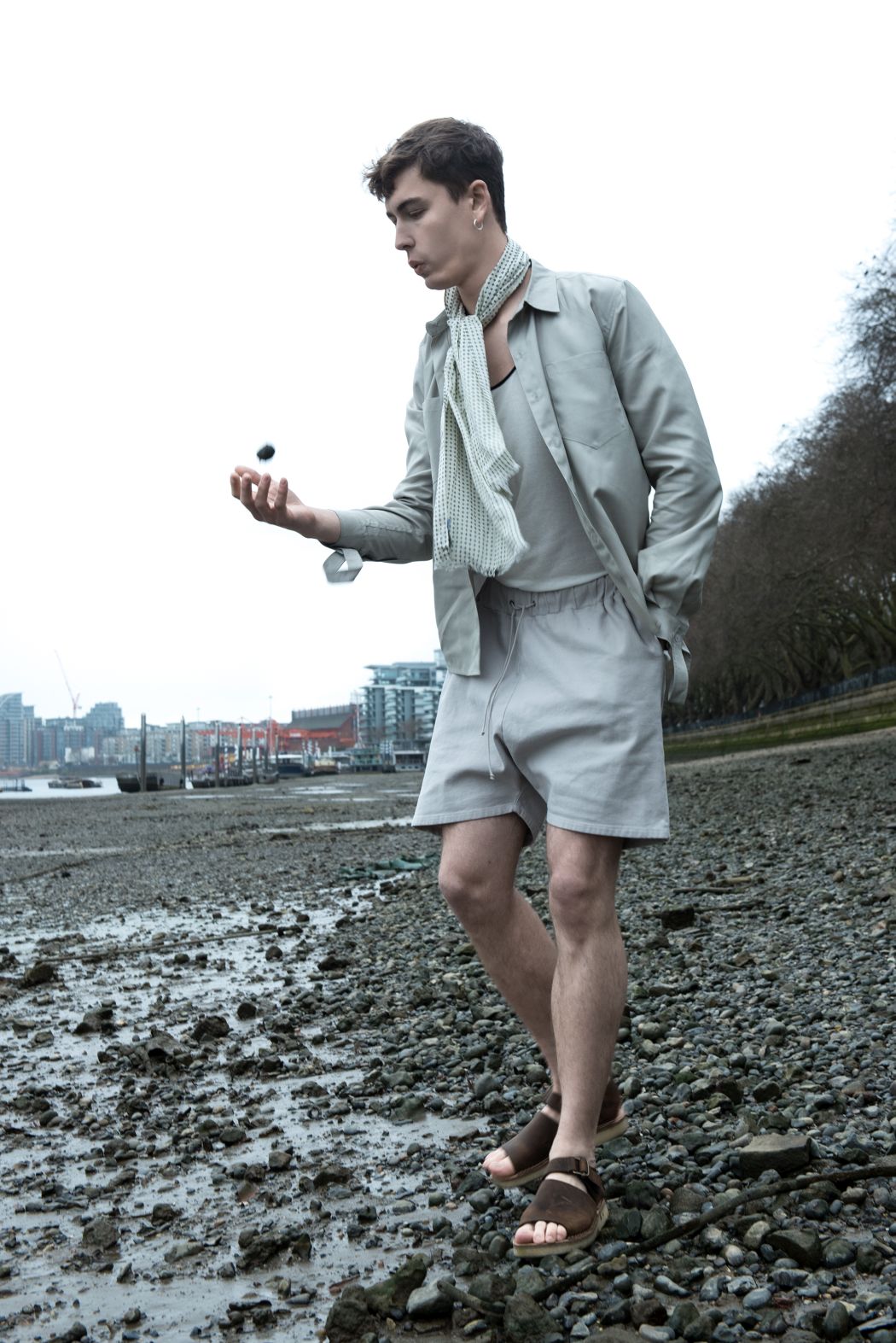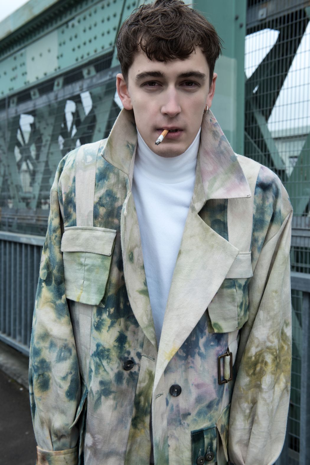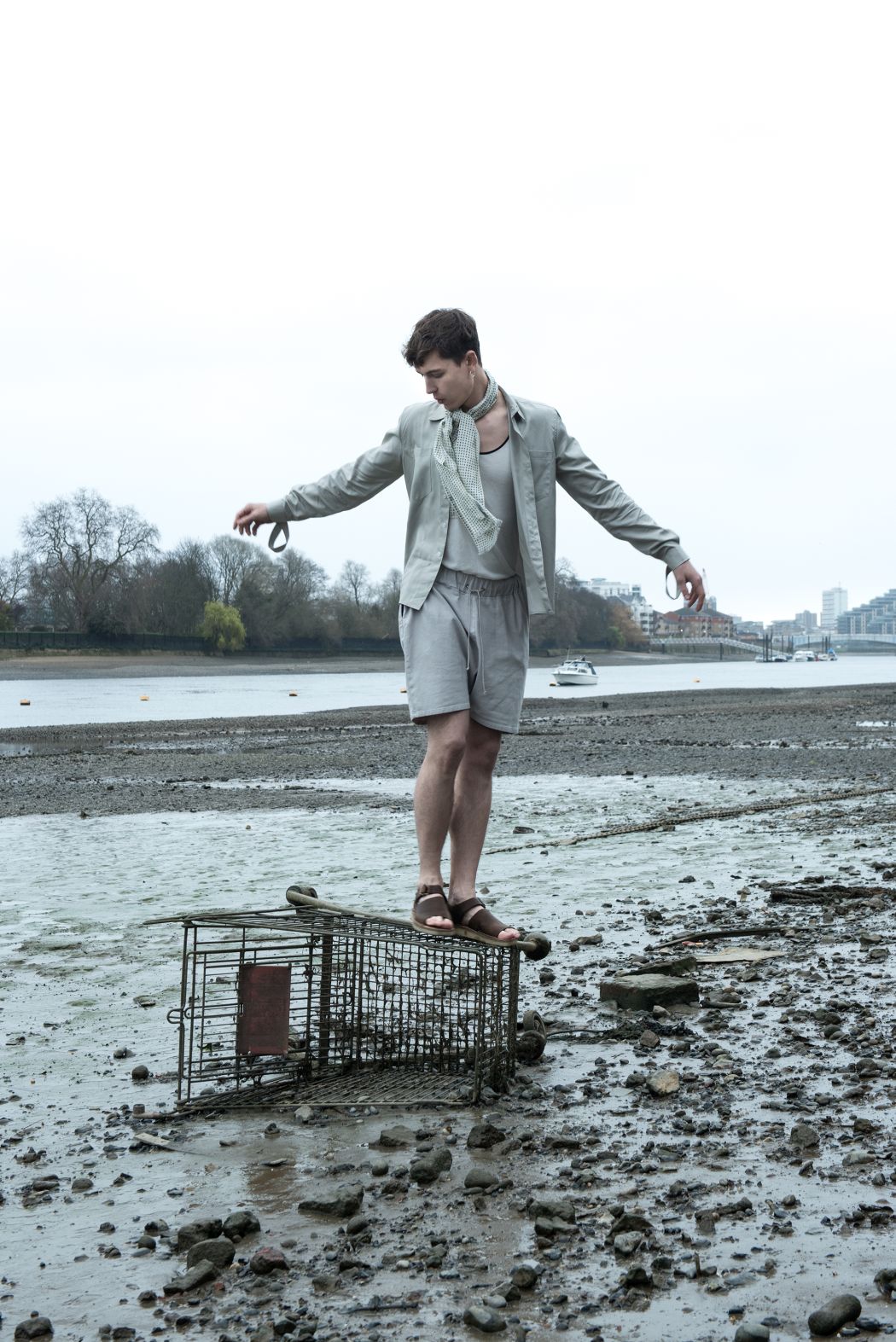 A KALTBLUT exclusive menswear editorial. Photography by Corinna Luce. Model is Pavel Koziy from Nevs Models. Make up and hair by Iris Grob. Styling by Manu Requejo and María Larrev. “I studied styling in London, where I met Maria, the other stylist of this editorial. I arrived from Spain tired of working in advertising and Maria was tired of working as an economist in Berlin. Fashion united us in London, where the idea of making this men’s fashion editorial came up. We decided to make this male editorial, based on the story of a young man who takes refuge in the river to think, reconsider and fish some sardines. Consider the river as the fashion where many of us take refuge, dream and have fun. We loved working with Corinna, the photographer, and model Pavel, who inspired us even more because of how professional and talented he was. Now I’m still working with María in Spain, she has become a fashion photographer and I’m still working as a stylist. We work between Madrid and Barcelona. ” says stylist Manu about the story.
