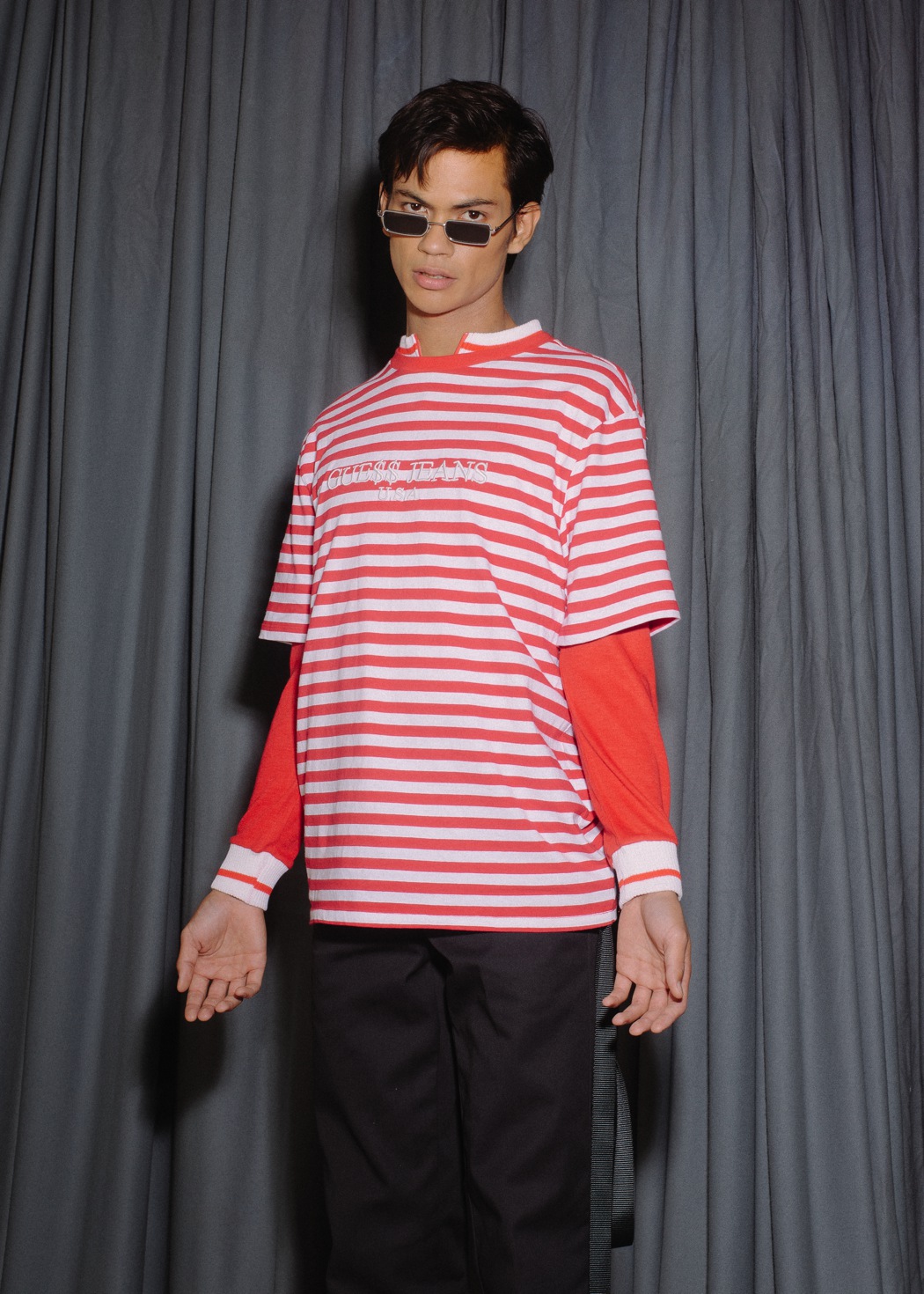 Glasses, Stylists Own (Model: Fredrik, Right) Cargo Trousers, Dickies T-shirt, Guess