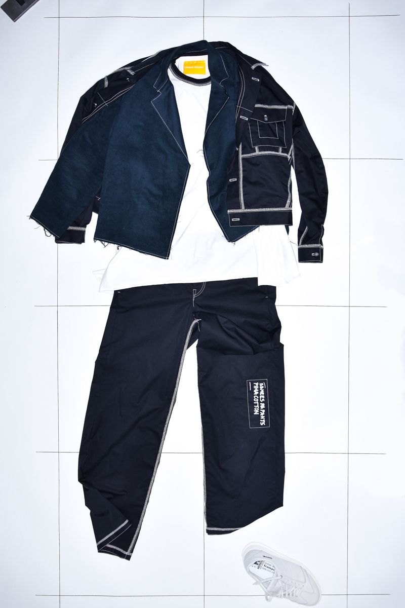 In the garment design, we treat all the functional components as visible design elements. By placing all pockets, linings and seams on the outside of the pieces, we turn them into outstanding decoration.