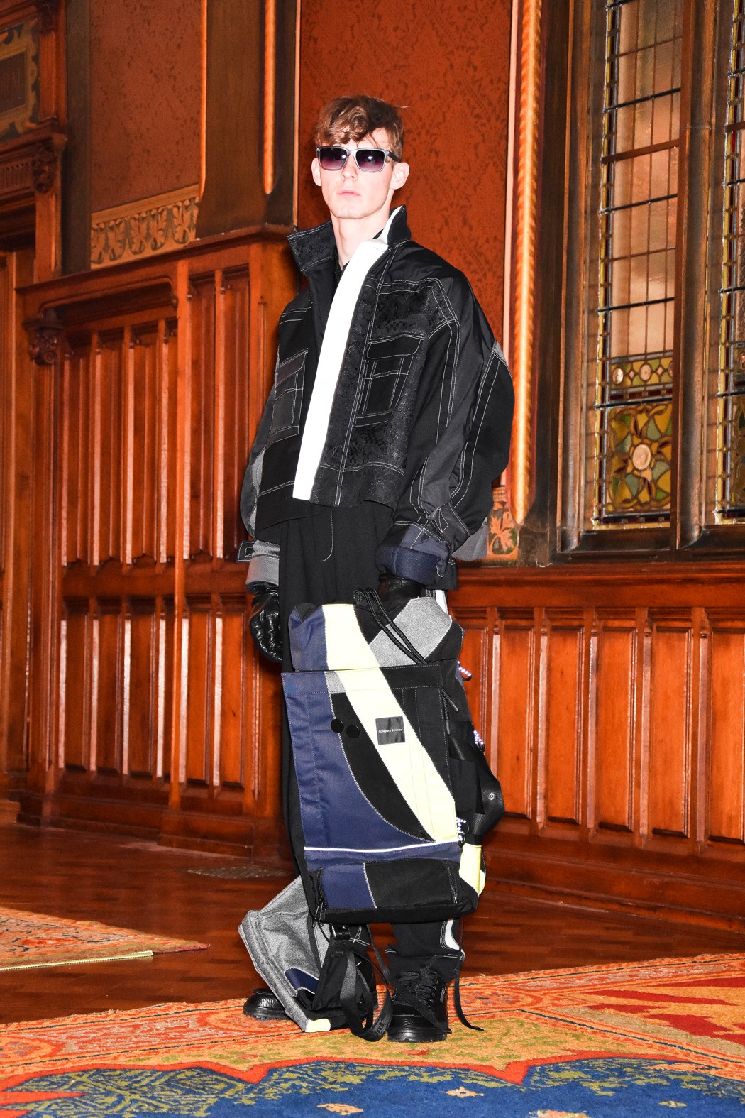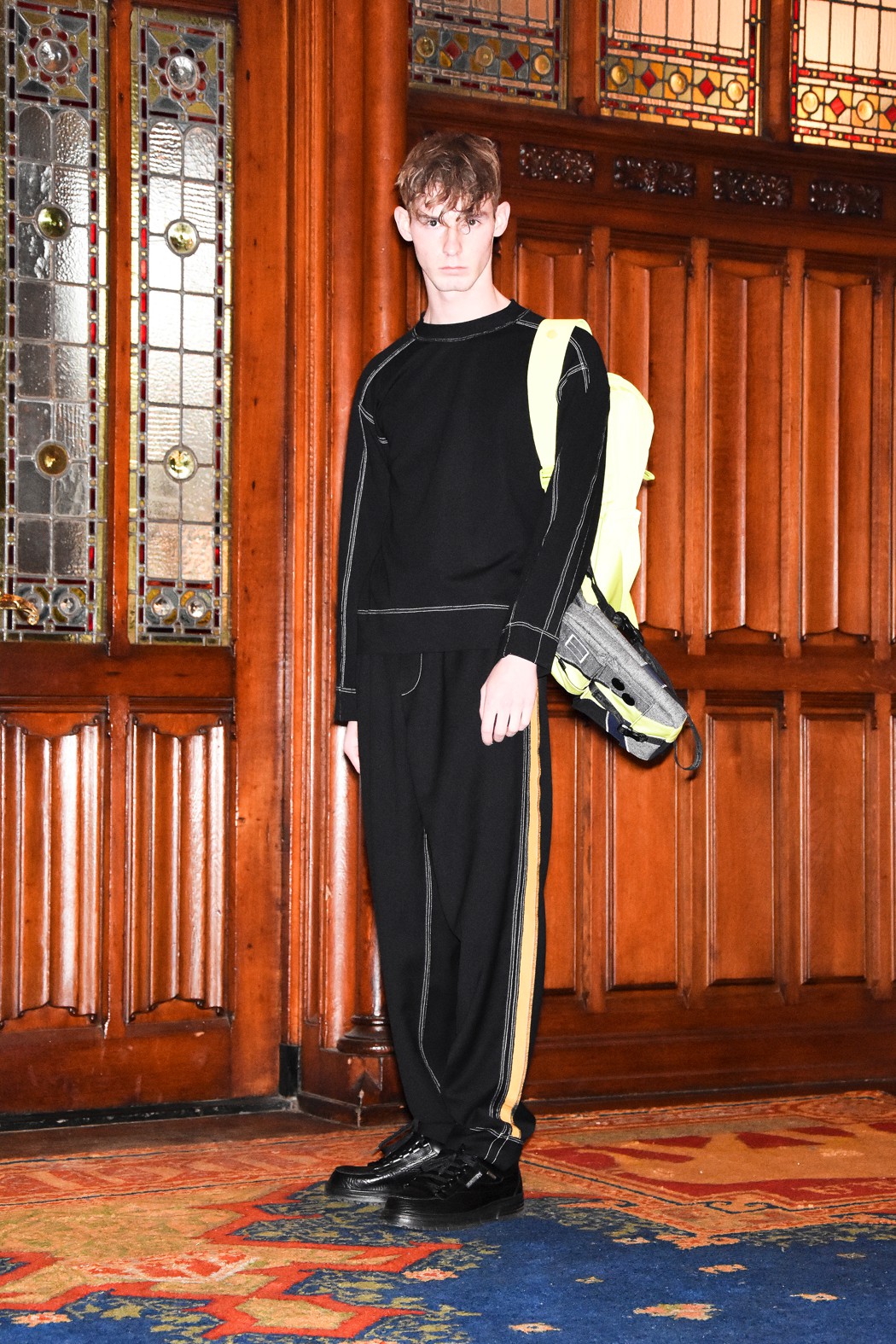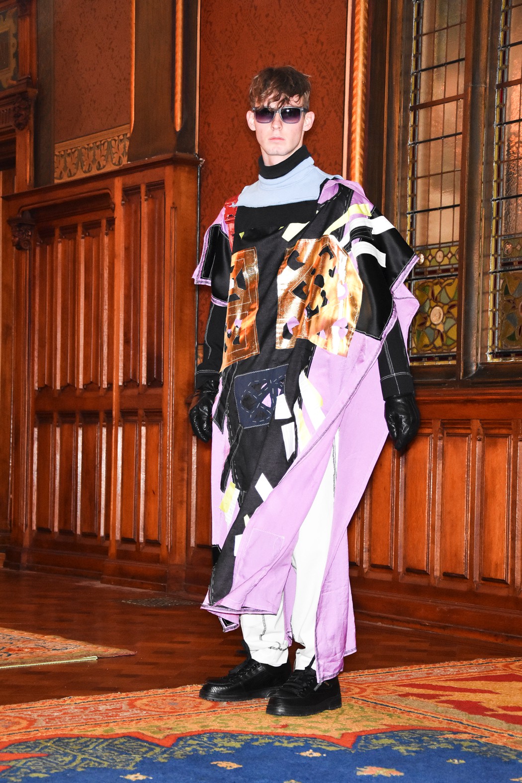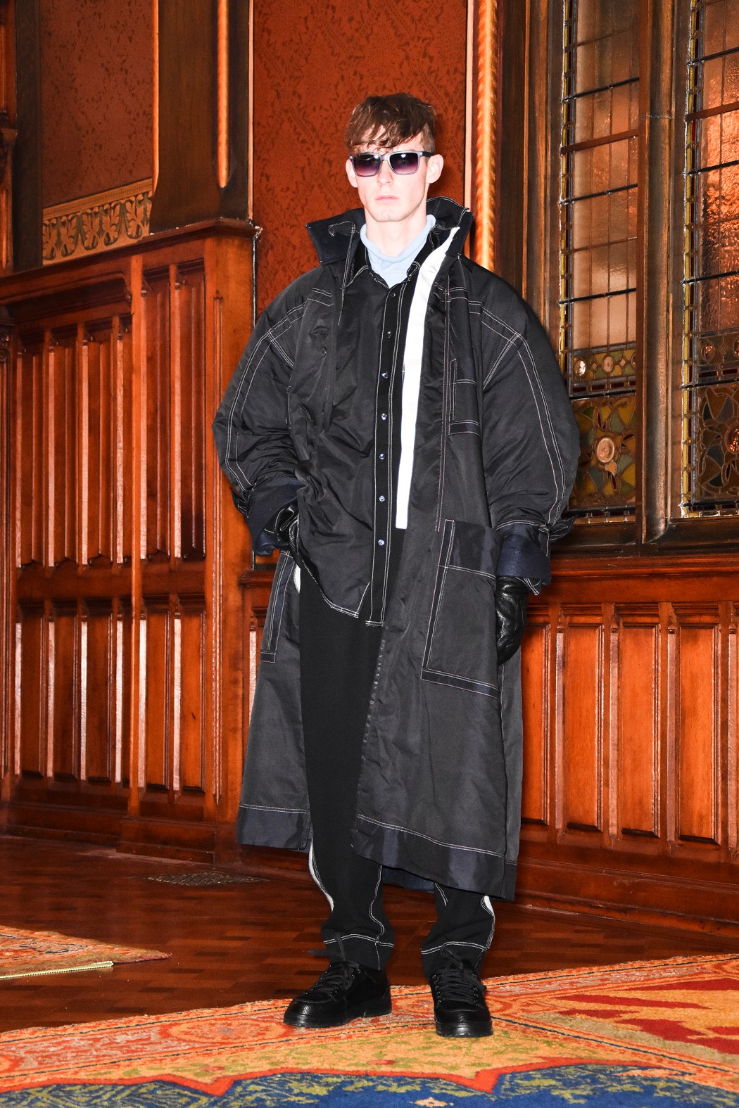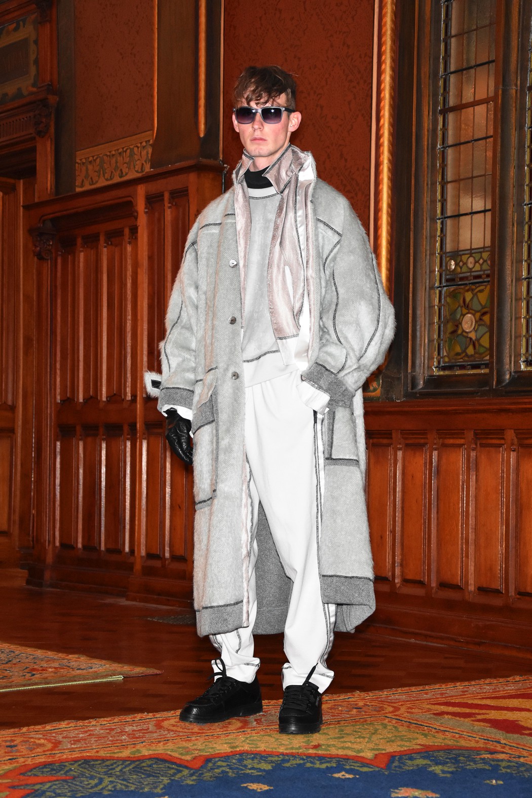 The collection consists of voluminous overcoats, silk finished trousers, oversized shirts, detailed sweaters, overalls and handstitched scarves. These items are made of silk, crepe wool, mohair, Japanese nylon, corduroy and heavy tricots. The AW19 images are shot in the Royal Waiting Room at the Central Station of Amsterdam. The space designed by Cuypers was specially opened for this occasion so that the collection is immediately placed in the image of the inspiration.