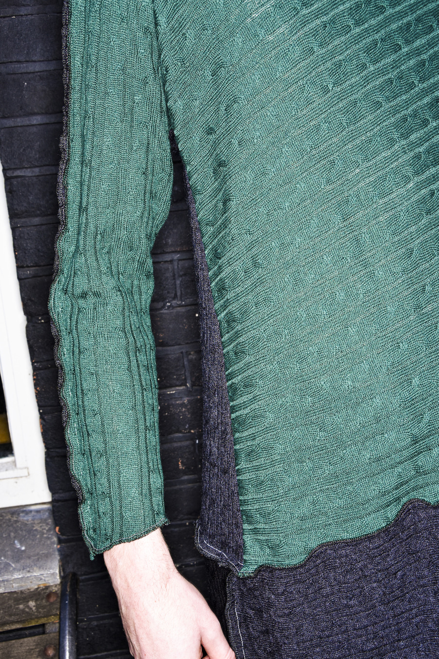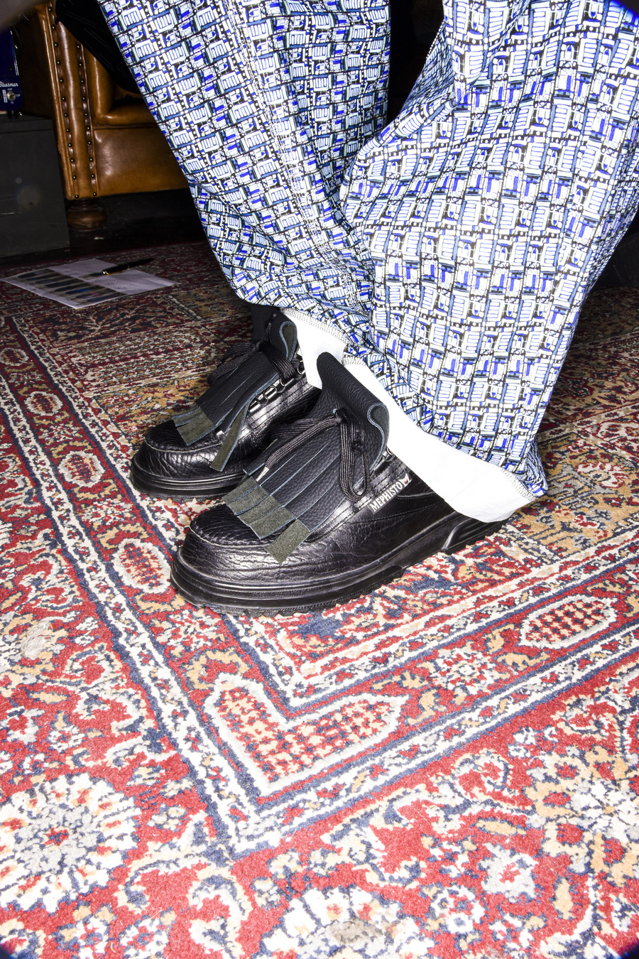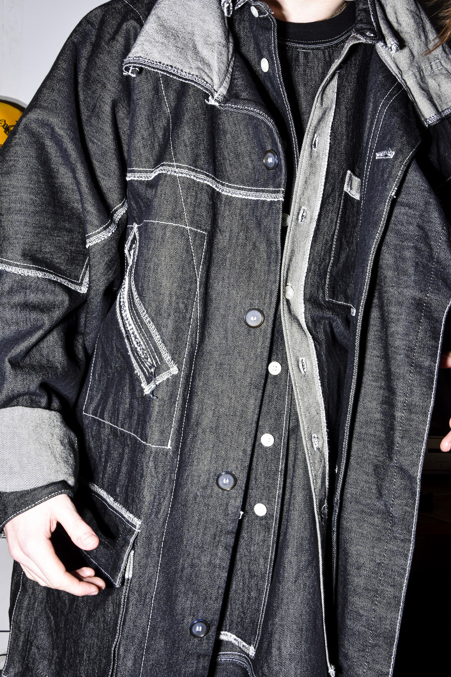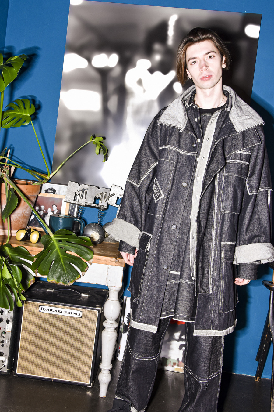 The collection features iconic Dutch denim designs, cargo-inspired pants, oversized coats, tailored shirts, voluminous culottes, 3D draped cable knits, floor-length tunics and hand-drawn prints, paying special attention to visible construction techniques, irregular pattern cutting and handmade graphics.