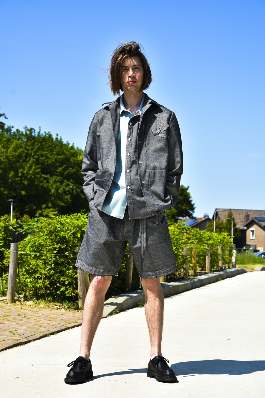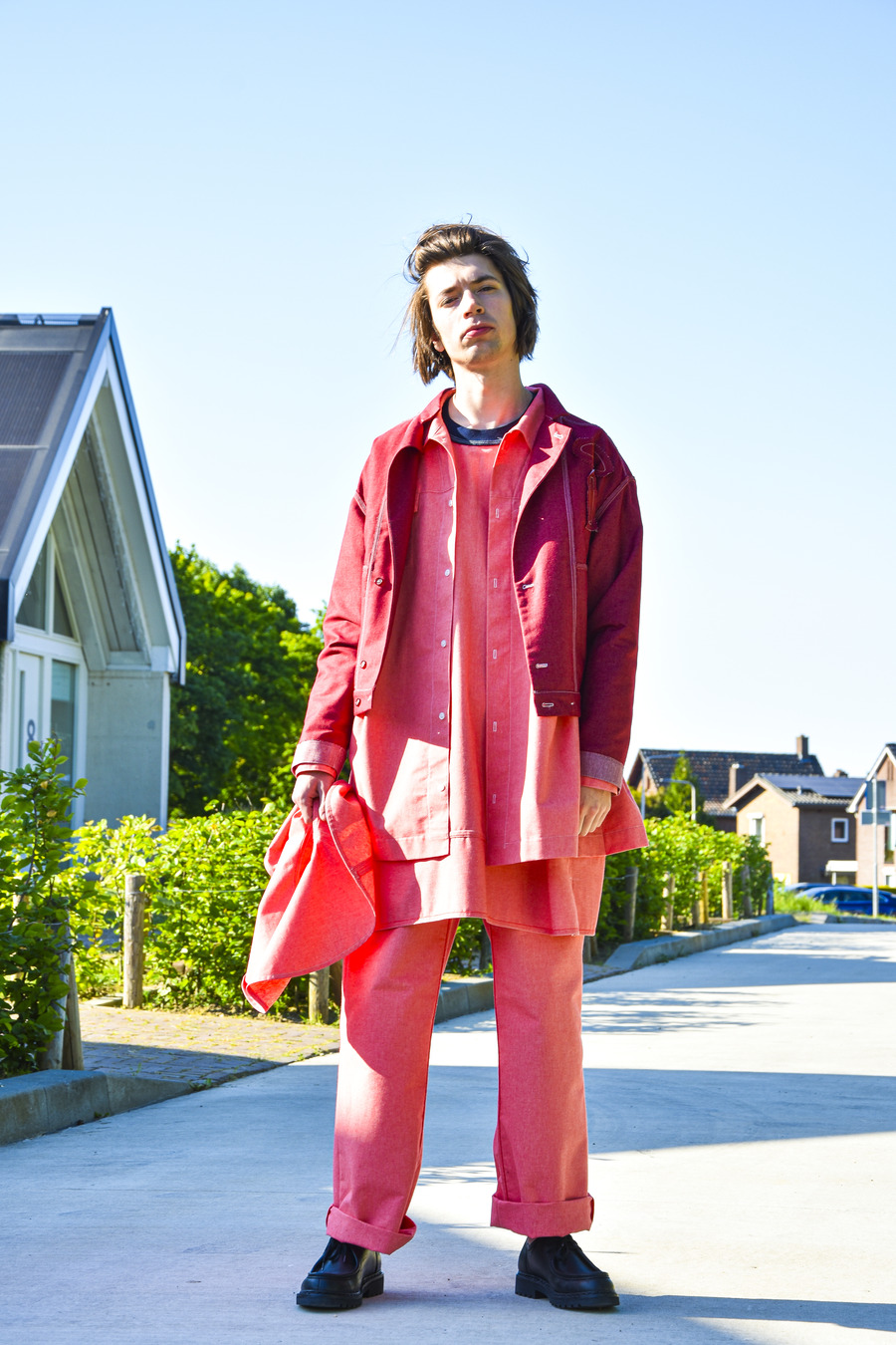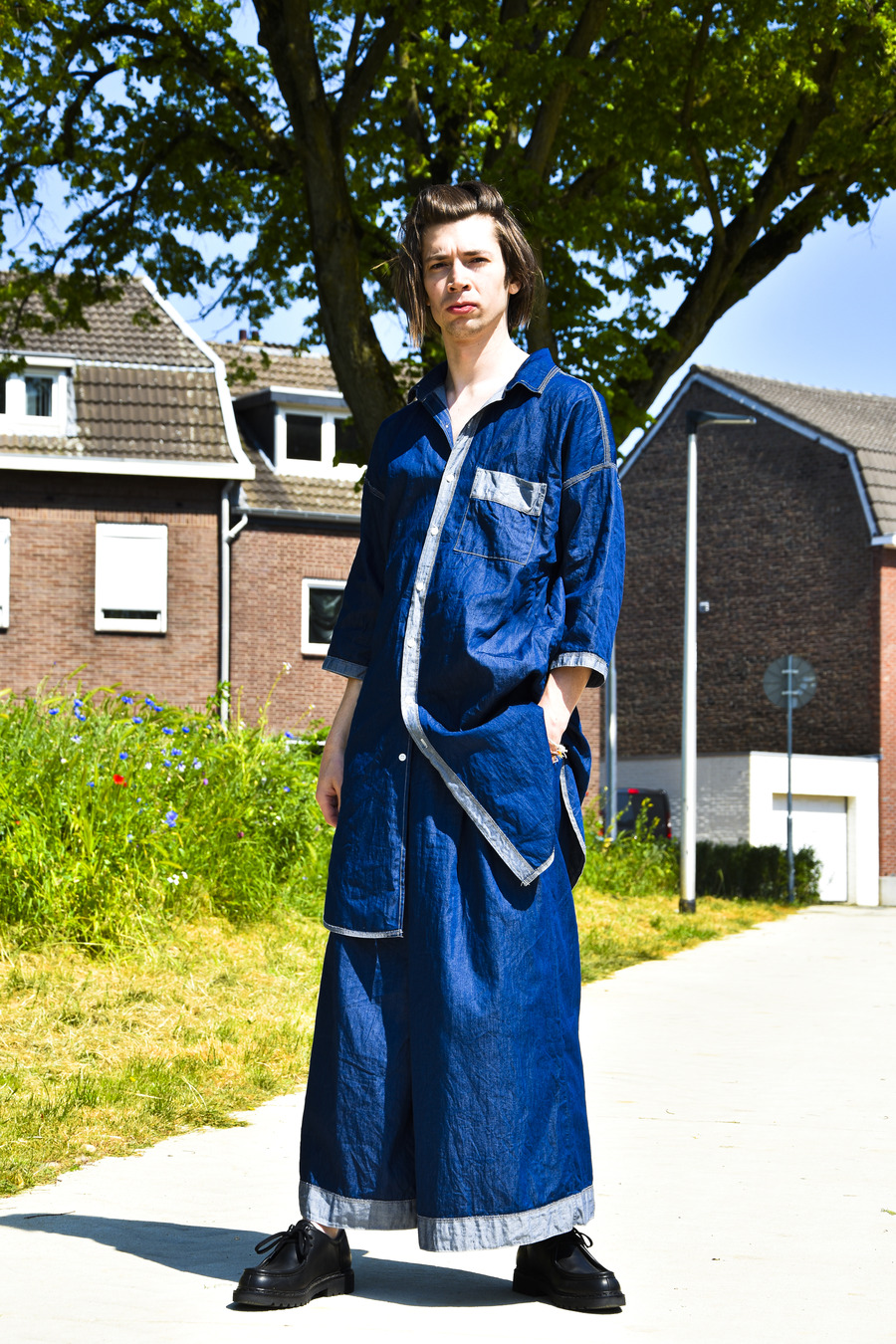 The colour palette of this collection reflects a faded aesthetic, with hues of grey, sky blue, and lipstick red juxtaposed with vibrant photo collage flower prints. To ensure the utmost quality, the materials used in the collection predominantly consist of Dutch wovens, including soft denim, bi-colour Panam, crisp chambray, as well as lightweight summer cotton sourced from Italy and England.