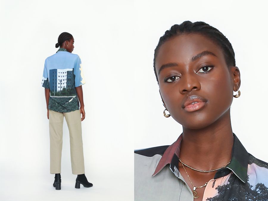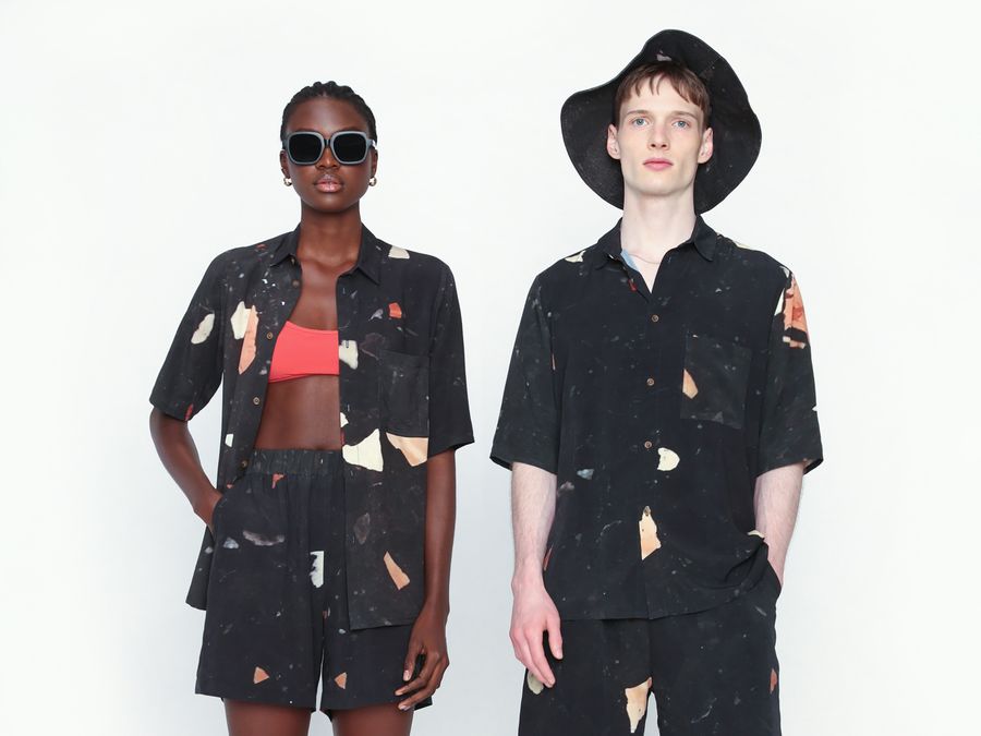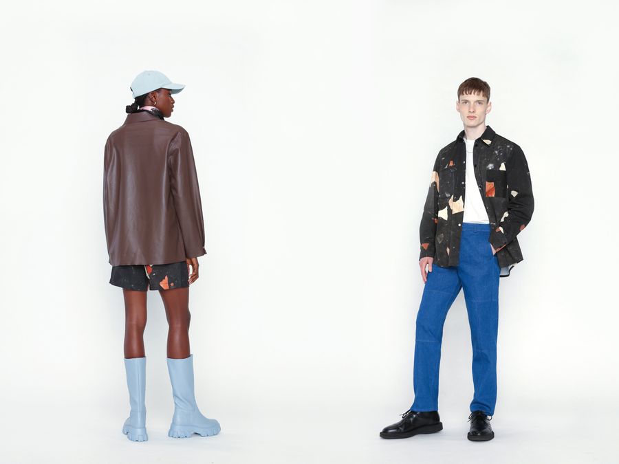 The pieces continue to spread genderless vibes by presenting a number of straight- forward styles, merging tailoring with work- and streetwear. Once again only premium sustainable fabrics have been used like organic cotton, silks, denim and ecovero.