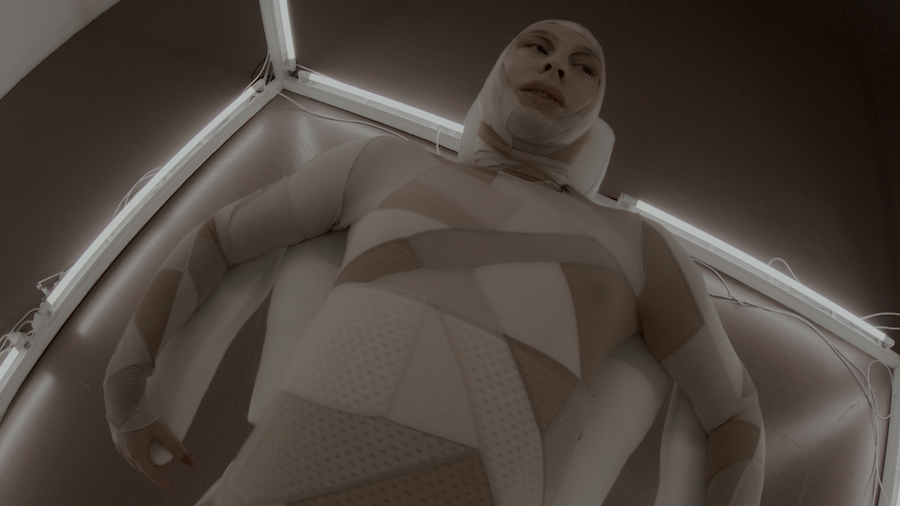 “For this project, a conscious choice was made to work exclusively with performers from the Amsterdam queer and nightlife community. Given the current state of the fashion industry, it can prove more difficult to work with actors who don’t fit standard modelling sizes since fashion brands often have a limited range of available sample sizes. While working closely together with stylist Lea Wilbrand, we were able to secure garments from new and upcoming designers such as Luis de Javier, Laura Silberzahn, and Amber W. Smith which conveyed various scales of power and powerlessness. We created this film within a low budget which challenges you on both creative and production levels. We were lucky to be able to work together with art space W139 who helped the project immensely by trusting Geijer Studio to construct the elaborate sets within their walls.”