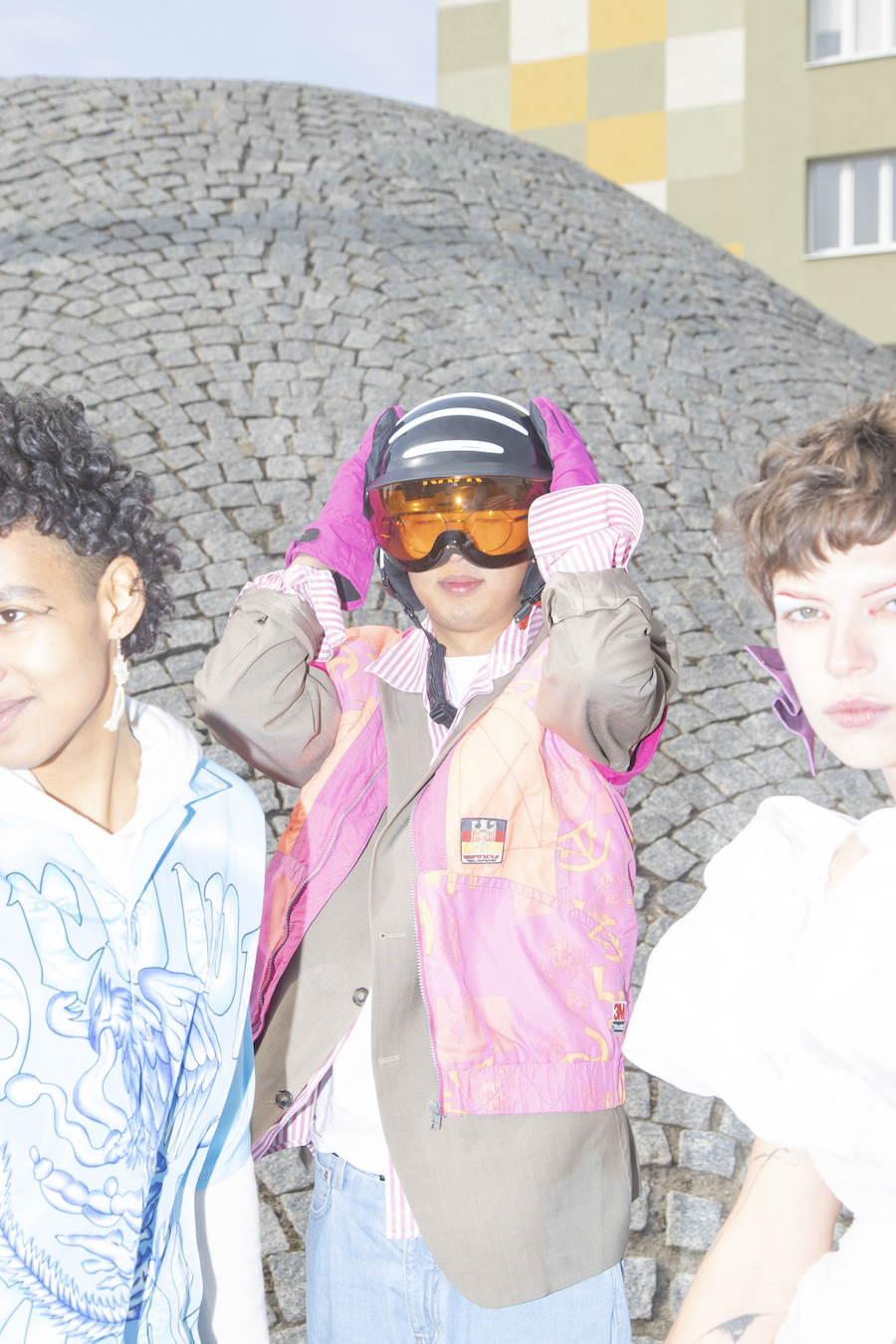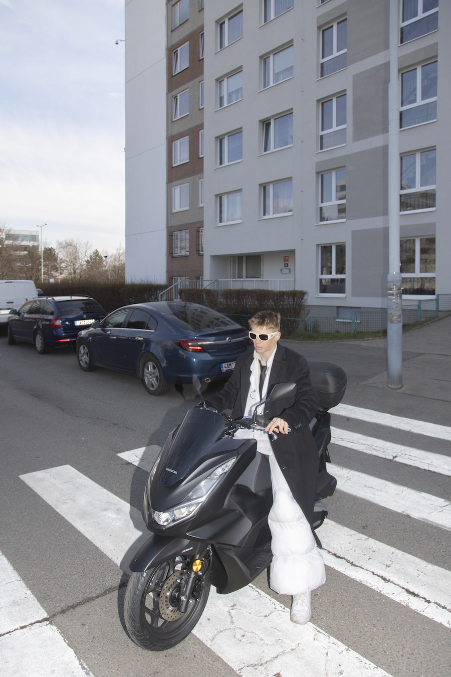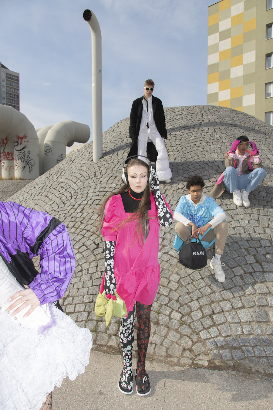 “Sdíliště is the name created for this High Street Fashion Housing Estate (Sídliště) Editorial, and it means “a sharing place.” It focuses on the Czech Republic and my life there. Since I started elementary school, I was jealous of my best friend living in the housing estate, going to school there, and having friends/community next door. I spent some part of my childhood there with her and her friends. I have created my housing estate community for a day by this editorial. They laughed, and they danced. It was a lovely day.”