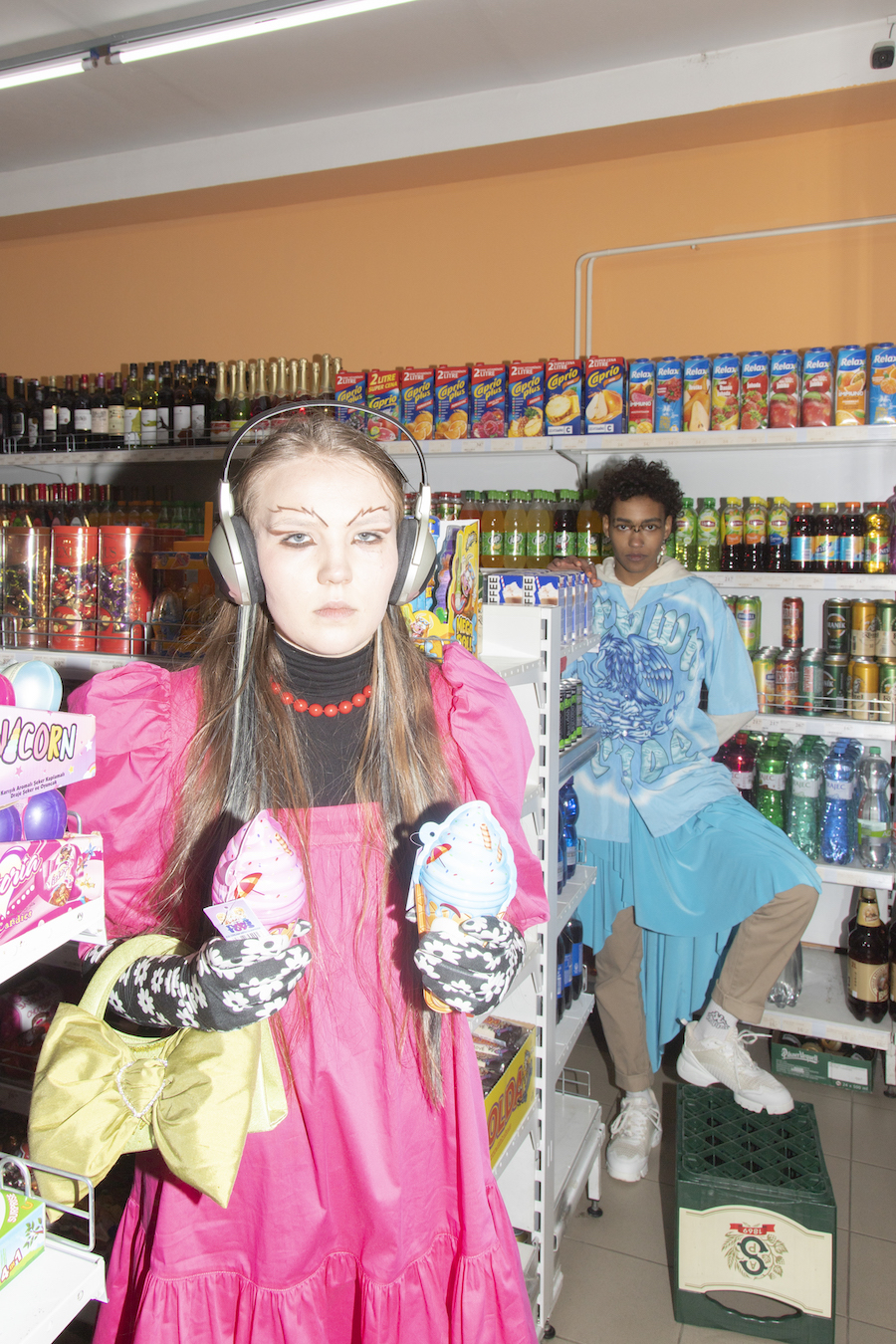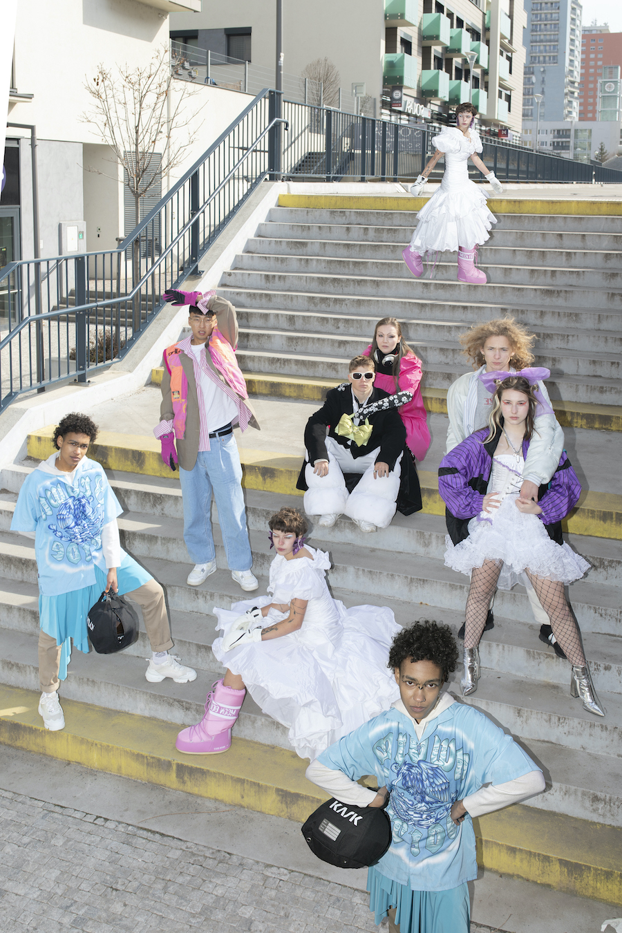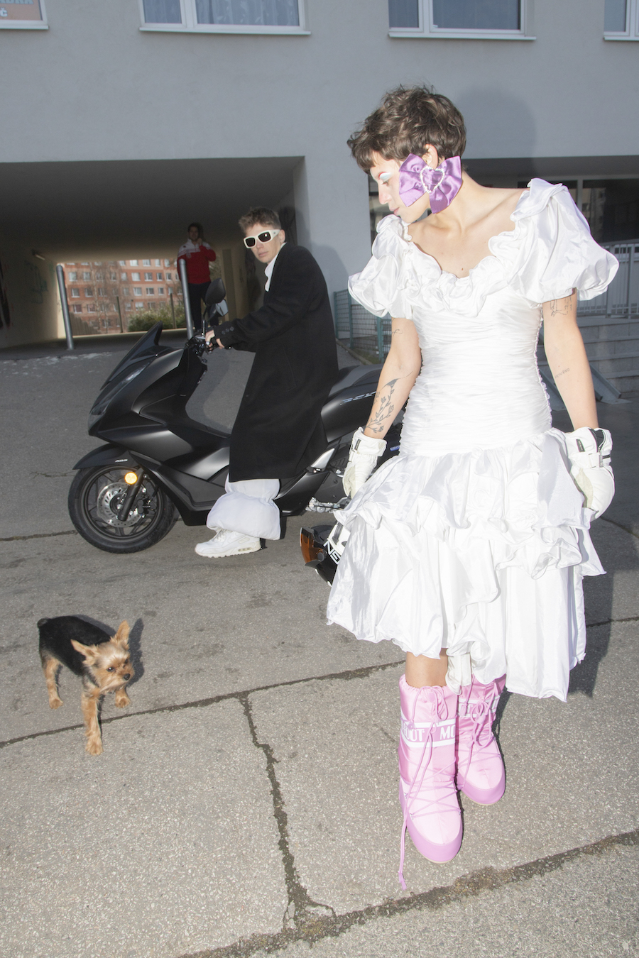“Sdíliště is the name created for this High Street Fashion Housing Estate (Sídliště) Editorial, and it means “a sharing place.” It focuses on the Czech Republic and my life there. Since I started elementary school, I was jealous of my best friend living in the housing estate, going to school there, and having friends/community next door. I spent some part of my childhood there with her and her friends. I have created my housing estate community for a day by this editorial. They laughed, and they danced. It was a lovely day.”
