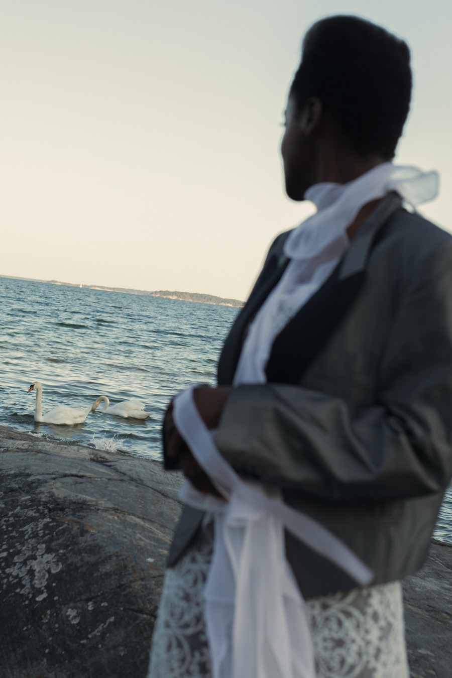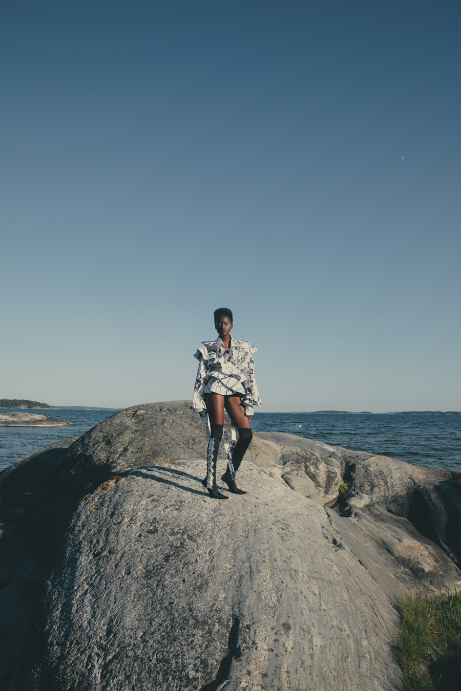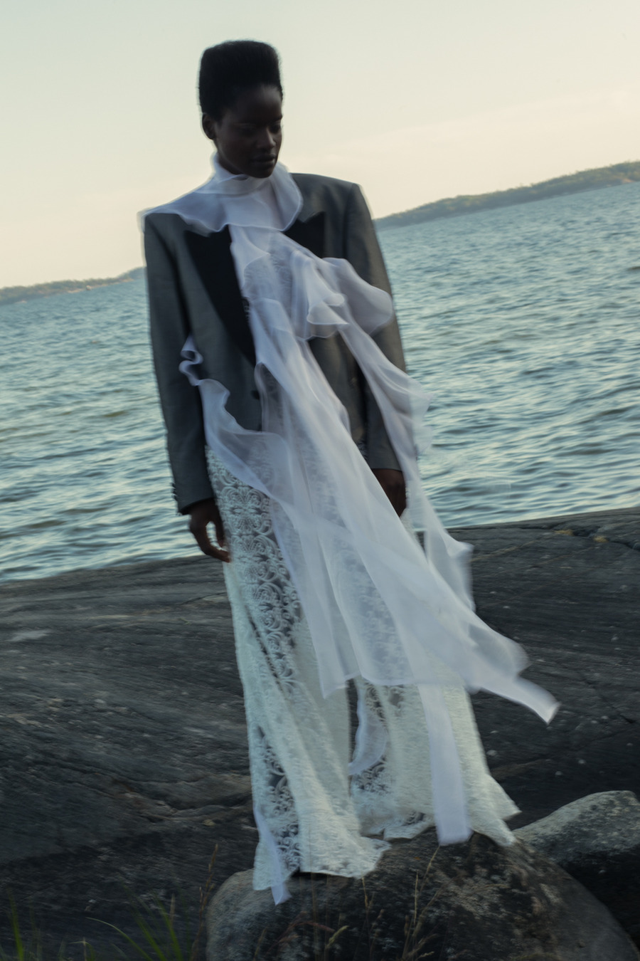 A KALTBLUT exclusive. Photography by Felicia Masalla. The model is Gabriella T. Makeup & Hair by Maurine Tugavune. Styling by Natalie Olenheim using Filippa K, Calvin Klein, Vintage YSL, Humana Second Hand, WOS, Swedish Stockings, Misc Sthlm, Yakusha, Shop Vintage Collection, Understatement, Elin Westling, Handsome Stockholm, and Viktoria Chan.