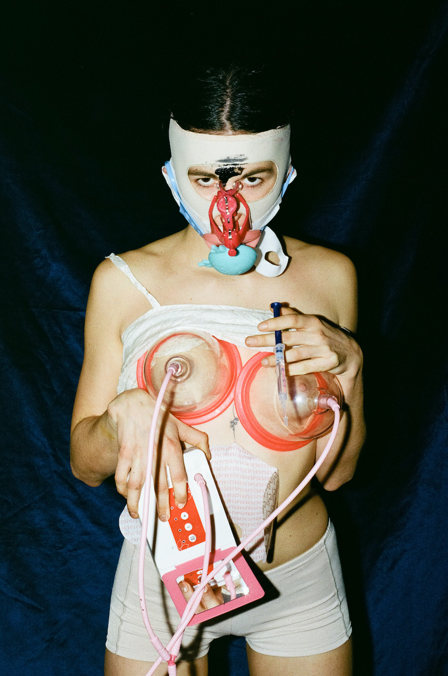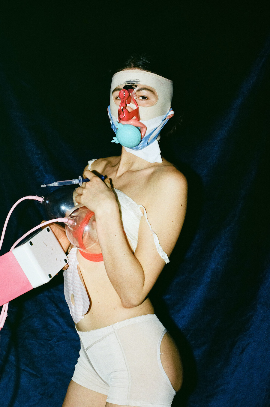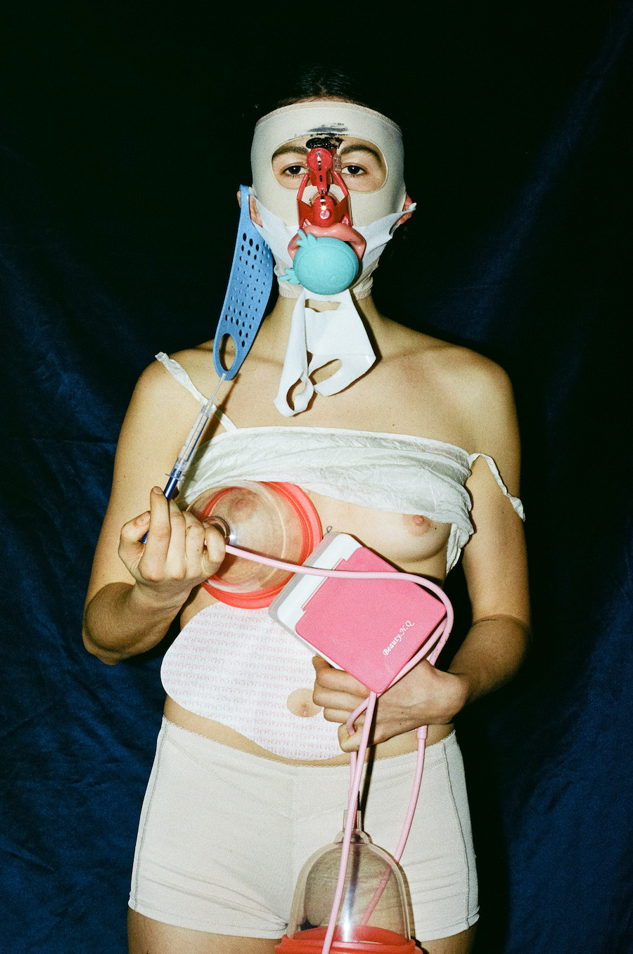 “Selbstzucht” deals in four chapters with the destructive forces of body mania. A delusion which is characterized by a perverted industrial creativity that seems inexhaustible. The images expose ways of chastising the body for a supposedly superior but unattainable ideal.