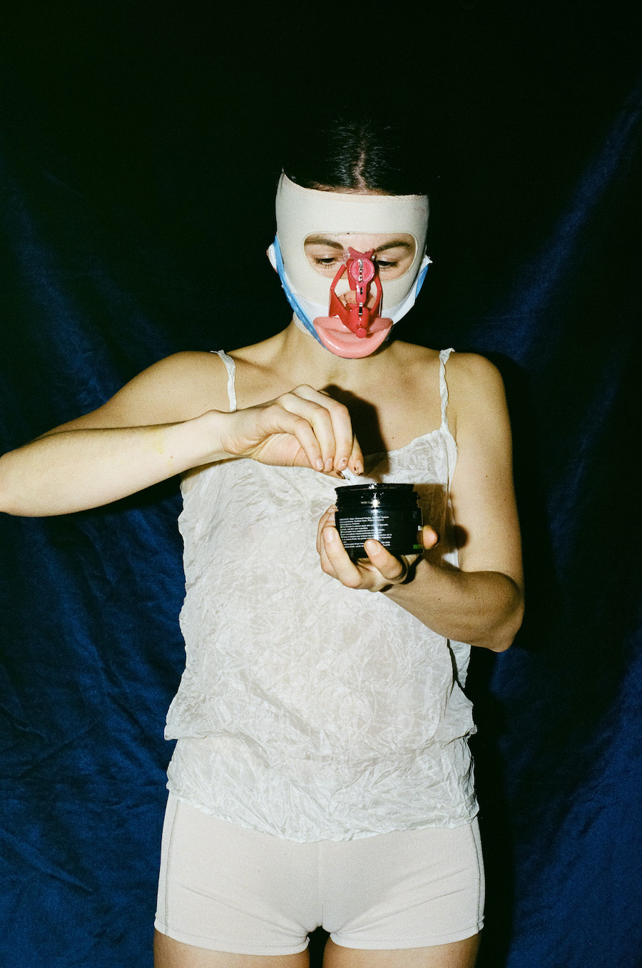 In her latest work “Selbstzucht”, which is mainly shot in analogue, she uses her own body in a series of self-portraits alongside staged scenes of her family and close friends. Model is Youka Snell.