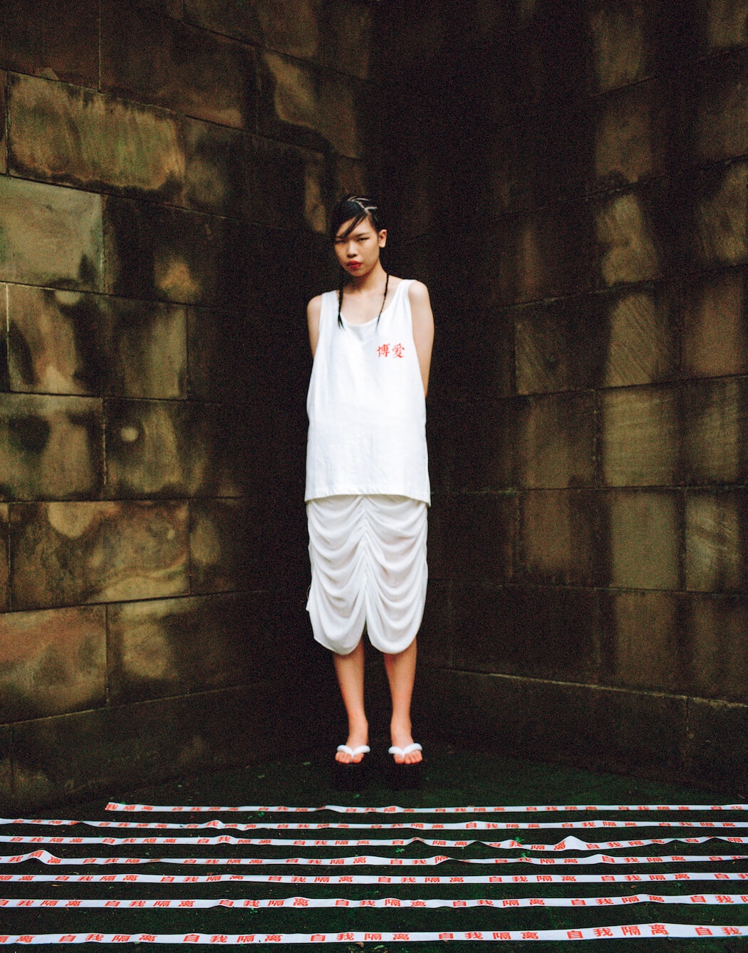 Inscription in Chinese on white tape “Self-isolation”.” says Adrian Xuan