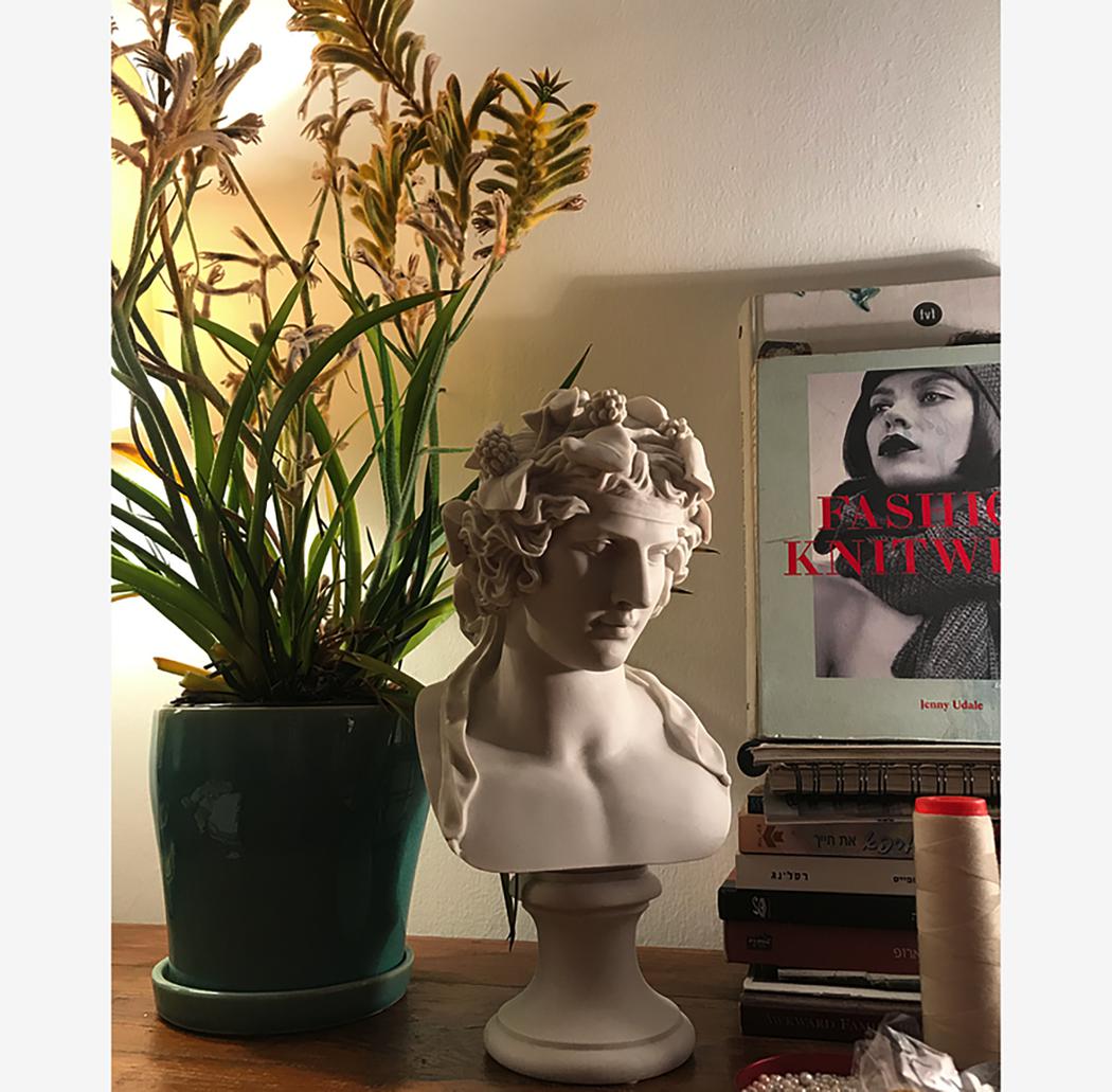 Ravid Haken is a fashion designer and a textile artist, creating clothing using knitting, printing, and embroidery techniques. His creations are objects inspired by nature and its marvellous pallets, and their encounter with the human body. The work is very organic whether it translates to a knitted or a crocheted piece. Ravid Haken made this collection of self-portraits, textile pieces and gathered them into an album “Self-loving while staying home”. It deals with self-care and self-love, staying busy without physical interaction during COVID-19 isolating time.