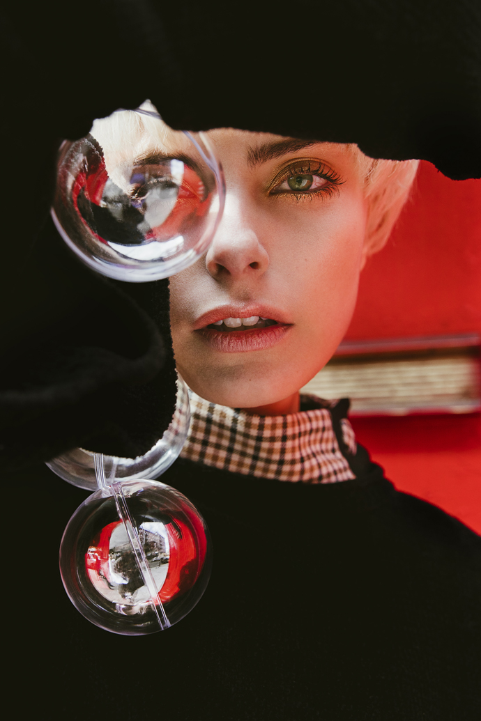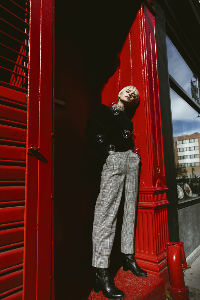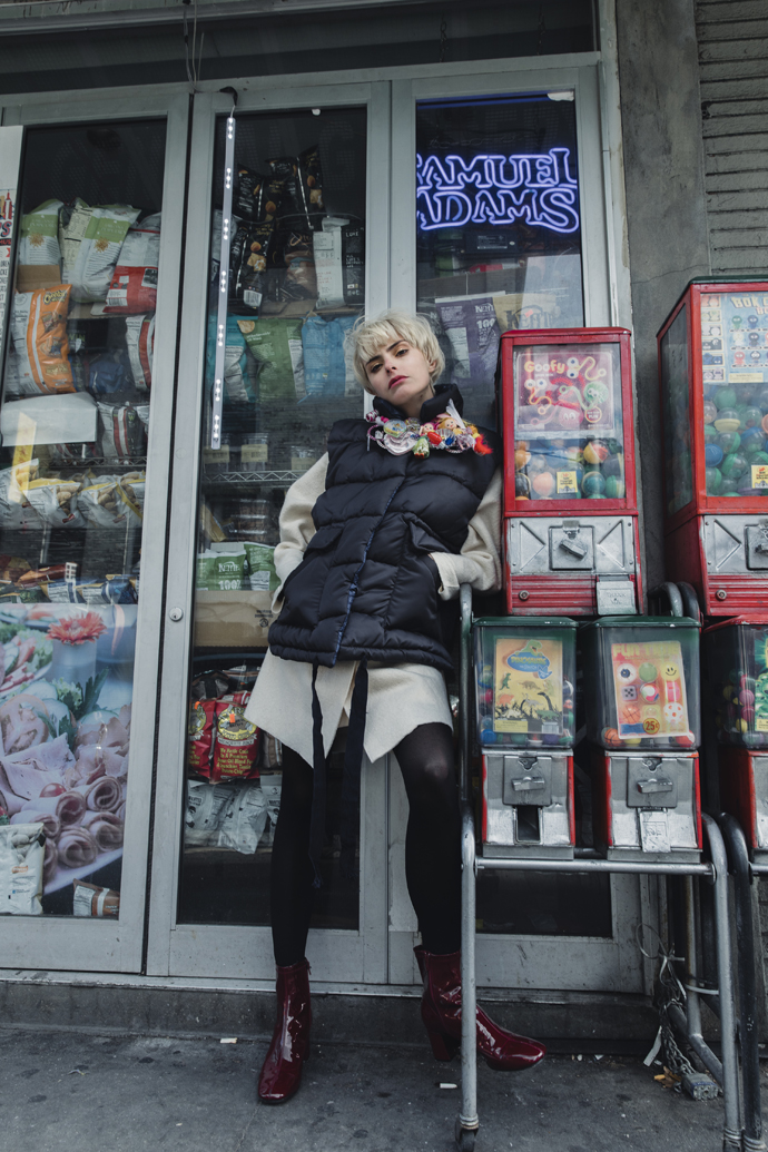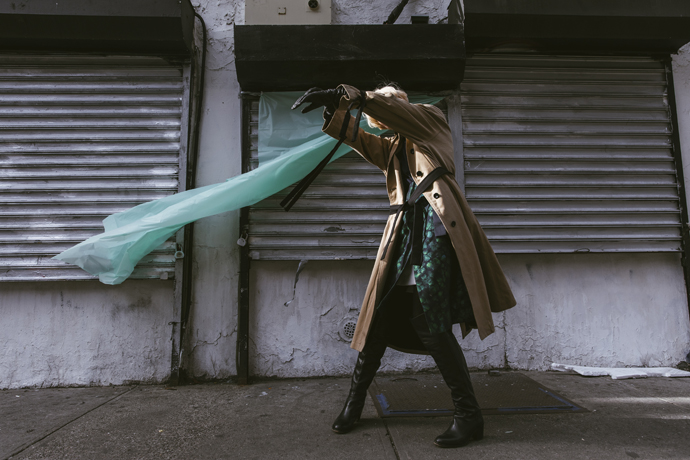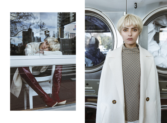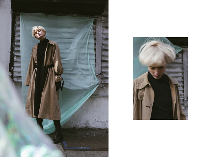 A KALTBLUT exclusive womenswear editorial. Photography by Zandra Högberg and Rujie Wang. The two artists met in art school, New York City. With their different backgrounds, they find inspiration from Chinese and Swedish culture. Model is Stefani Medeiros, signed at Industry Models NYC. Make up by Maria Zavala. Styling by Donglin Huang. Fashion by Acne Studios, Zara, Topshop, Rujie Wang.