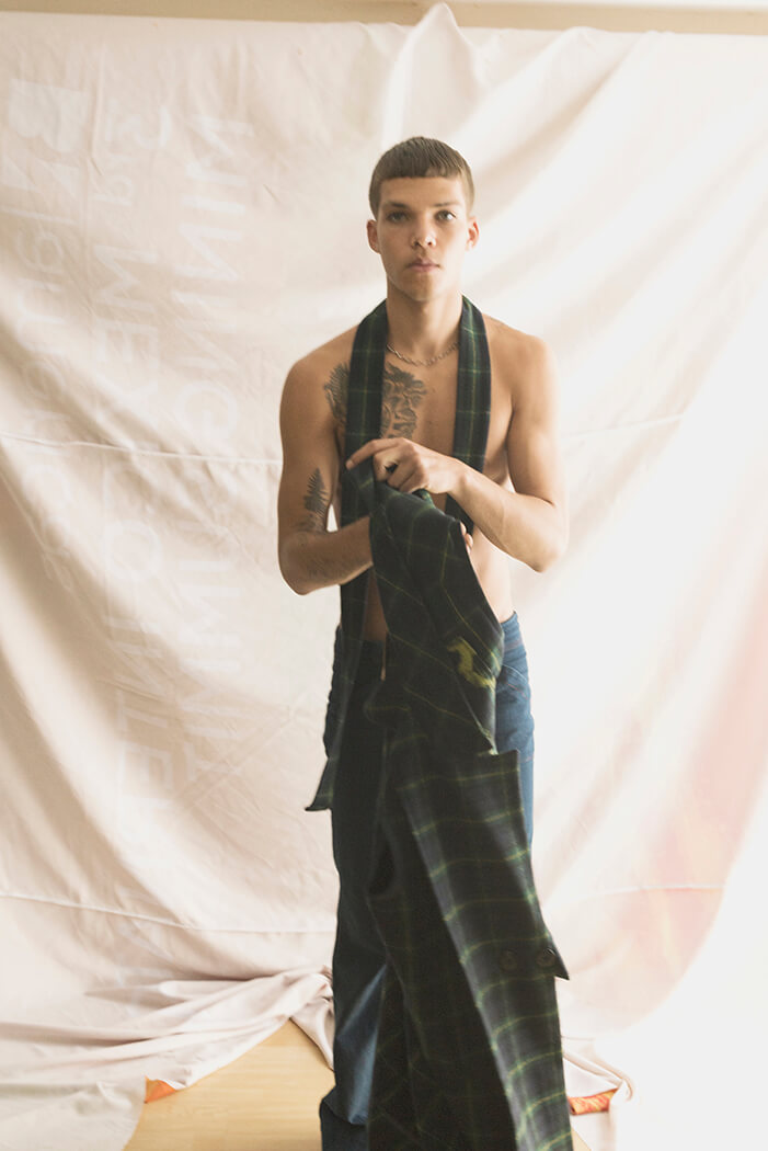 A KALTBLUT exclusive menswear editorial. Photographer Jose Toscano captured male model Tajen Ross from Bang Management. Styled by Pete Cross using Acne Studios, Peter Wasp, Mango, H&M, Ermenegildo Zegna, Wrangler, Zara.