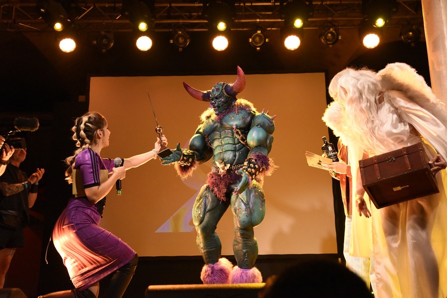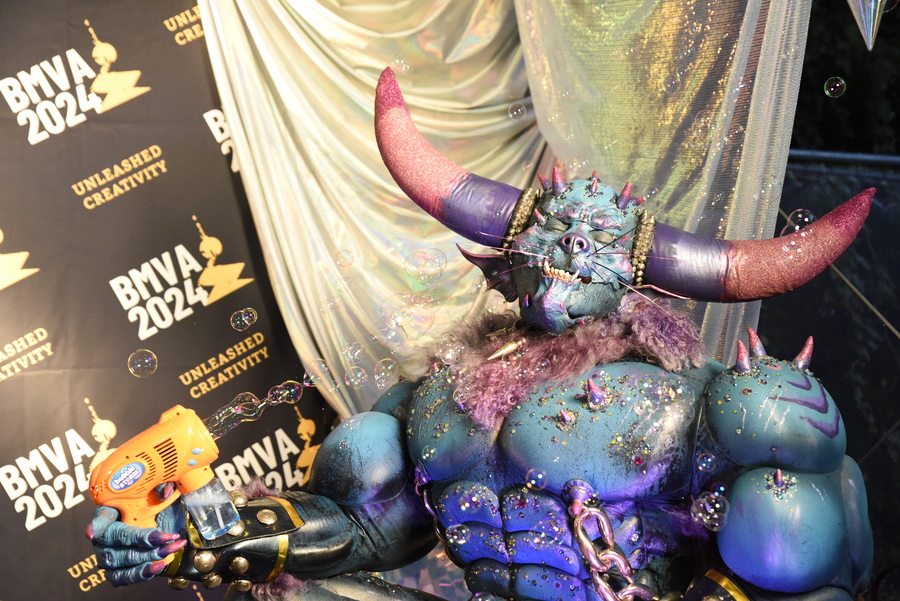 Masstor, a transdimensional supermonster musician and artist based in LA, is best described as a monstrous blue beast with massive pink horns, bustling muscles, chain-pierced nipples, and an insatiable appetite for fun. Appearing in full outfit, Masstor became the centre of attention, with the crowd flocking to get photos.