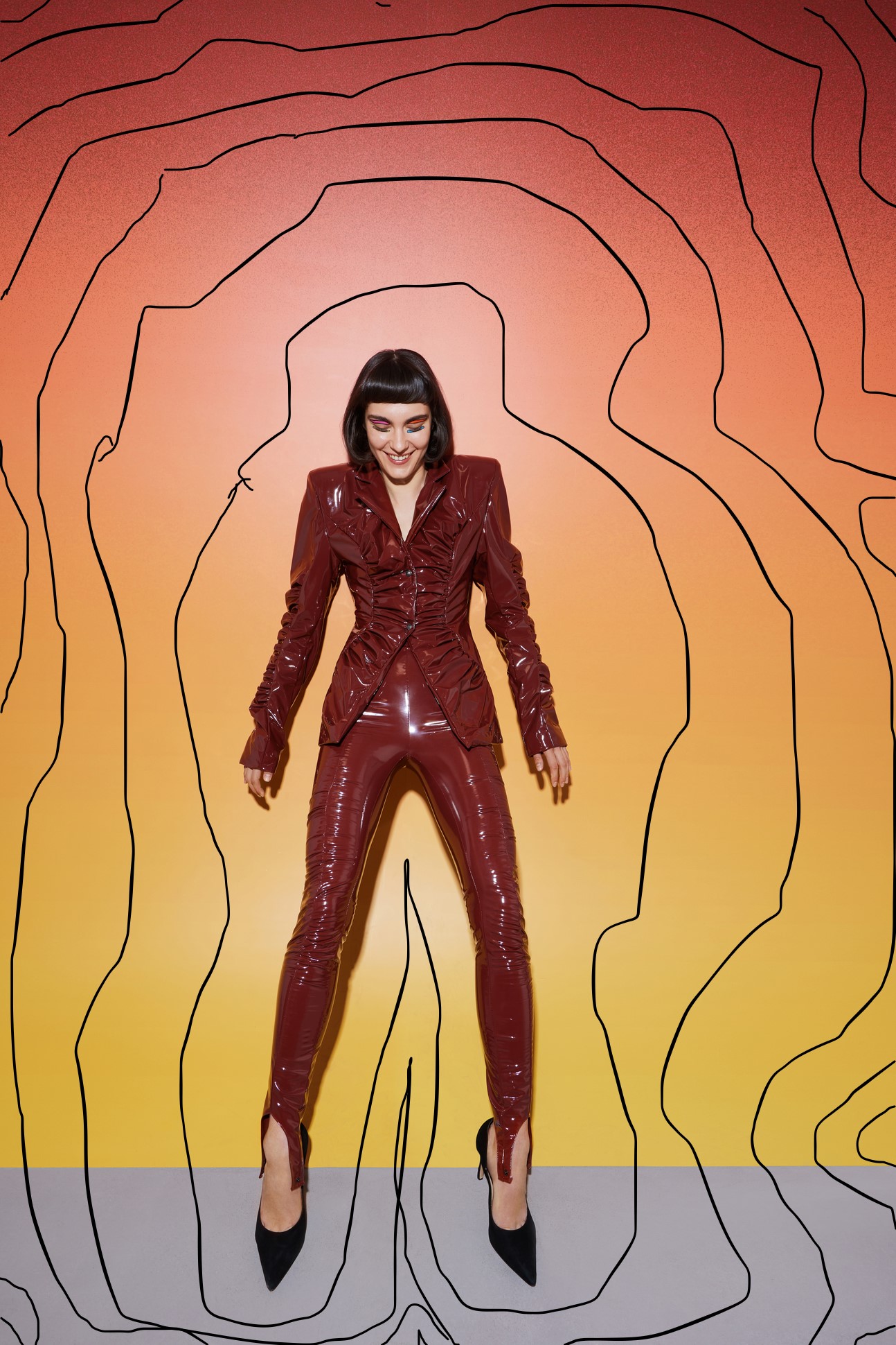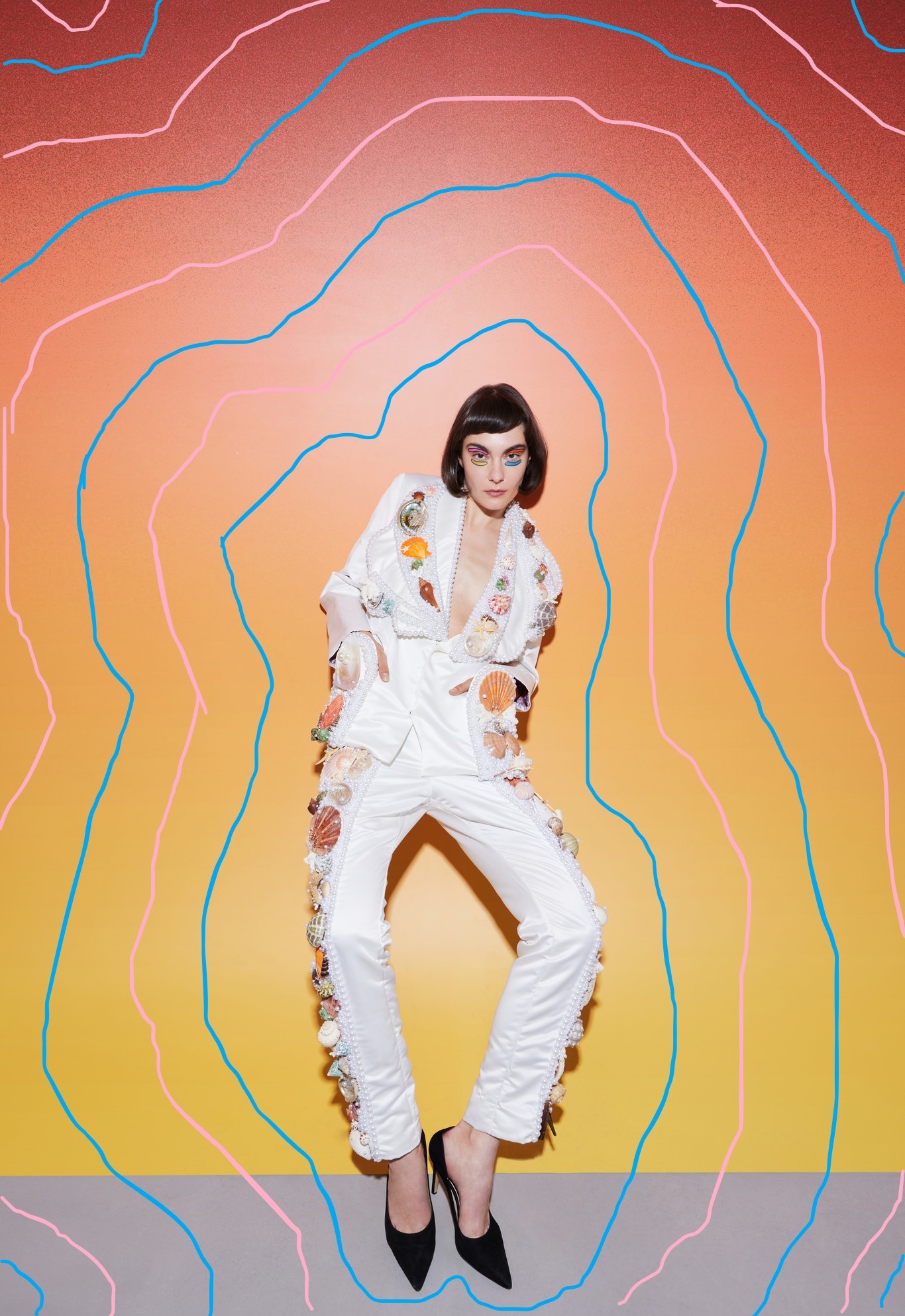 Jerca wears Baseball Cap by Ana Jelinič, Suit by Tothbori available at Pentlja Concept Store