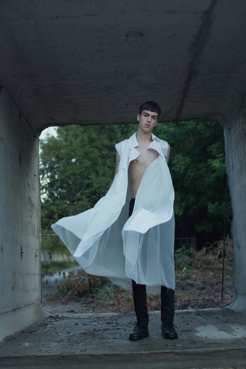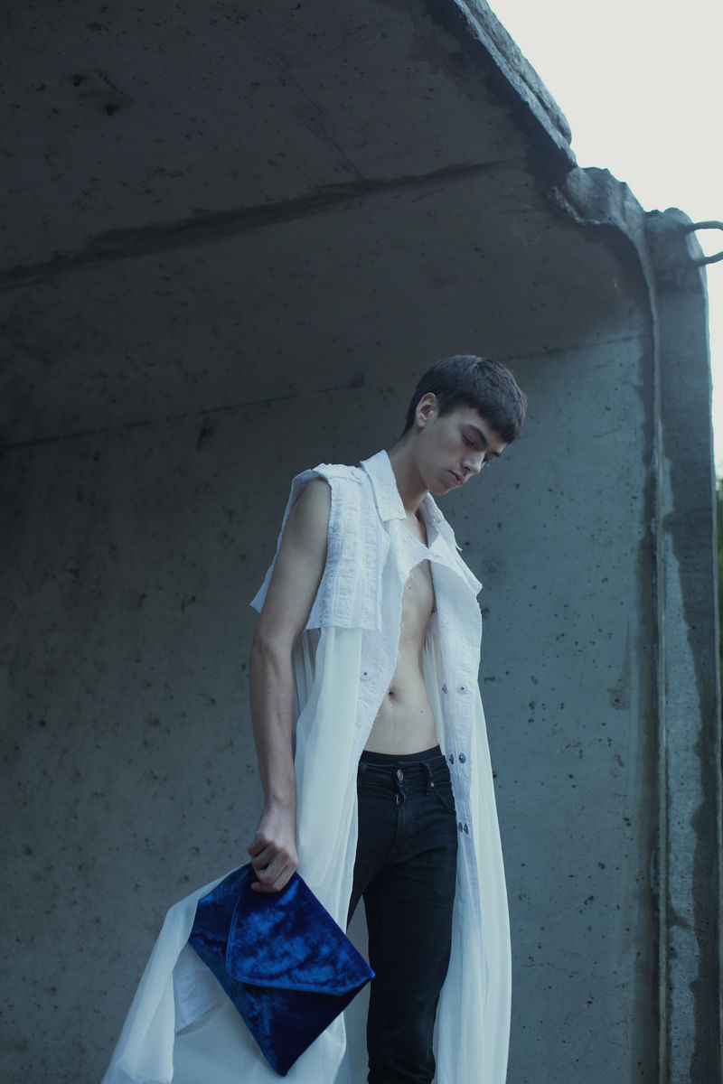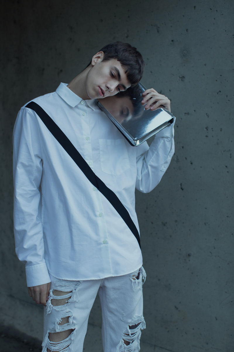 A KALTBLUT exclusive menswear editorial. Photography by Anna Grodskaya and Danila Romankov. Model is Mark at Fashion One Model Management. Styling by Daria Erst. Art direction by Maxim Vogel.
