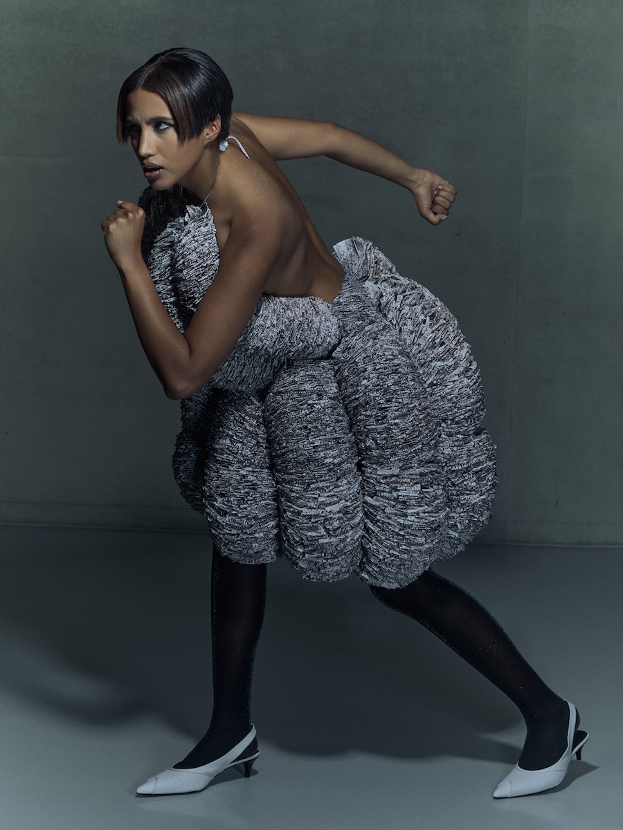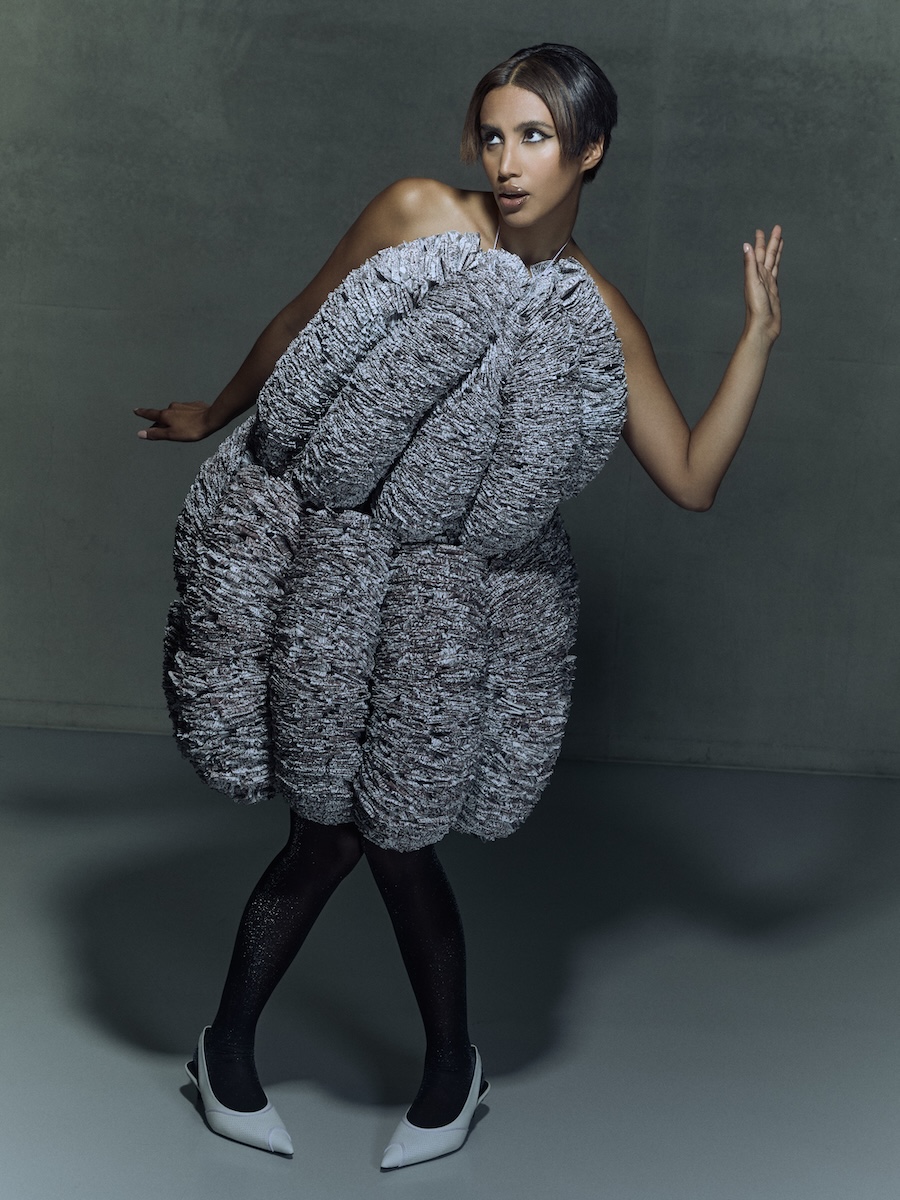 Introducing Noam Welz, a fashion designer based in Düsseldorf who views clothing not as a functional necessity, but as an artistic medium. Photography by Lasse Rotthoff. The model is Valentina Faulenbach. Hair & Make Up by Katharina Ametsin. For Noam Welz, fashion is a physical form of commentary, a surface for emotion, provocation, and social reflection. The piece “Shape of consumption” embodies this philosophy: a wearable artwork made from thousands of real receipts, turning consumer culture into something visible and tangible.