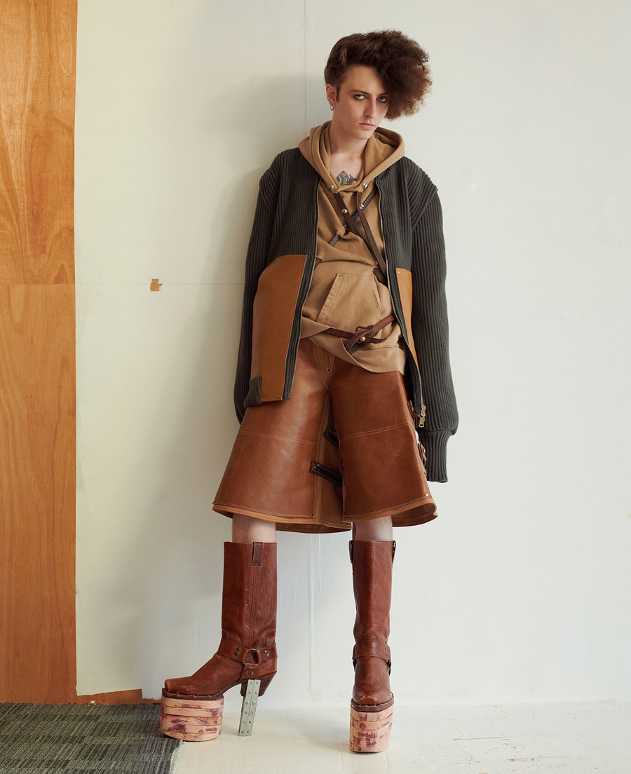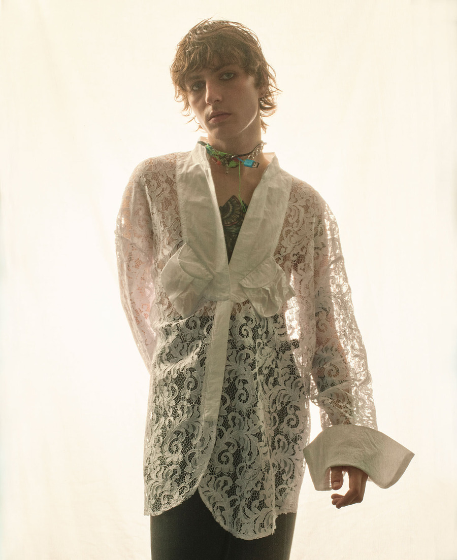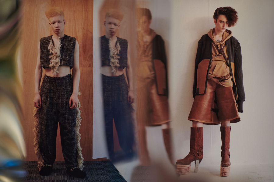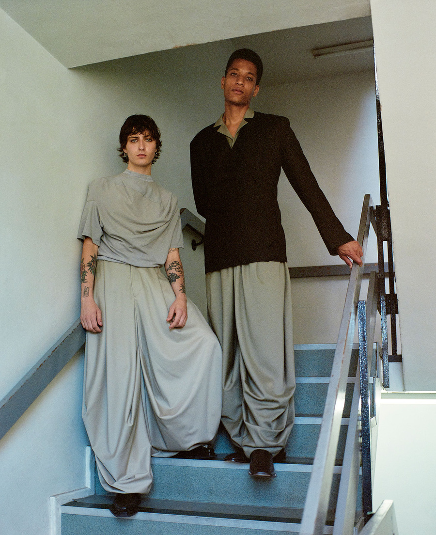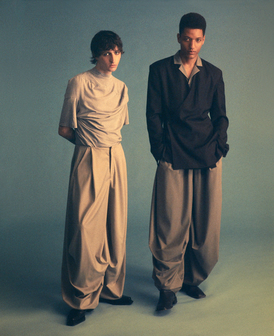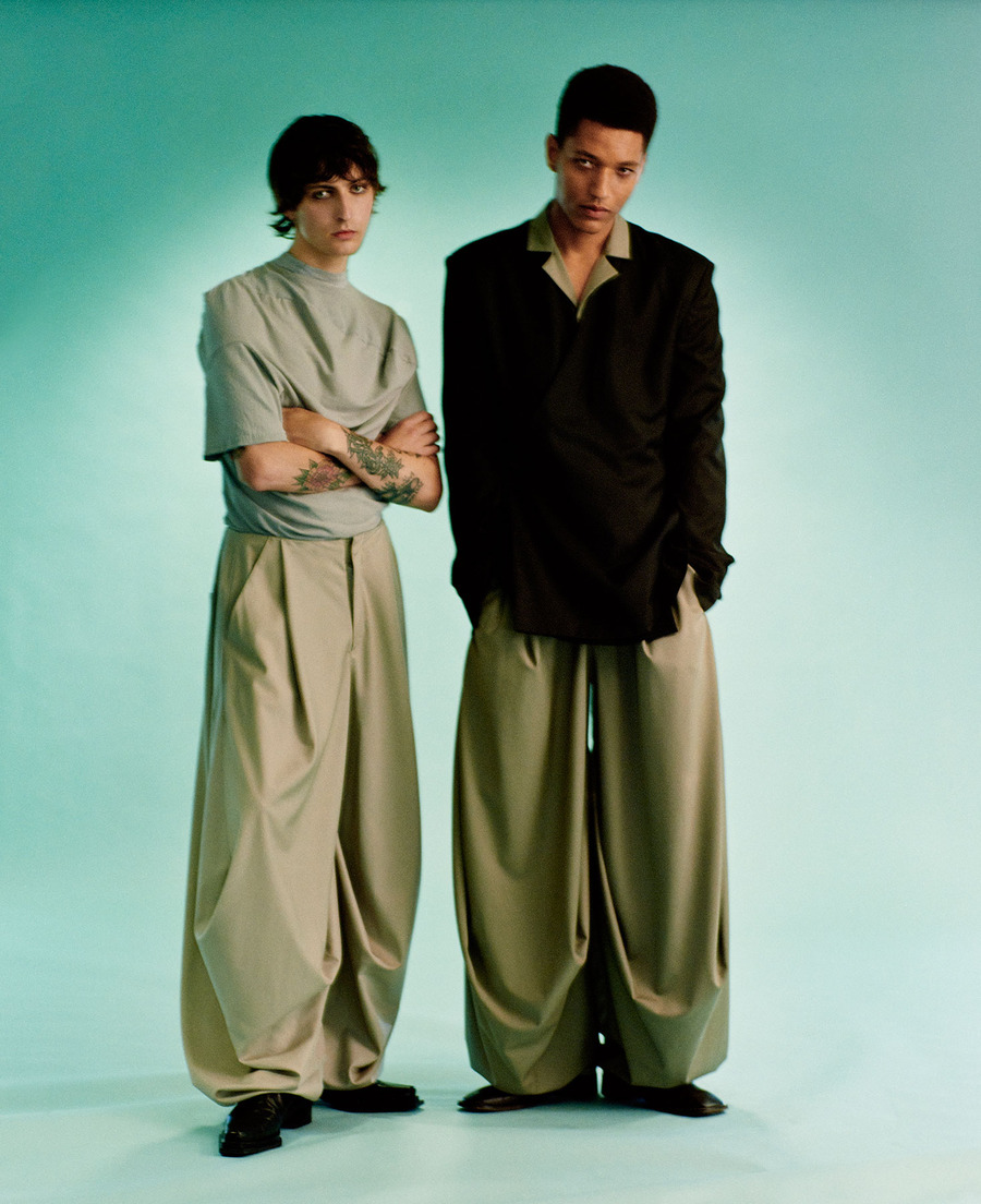 “Shape-Shifters explores the new narrative in menswear showcasing S/S24 collections alongside emerging British-based menswear brands that produce seasonless collections. All designers are UK-based. I am a London-based stylist and wholesale director originally from Melbourne, Australia. Andrew Gough is a London-based British photographer.”