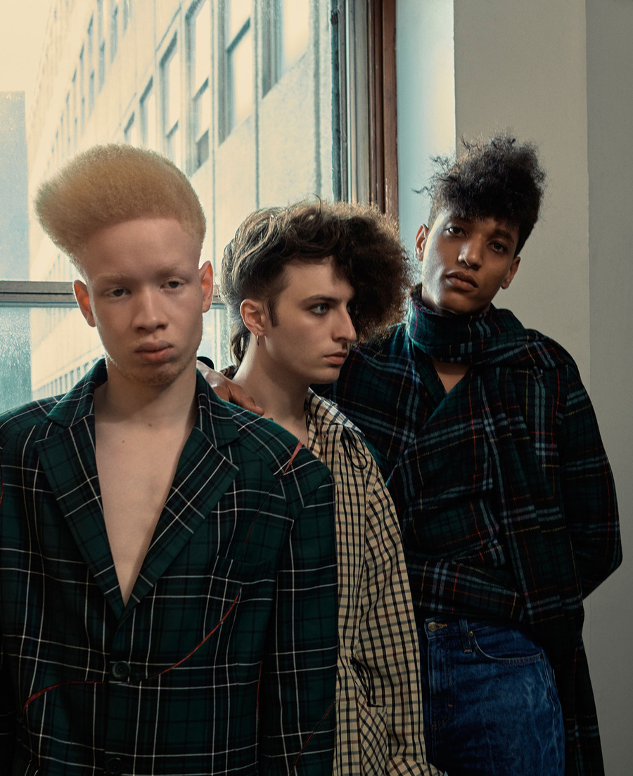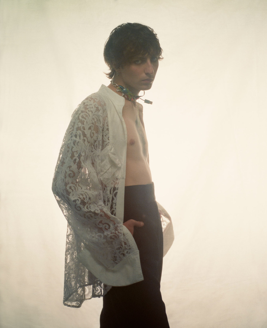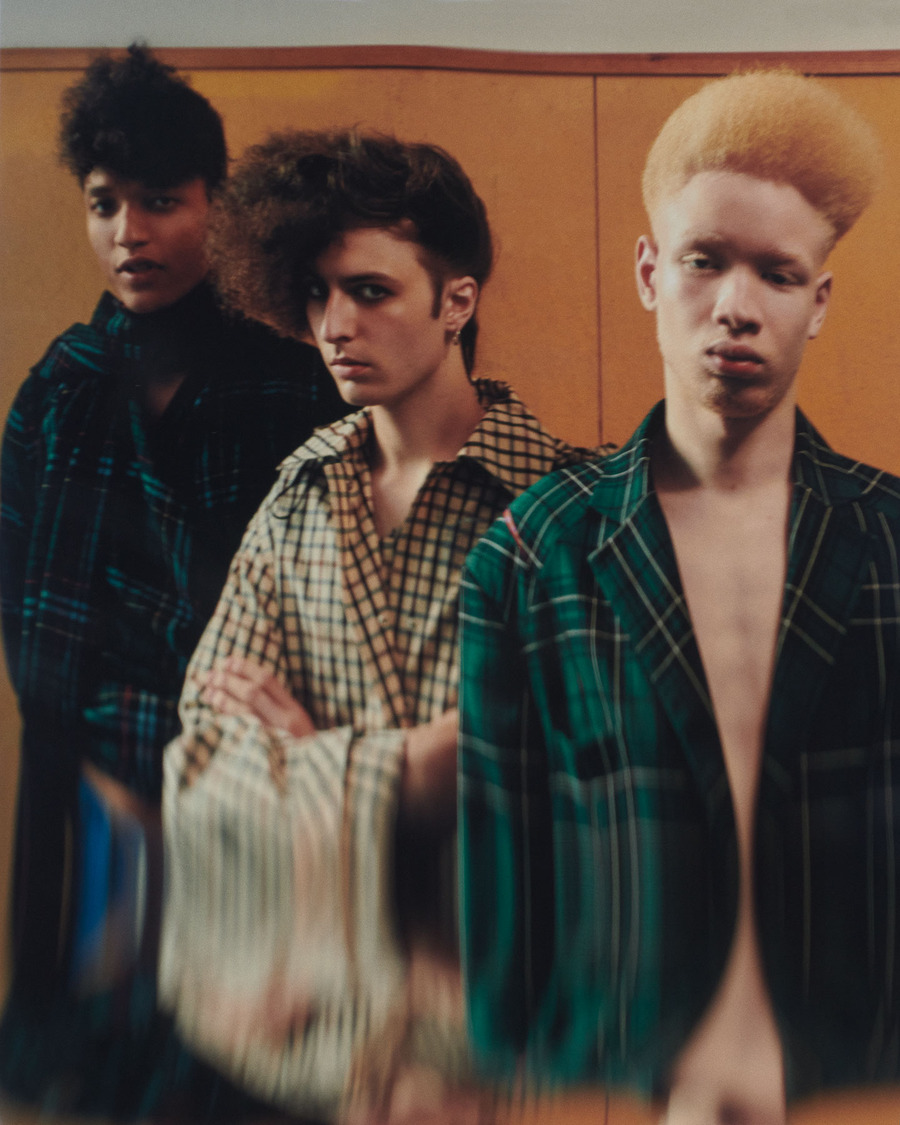 A KALTBLUT exclusive. Photography by Andrew Gough. The models are Peter Finn, Danny Gibbs and Camron W. Styling by Lucia Heath. Make up by Phoebe Taylor. Hair by Christopher Gatt. Brands used are Wales Bonner, Alec Bizby, Leo Prothmann, Riac Oseph, Crocs, Jekeun, Lee, Rhyzem, Denzil Patrick, Katy Mason, Helen Kirkum, Steve O Smith.
