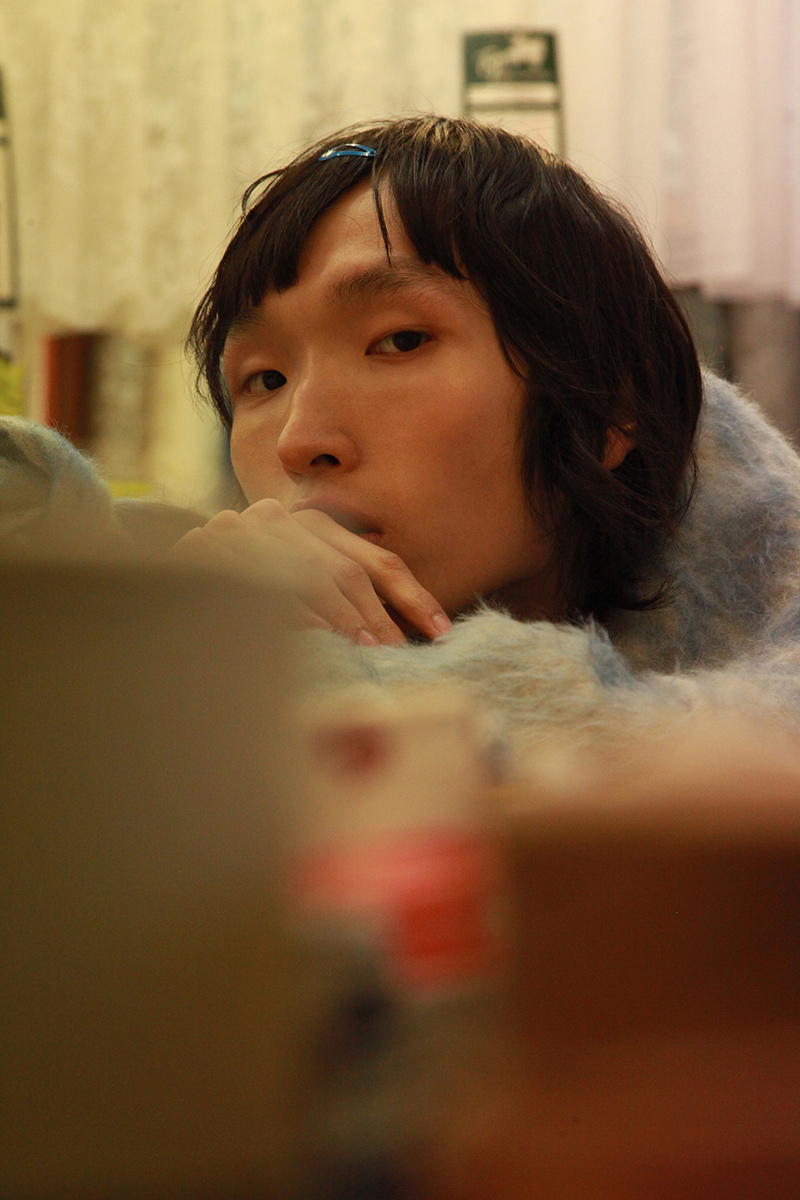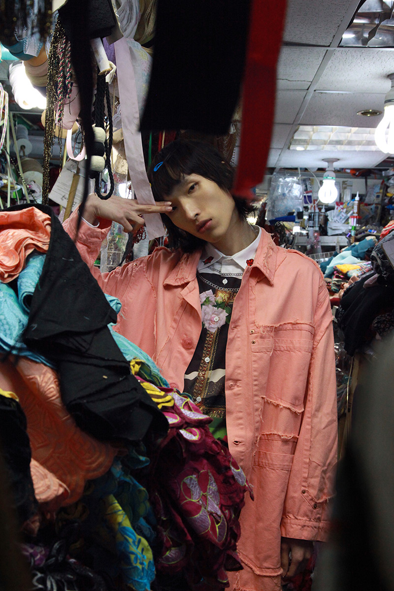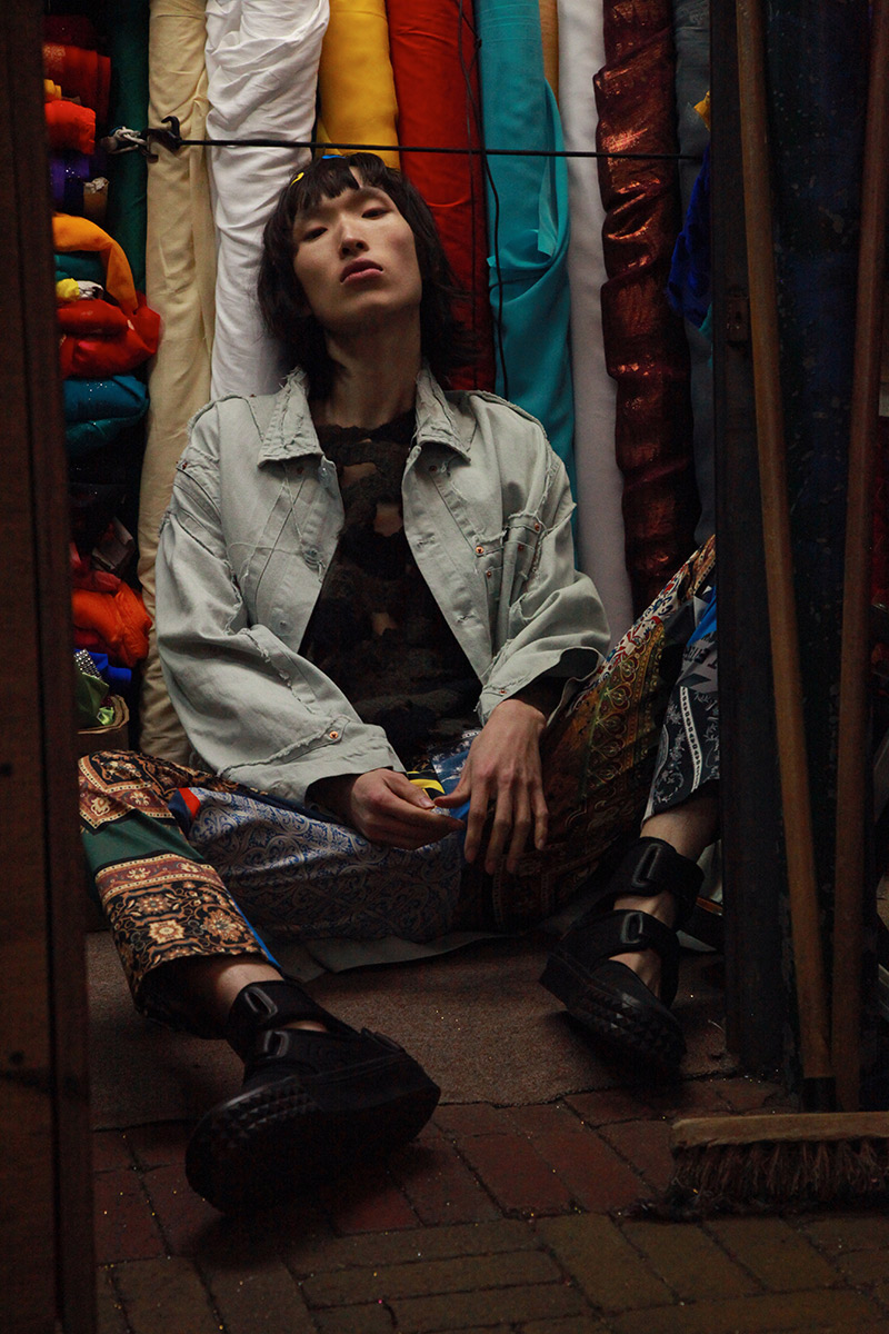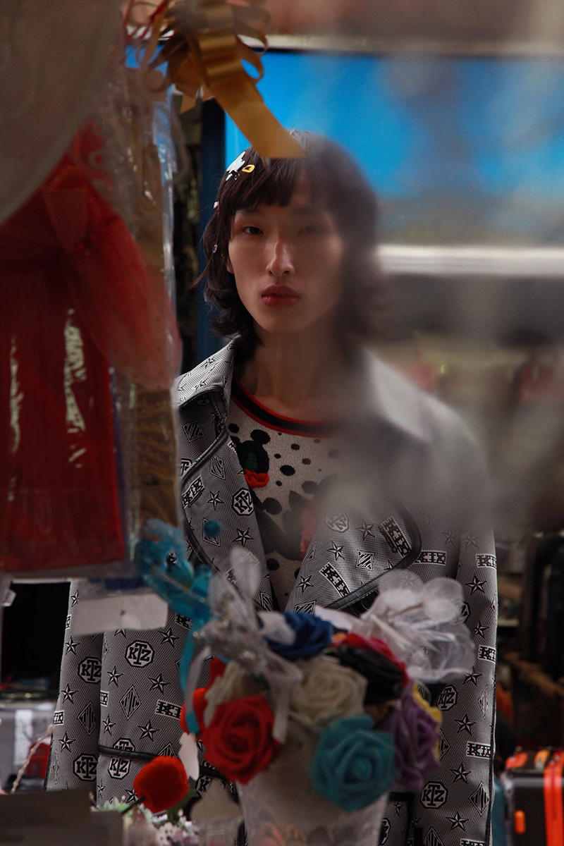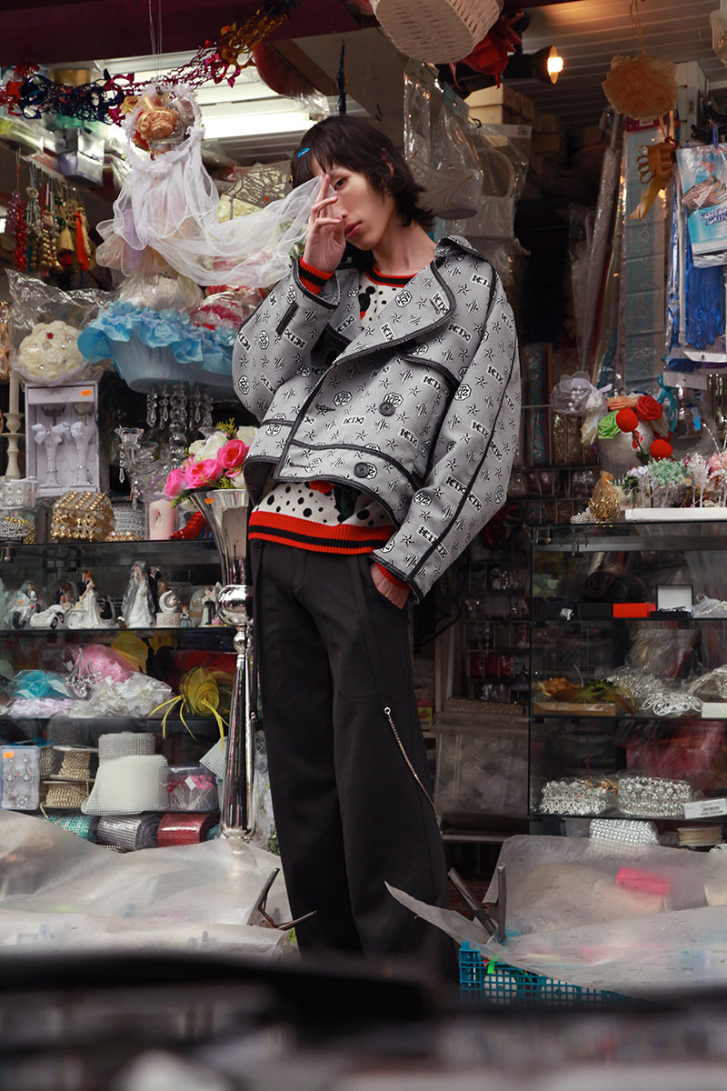 Hao Liu wears KA WA KEY jacket, NA DI STUDIO trousers and KTZ shoes.