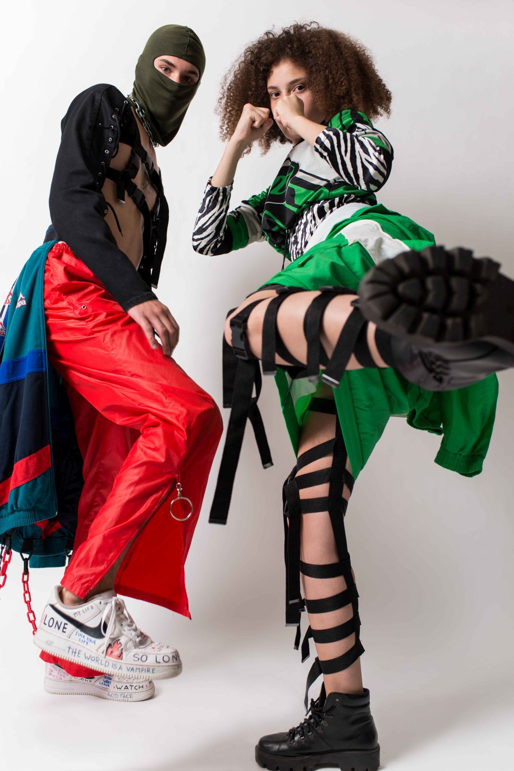 A KALTBLUT exclusive editorial introduing: tHERAPY recycle and exorcise. A sustainable alternative and genderless fashion project. The story is named SHOCK THERAPY. Climate change, mass consumption, toxic gases emission, global warming, carbon bubble, forests, species and glaciers extinction, fracking, sea level rise, fake news… This Therapy Recycle and Exorcise’s editorial is inspired by some of Naomi Klein’s concepts about the consequences of fierce capitalism, presented on her latest book “NO is not enough”. Photograohy by Luis Simes. Styling by Paula Aguirre.