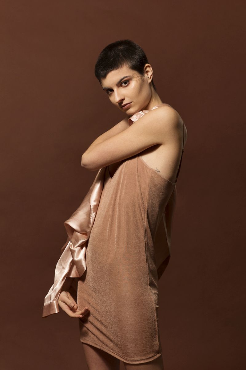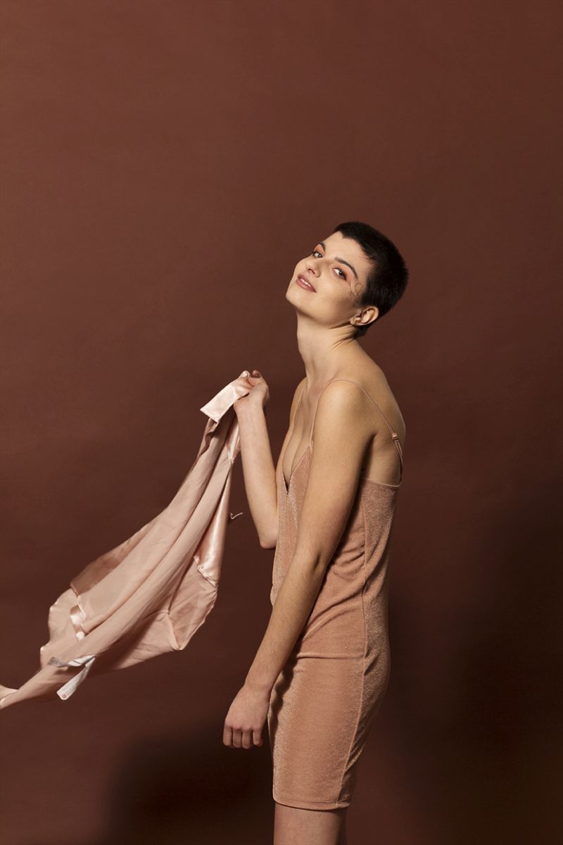 A KALTBLUT exclusive womenswear editorial. Photography by Laura Knipsael. Model is Thais de Boever signed at The Agent. Styling by Marie Lennertz. Make-up by Lena Dobbels. This fashion series is about a tough girl, showing her sensitive side. She tries to show her senses by figurally taking of her skin… and showing her inner self. The colors, the fabrics and atmosphere are chosen on purpose to evoke these feelings. Laura Knipsael is a fashion and portrait photographer with love for minimalistic cityscapes.