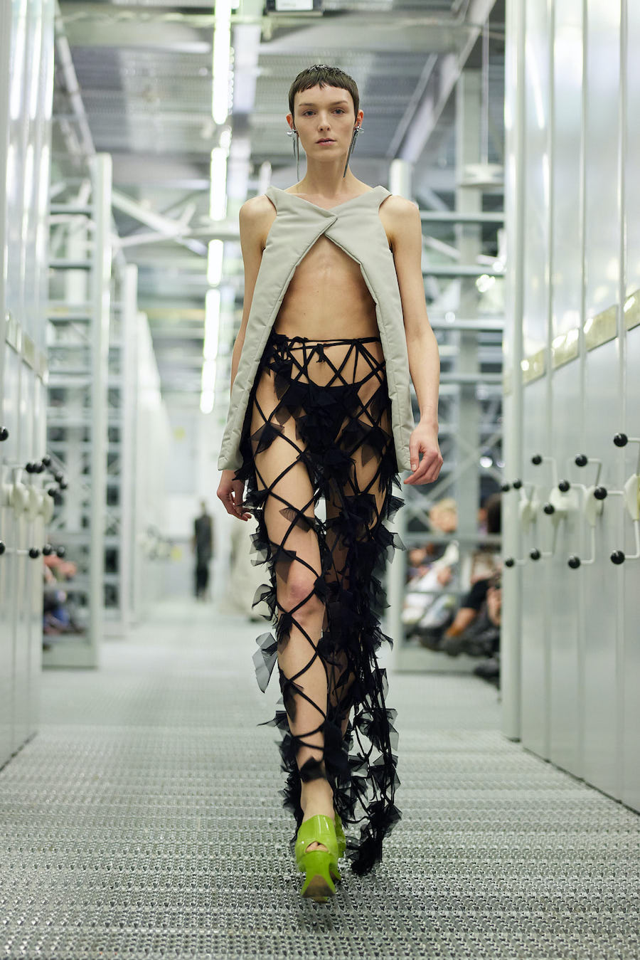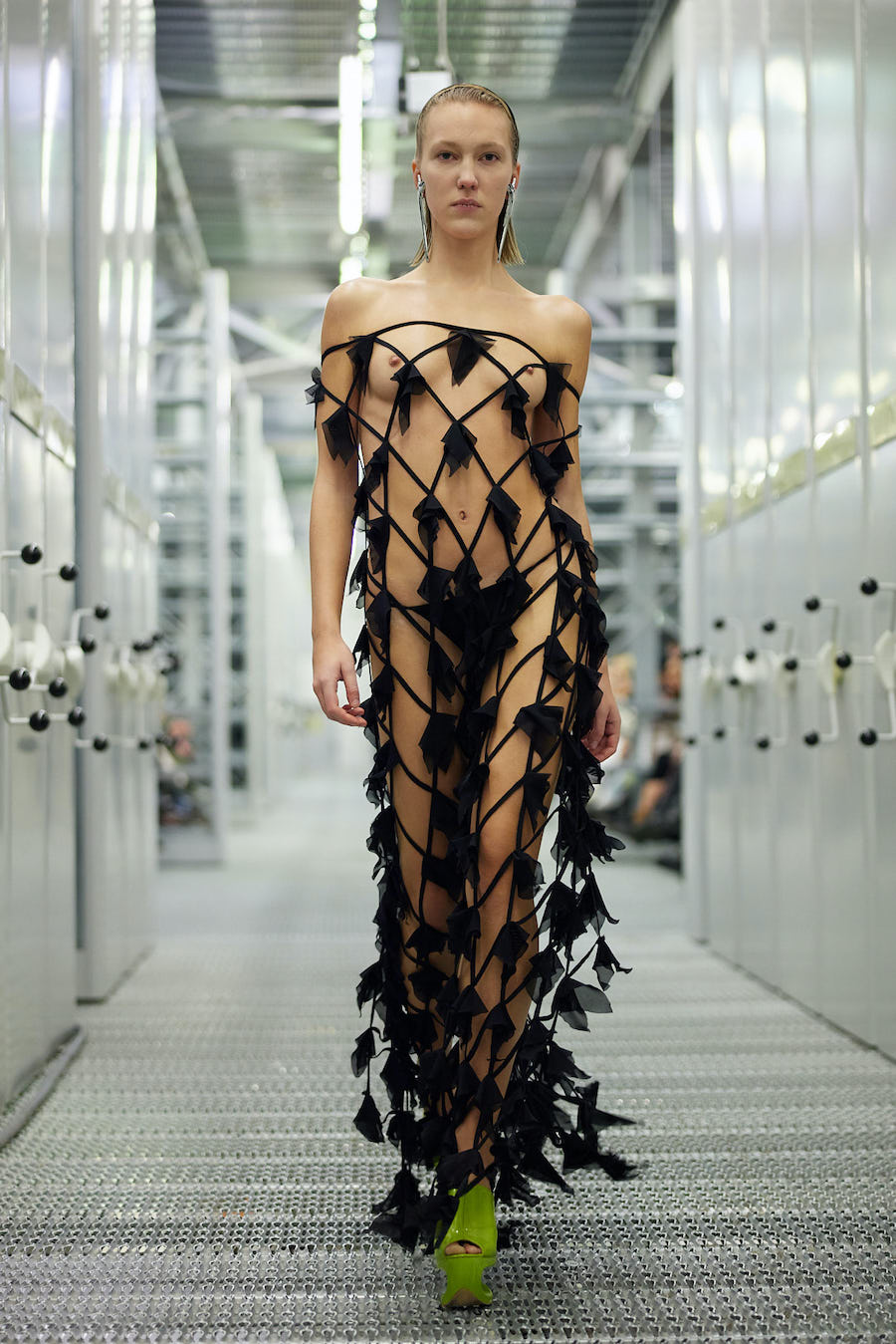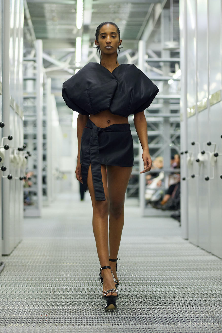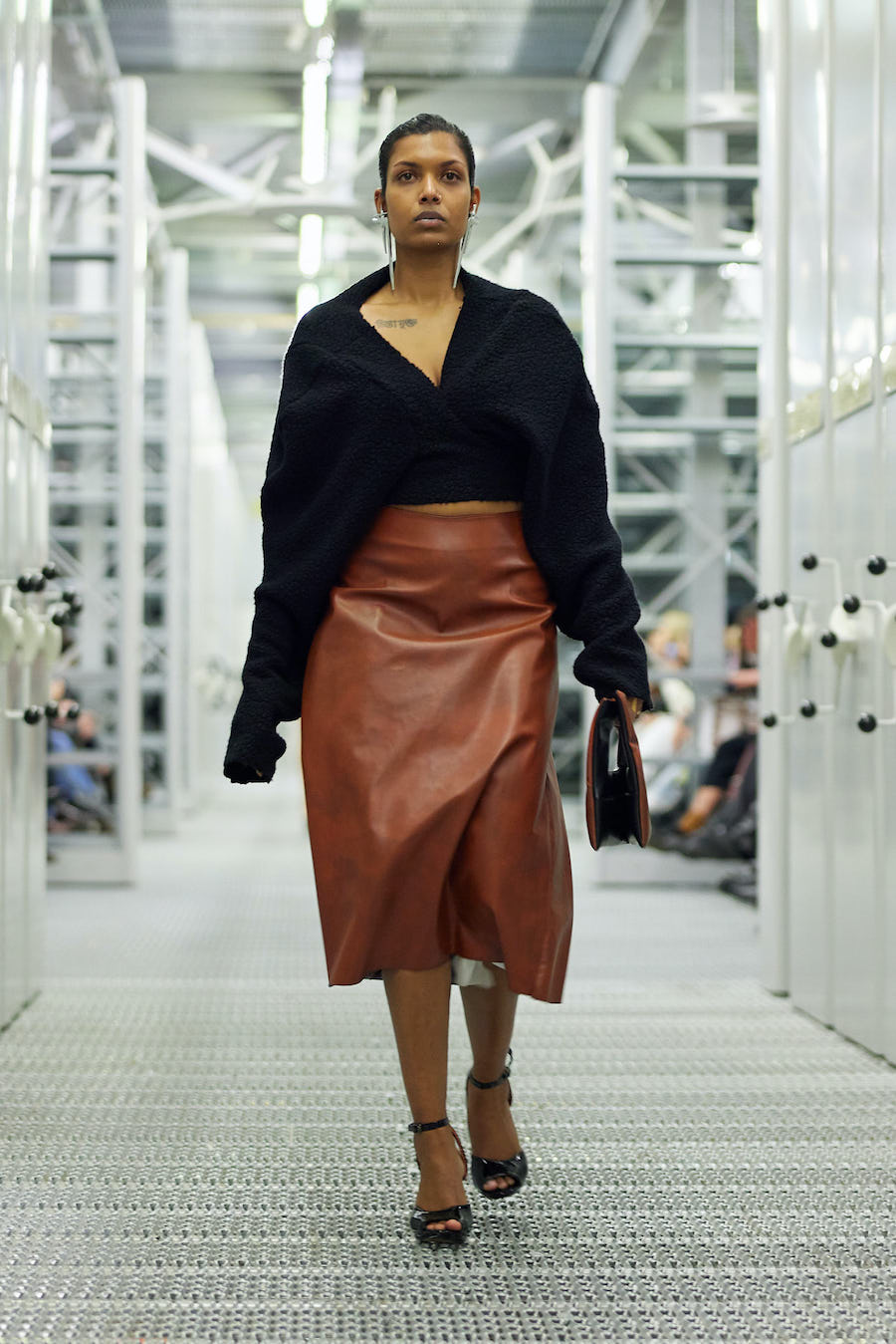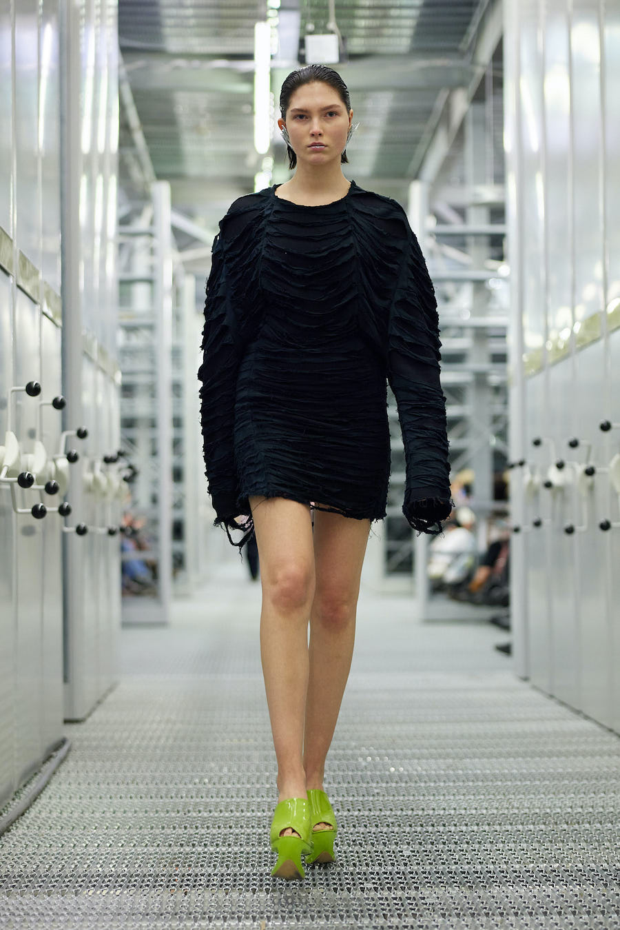 Fascinated by unusual textiles and silhouettes, the designer has always found “beauty in the whimsical and the strange.” This season, she found inspiration in Nordic myths and ancient folktales, which meet hardcore futurism for Fall/Winter 2023. Exploring opposing forces, she explores the dynamics of minimalism and maximalism. She lets deconstructed elements meet bold, unique shapes and harmonizes opposites. Alongside dresses, tops and lots of knits, partly hybrid structures and a range of different textures contrast with smooth silhouettes. In addition, bright colours are combined with austere shawl black.