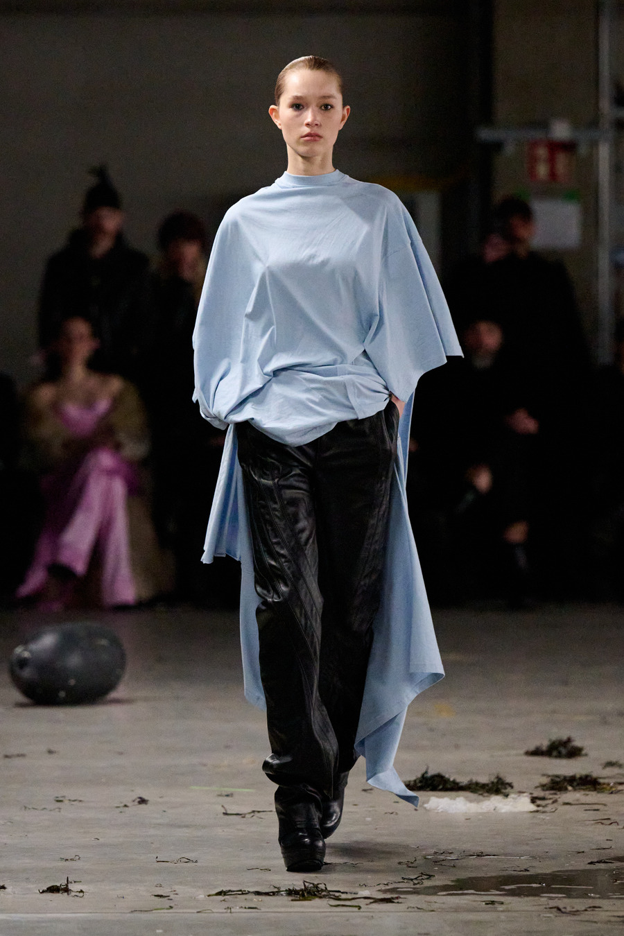 Berlin Fashion Week! Sia Arnika’s Fall/Winter 2025/26 collection presents a nuanced exploration of memory and allure, themed around the concept of the Harbor Bitch—a protagonist who navigates the boundary between myth and reality. The collection draws inspiration from a memory of a female factory worker from the designer’s native island of Mors.