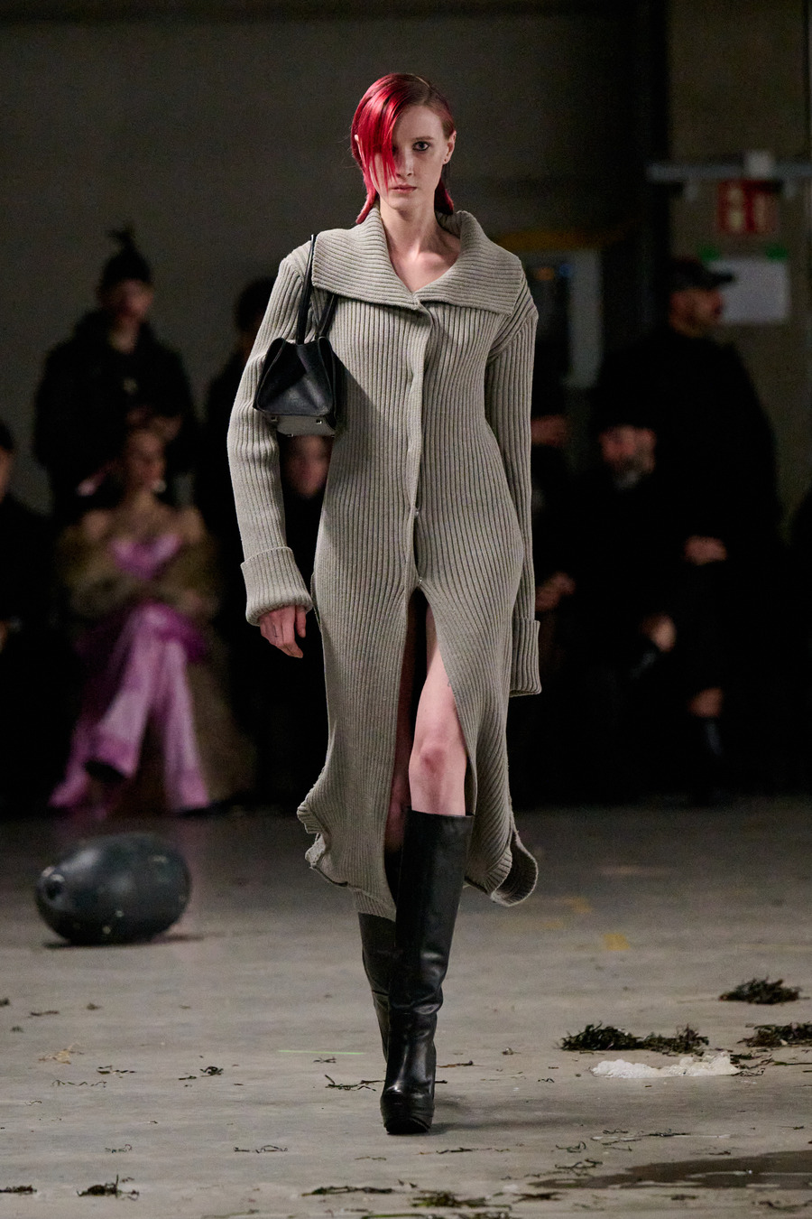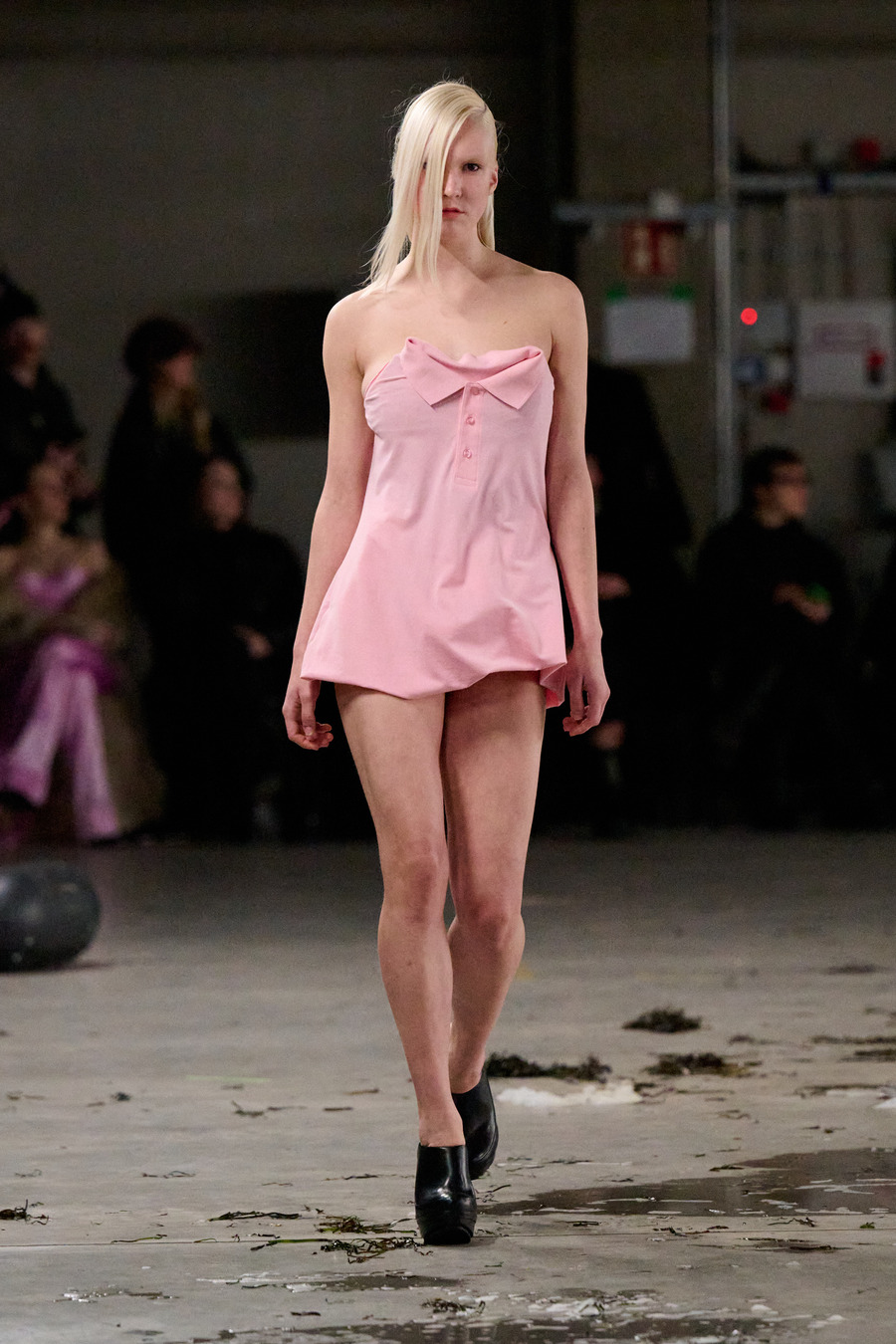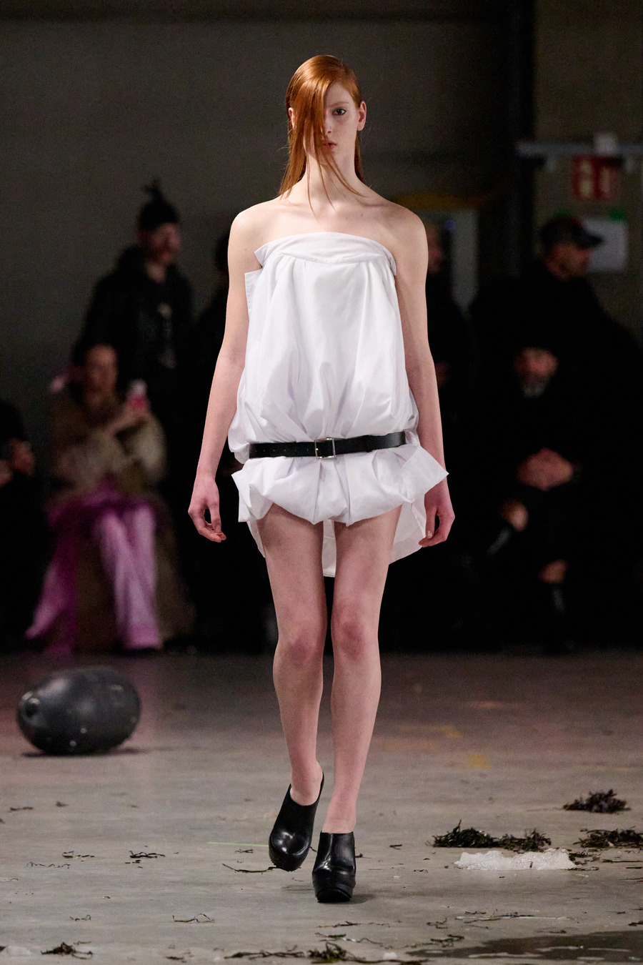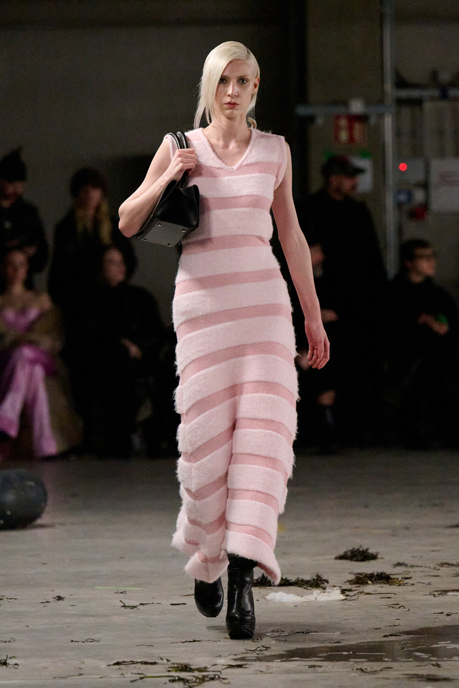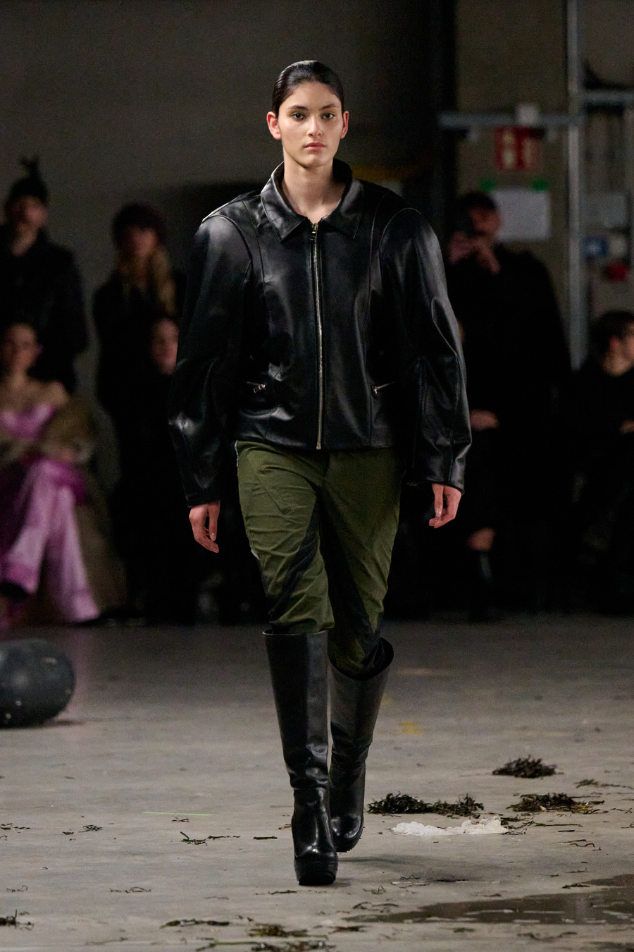 Berlin Fashion Week! Sia Arnika’s Fall/Winter 2025/26 collection presents a nuanced exploration of memory and allure, themed around the concept of the Harbor Bitch—a protagonist who navigates the boundary between myth and reality. The collection draws inspiration from a memory of a female factory worker from the designer’s native island of Mors.