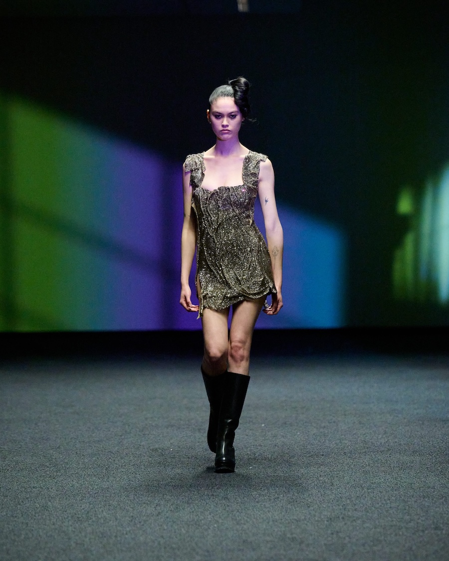 Key partnerships support the AW26 presentation, including Kylie Cosmetics as the exclusive beauty partner, furthering their creative collaboration with SIA ARNIKA. The collection incorporates TENCEL™ Lyocell fibres, produced via a sustainable closed-loop process. Additionally, Swarovski supplied crystal mesh and accessories, known for their quality and craftsmanship, celebrating individuality and personal expression.