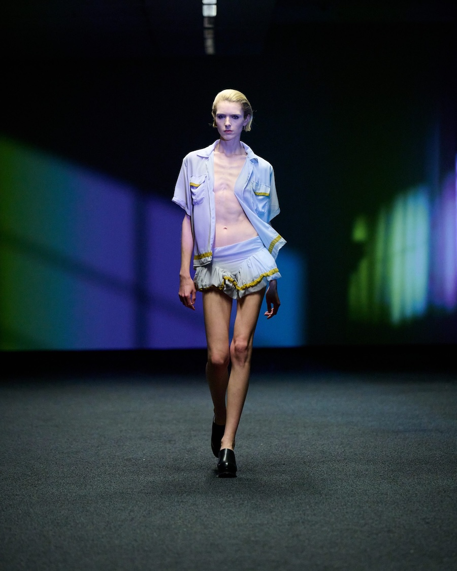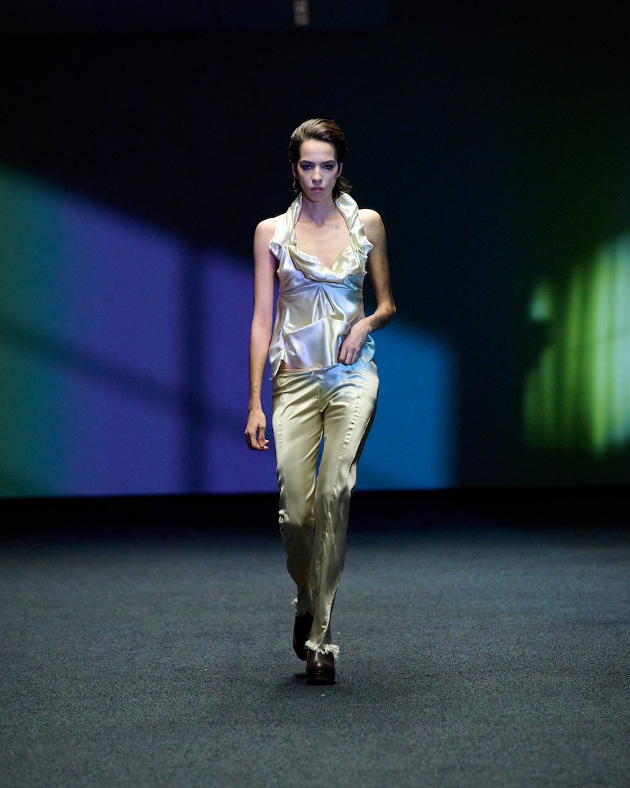 SIA ARNIKA introduces OVERTIME, a collection for Fall/Winter 2026, revealed during Berlin Fashion Week. This collection explores the hours following work, where the rigid structures of day-to-day life begin to loosen, transforming the mundane into something vibrant. OVERTIME navigates familiar settings such as office corridors, factory spaces, and village discos, capturing spaces typically characterised by routine and discipline. As the collection progresses, a subtle breakdown of these established systems is evident. The designs transition from traditional uniforms into styles that are more nocturnal in essence, embodying a mix of structured silhouettes that appear both composed and relaxed, straddling the line between obligation and aspiration.