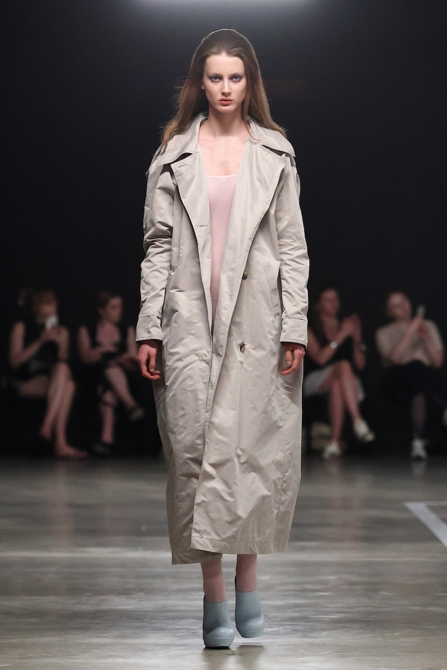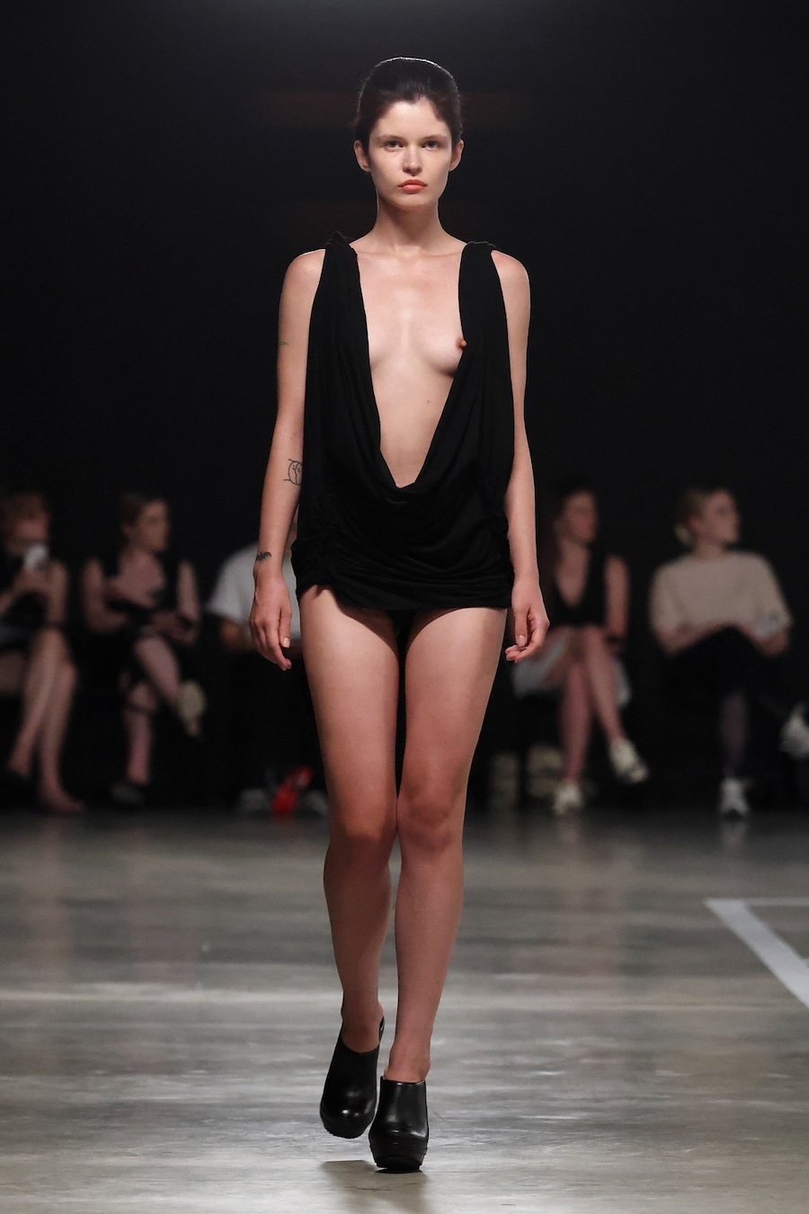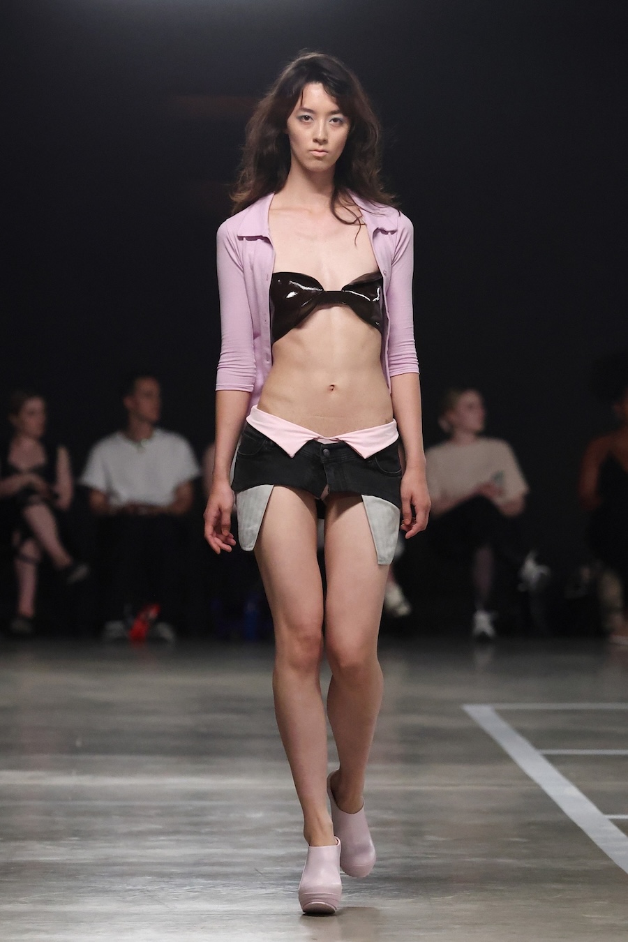The collection was showcased in a striking warehouse setting, complete with a sleek stretch limo adding a dash of glamour. The designs evoke the bittersweet essence of summer nights—those moments that feel both endless and fleeting. Drawing from her childhood and the reflections of Norwegian author Karl Ove Knausgård, the designer presents garments crafted from ethereal, sometimes daringly sheer fabrics, featuring silhouettes that are deliberately tight and intriguingly structured.