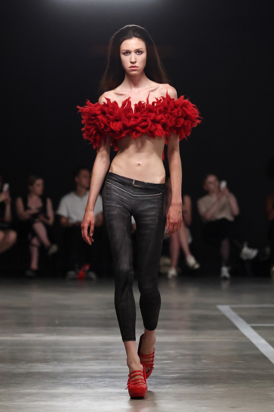 What emerges is a wardrobe that teeters on the edge of nostalgia, prioritising emotion over practicality. Sia Arnika, a Danish label now calling Berlin home, explores the intersection of hybrid designs and experimental norms. The collection stands at the crossroads of minimalism and maximalism, showcasing a soulful blend of craftsmanship that marries Nordic roots with Berlin’s vibrant cultural pulse.