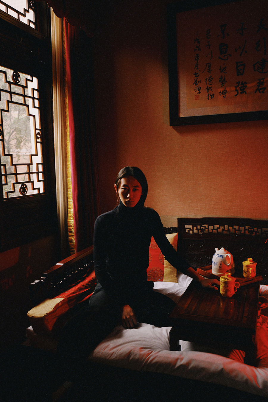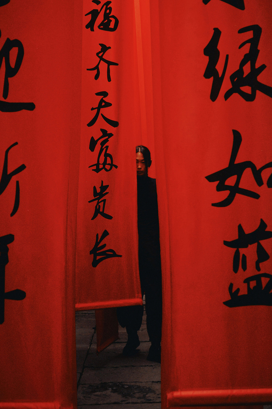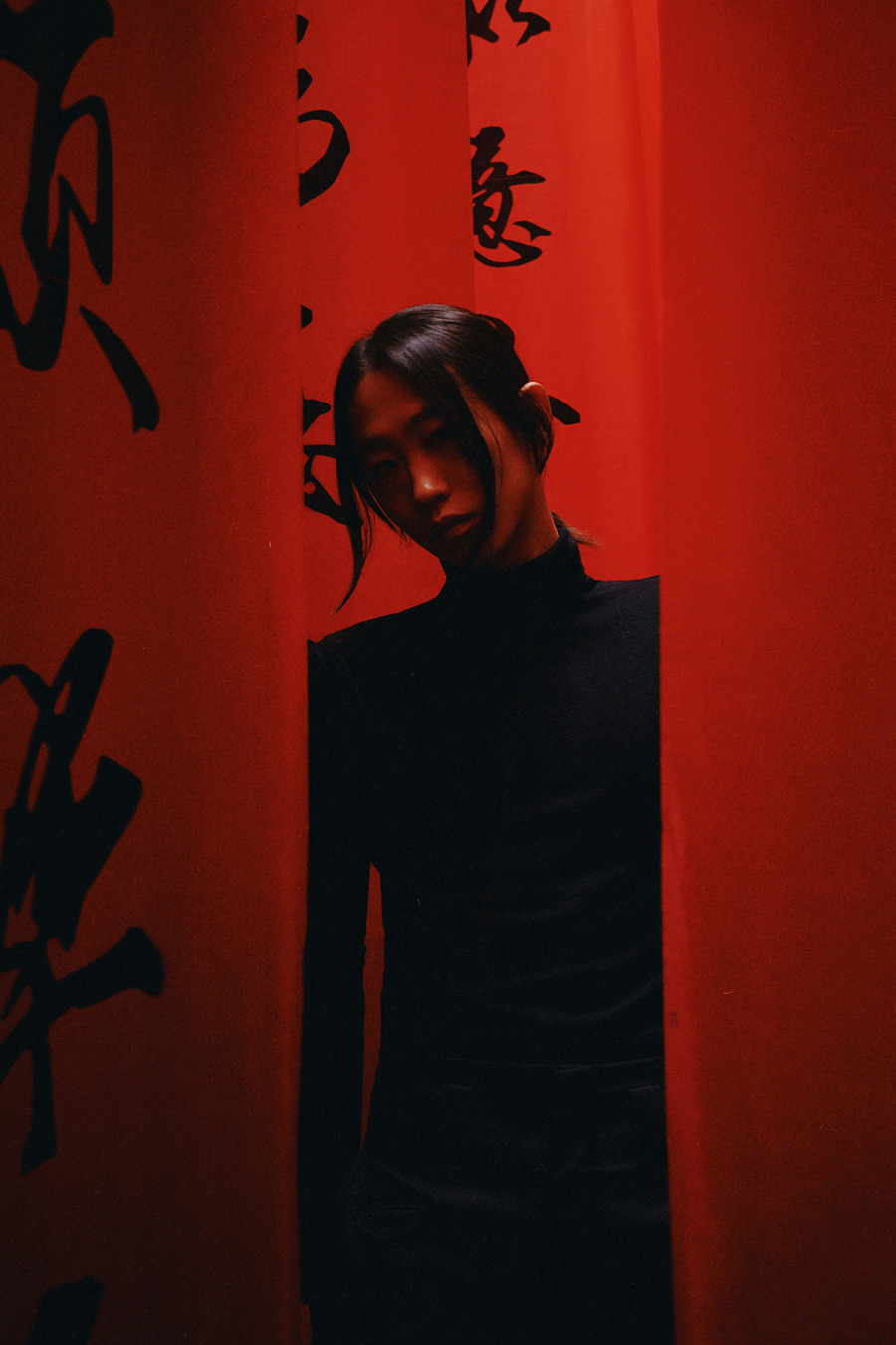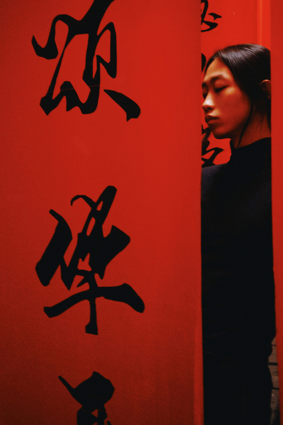 A KALTBLUT exclusive. “Sichuan Tales” by Solene Ballesta in collaboration with Chinese artist and model Lin Zhengqi. Fashion by Skims. These portraits were taken during a getaway to Chengdu for the New Year, as an escape to a world still recovering from the pandemic.