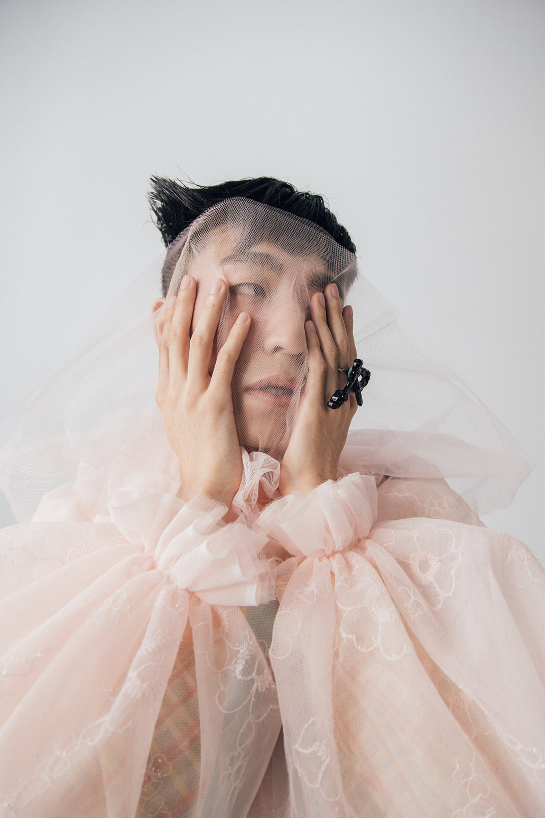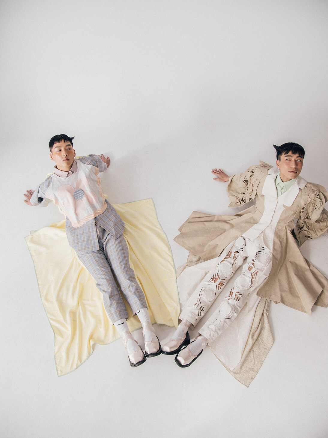 A KALTBLUT exclusive. Photography by 58kg. Art direction by Jian Chi Chen. Models are Er Wang & Evan Luo. Fashion designed by ChingLin. Make-up by Ooi Oh. Hair by Âng Tsín-iông.