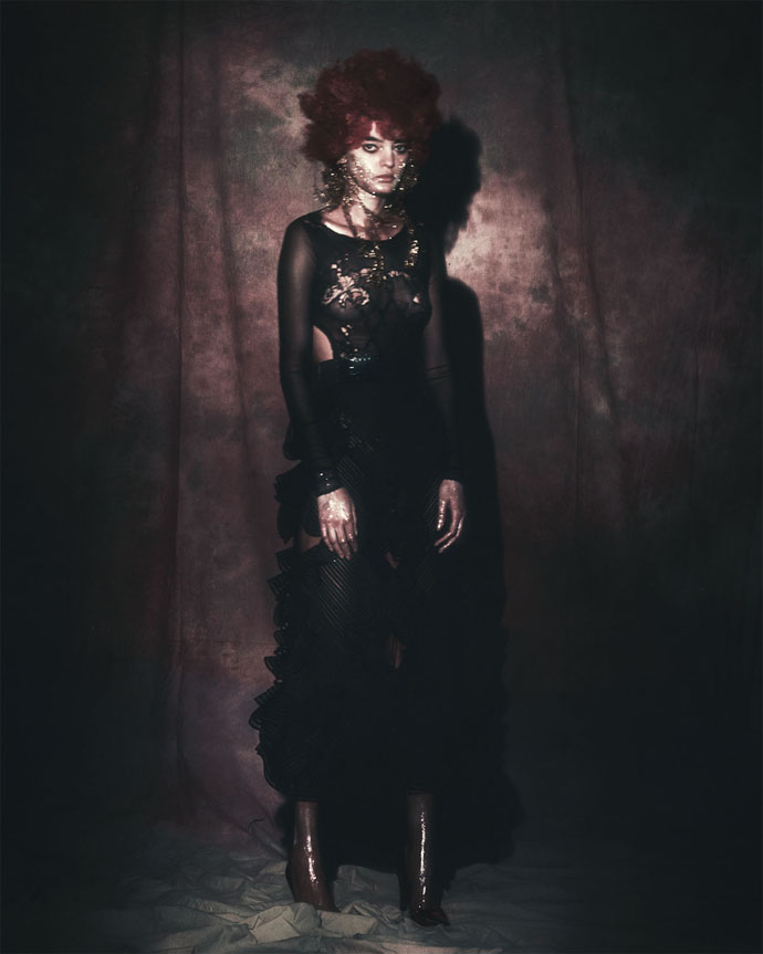 A KALTBLUT exclusive womenswear editorial. Photography by Yuji Watanabe. Models are Masha Burlan @MP, Nastya Leshcinskaia @Silent and Wanessa Milhomem @MP. Styling by Fanelie Patras. Hair by Massanori Yahiro. Make up by Mickael Noiselet @ Calliste Agency. Fashion by LUDOVIC WINTERSTAN COUTURE, PALOMA CASILE, ON AURA TOUT VU, LUTZ x ROBERT CLERGERIE amongst others.