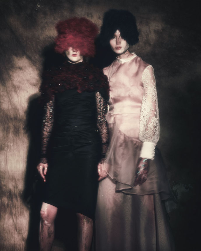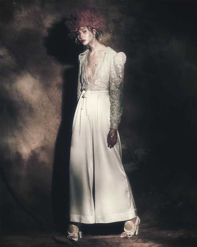 A KALTBLUT exclusive womenswear editorial. Photography by Yuji Watanabe. Models are Masha Burlan @MP, Nastya Leshcinskaia @Silent and Wanessa Milhomem @MP. Styling by Fanelie Patras. Hair by Massanori Yahiro. Make up by Mickael Noiselet @ Calliste Agency. Fashion by LUDOVIC WINTERSTAN COUTURE, PALOMA CASILE, ON AURA TOUT VU, LUTZ x ROBERT CLERGERIE amongst others.