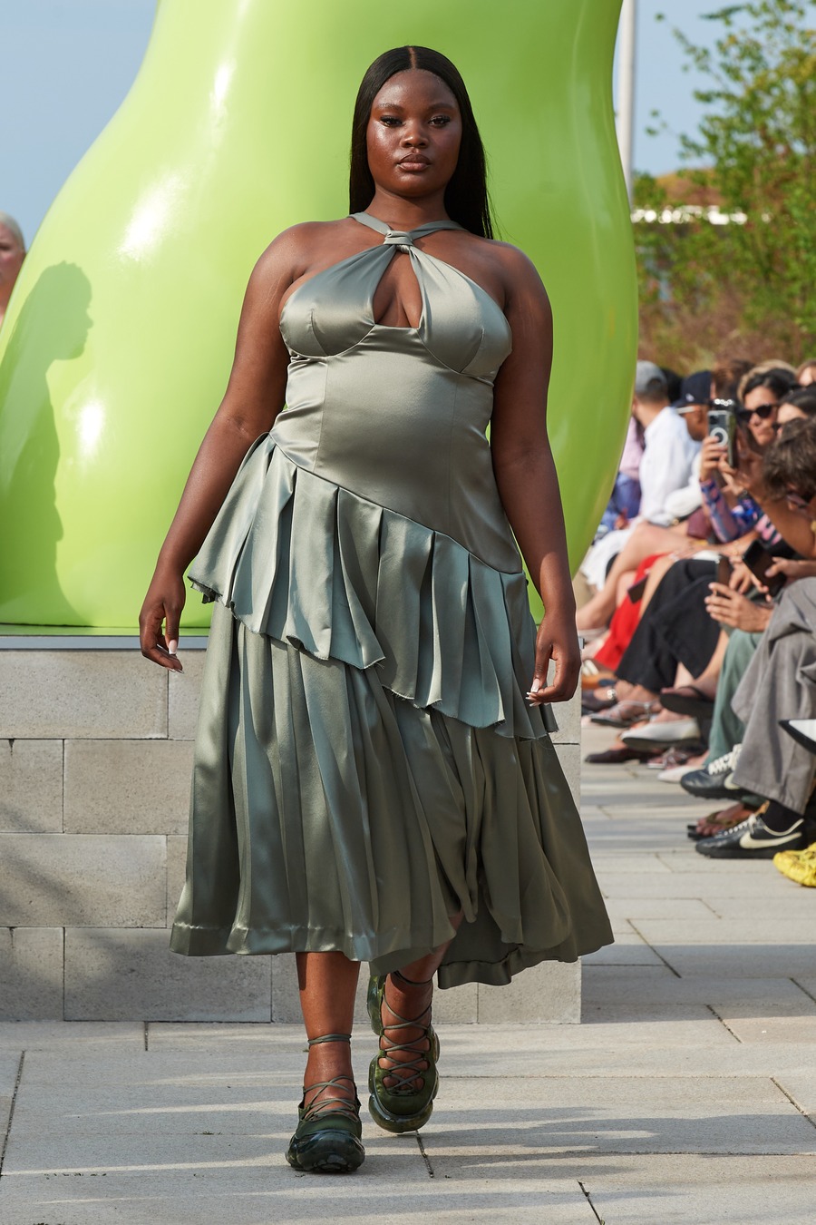 We are captivated by the way Sinéad continues to expand her inclusive universe alongside models and cherished collaborators like Alva Claire and the soulful musician Mahalia. Marking a triumphant return, the brand partners once again with the Hair and Care Foundation to offer a visionary runway experience for blind and low-vision guests. This immersive experience includes evocative audio descriptions and tactile fabric swatches, amplifying the sensuous allure of the collection. Breaking new ground, the show features the trailblazing blind model and broadcaster Lucy Edwards, who graces the runway with her guide dog, making a historic first for CPH Fashion Week. This initiative is in proud alliance with the Danish Association of the Blind, extending an invitation to blind and low-vision guests to fully engage with the show.